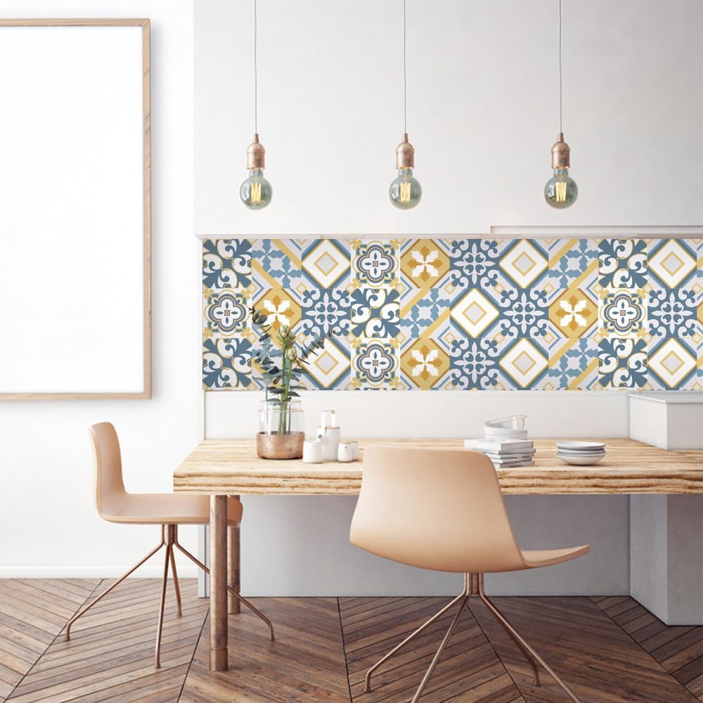Materiali: Piastrelle adesive di alta qualità realizzate in PVC, senza metalli pesanti e formaldeide, resistenti e durevoli, l'inchiostro speciale riduce lo sbiadimento del colore, facili da pulire e manutenere. Grazie al materiale impermeabile, possono essere conservate in ambienti chiusi quasi all'infinito. Versatile: con delle semplici forbici, puoi ritagliare ogni adesivo for adattarlo alle prese e agli angoli più piccoli. Non hai bisogno di aiuto professionale o di attrezzi speciali e costosi. Facile da usare: basta staccare e attaccare, for ottenere una decorazione for la casa dall'effetto retrò in pochi minuti. Facile da installare e rimuovere senza lasciare traccia. Stampa realistica e di lunga durata. Risparmia tempo: adesivi murali ideali, senza spendere centinaia di sterline in costose piastrelle in ceramica. Rinnova una stanza in meno tempo e fatica. Trasforma la tua noiosa parete dipinta in un'opera d'arte grazie a questi adesivi in vinile for piastrelle e ottieni quello straordinario aspetto tradizionale nel tuo bagno o nella tua cucina. Niente confusione e costosi costi di costruzione. Adatto per superfici lisce e piane.