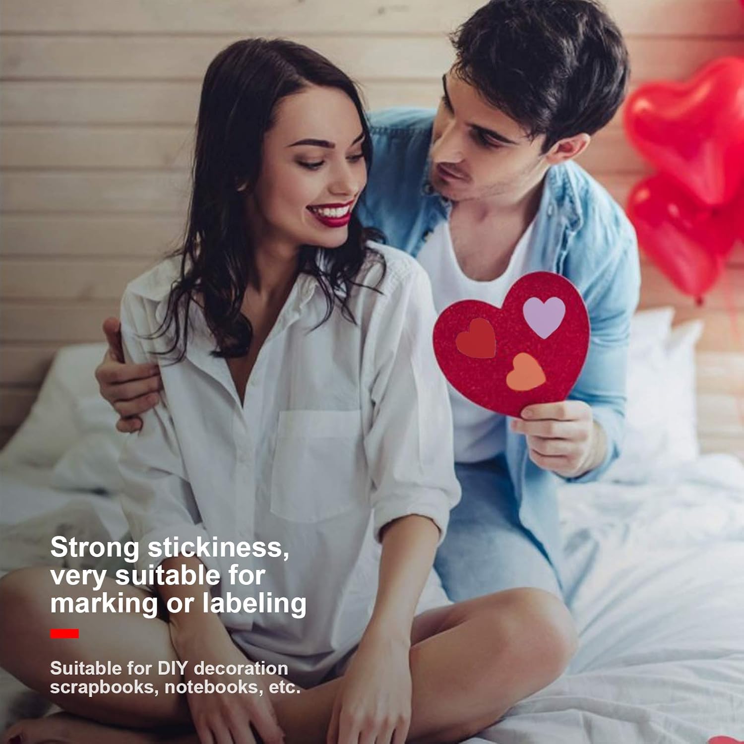 Con design del motivo a forma di cuore, adatto per sigillatura, imballaggi e carte. Può essere permanentemente attaccato alla superficie di scatole, carta, bottiglie, materie plastiche e legno. Molto adatto per la marcatura o l'etichettatura, come note scolastiche, classificazione della cucina, ecc. Realizzato in materiale di alta qualità, che è durevole e ha una lunga durata. È facile da strappare e attaccare saldamente, adatto a album di decorazione fai -da -te, quaderni, ecc.