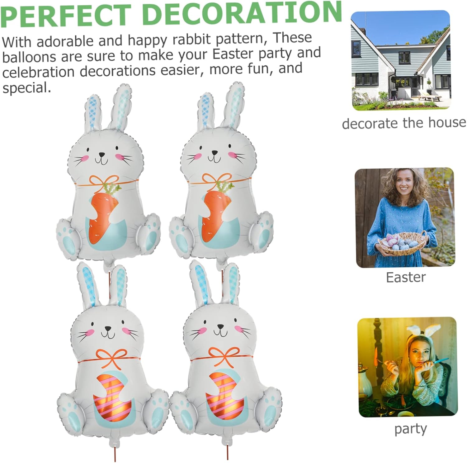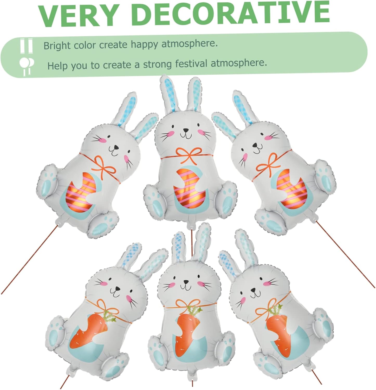 Palloncini per feste di pasqua: sono un'ottima aggiunta alla tua festa di pasqua, tutti gli ospiti rimarranno colpiti dalla tua attenta disposizione, palloncini a forma di coniglio Decorazione pasquale: ottimo sfondo fotografico o oggetti di scena per scattare foto e con la famiglia e gli amici, palloncini decorativi per scene pasquali Palloncini per pasqua: la decorazione a palloncino a forma di coniglio è realizzata con materiali di prima qualità e sicuri, sicuri e pratici, puoi usarli con sicurezza, palloncino a forma di coniglio Decorazioni pasquali: con questo palloncino, la tua festa sarà più , ti aiuterà a creare una forte atmosfera di festa, palloncini decorativi Palloncini pasquali: l'ornamento è realizzato in materiale pregiato con un aspetto incantevole, pieno di una fantastica atmosfera di festa pasquale, palloncino per la celebrazione della festa
