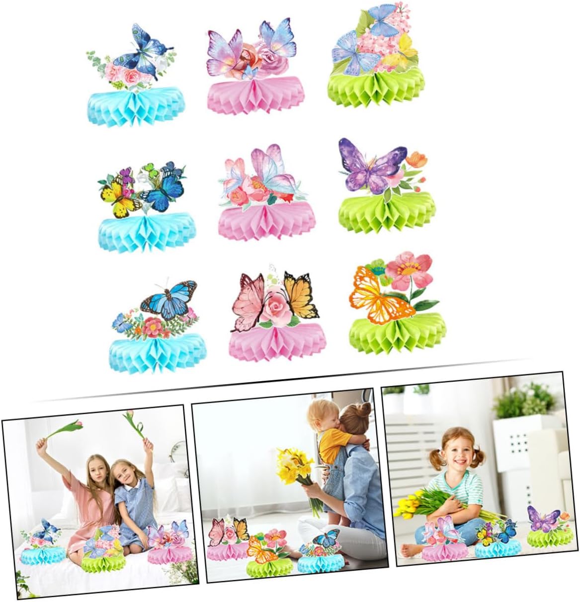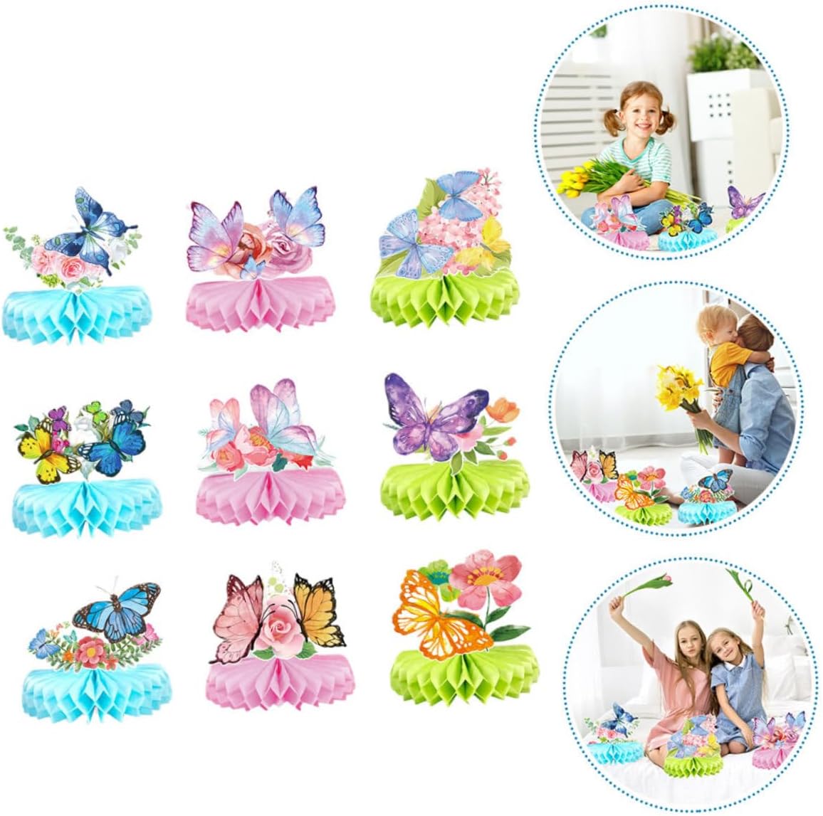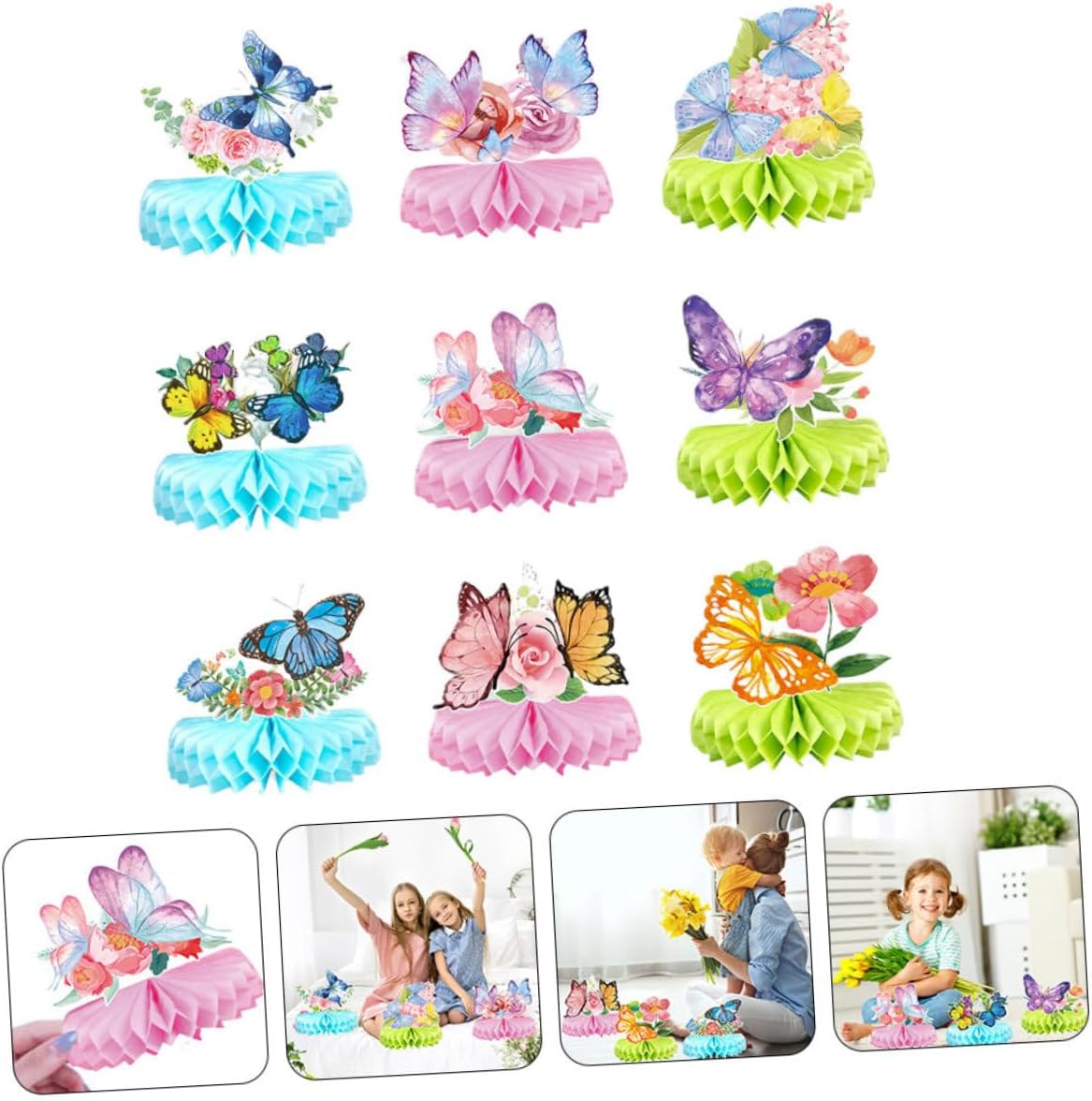 Farfalle a nido d'ape: la pregevole fattura garantisce la stampa di motivi chiari e un design delicato dettagli, pratico da usare. Decorazione per feste con farfalle: l'ornamento a nido d'ape è realizzato in materiale pregiato con un aspetto incantevole, pieno di una fantastica atmosfera per la festa di compleanno. Decorazione da scrivania con farfalle a nido d'ape: la decorazione con farfalle a nido d'ape sarà eccellente per la tua festa, ideale sia per eventi interni che esterni. Farfalle a nido d'ape da scrivania: puoi anche inserirle come sfondo fotografico fantastico per una festa, che sarà decorativo. Decorazione con farfalle: la nostra decorazione da tavolo a nido d'ape con farfalle serve già a rendere la tua festa di compleanno più e unica.