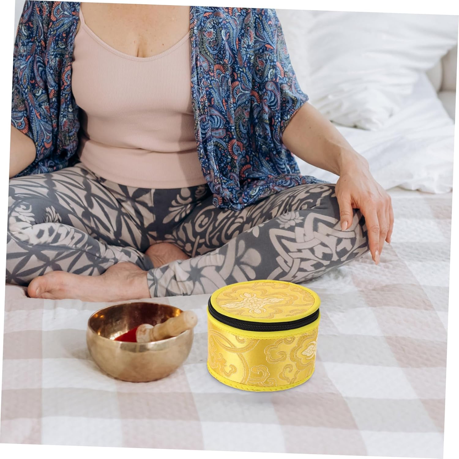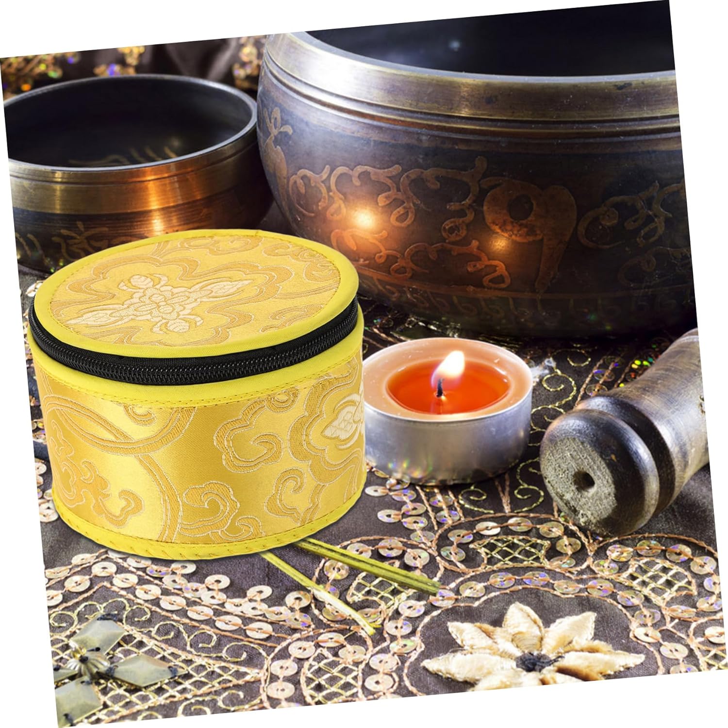 Artisanmade: ogni piccola custodia per ciotola di canto è realizzata a mano da abili artigiani in Nepal, garantendo e un tocco unico Design funzionale: questa borsa da stoccaggio è adatta per conservare la ciotola del suono Buddha e altri piccoli oggetti, fornendo funzionalità eccellenti Elegante busta da trasporto: la custodia per ciotola cantante è dotata di una custodia da trasporto chic, che rende facile da trasportare e conservare e ideale per la presentazione Disegni intricati: la custodia per ciotola cantante creativa presenta design intricati, rendendolo un bellissimo oggetto decorativo Patrimonio culturale: il design della cassa di stoccaggio della ciotola di meditazione riflette la tradizionale artigianato del Nepal