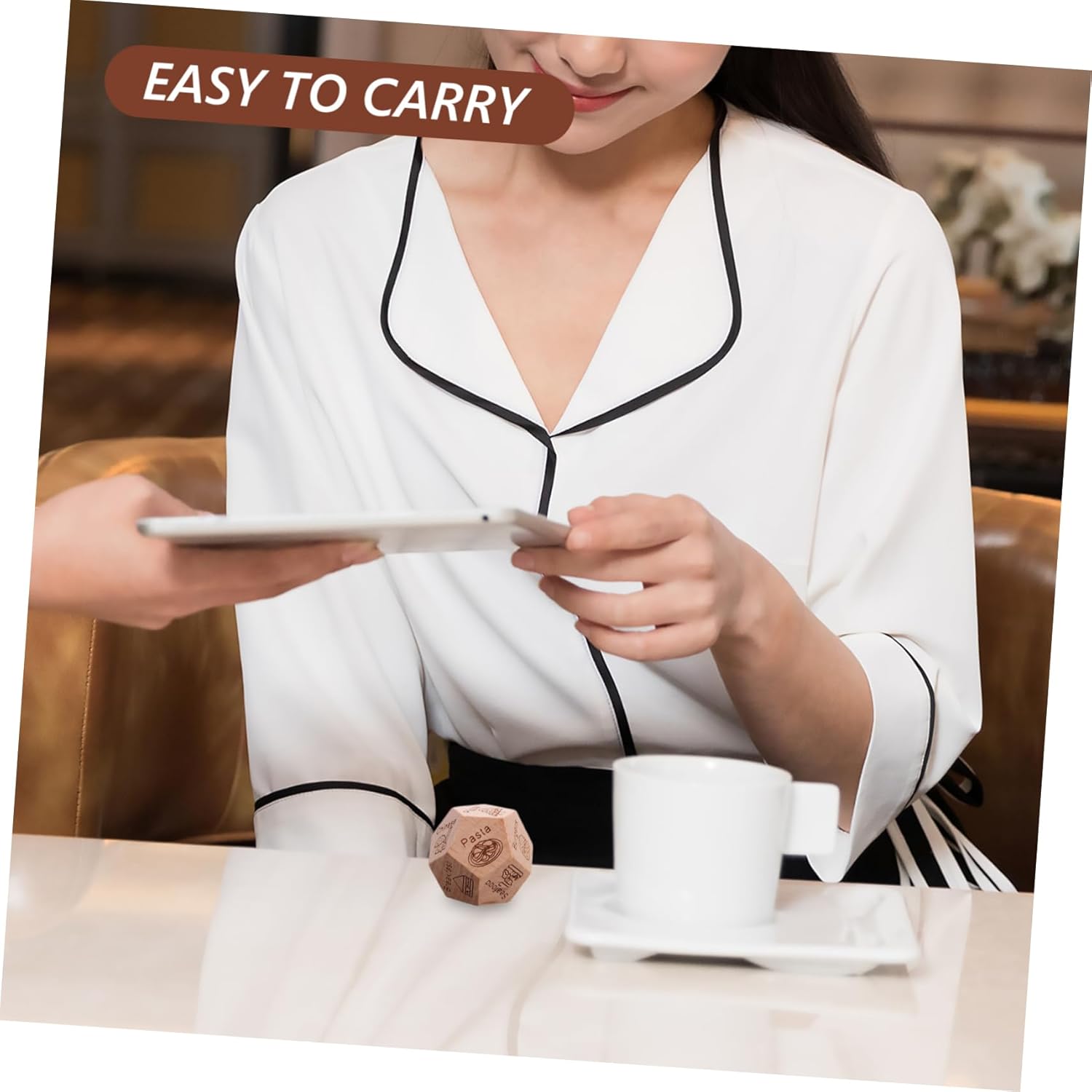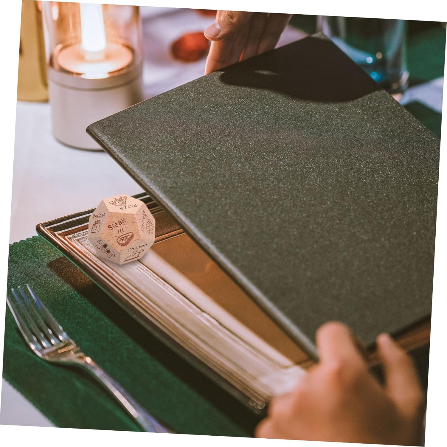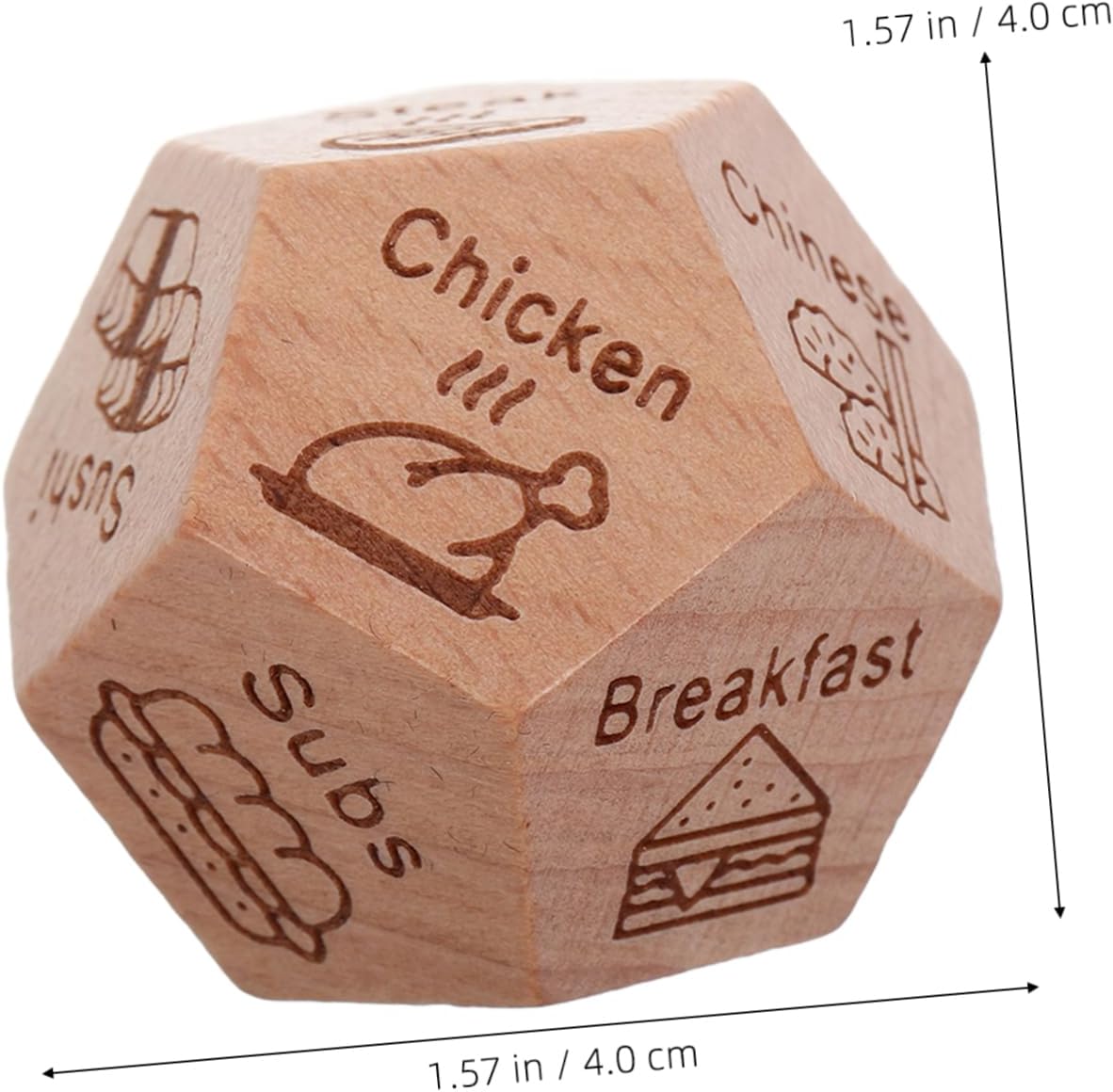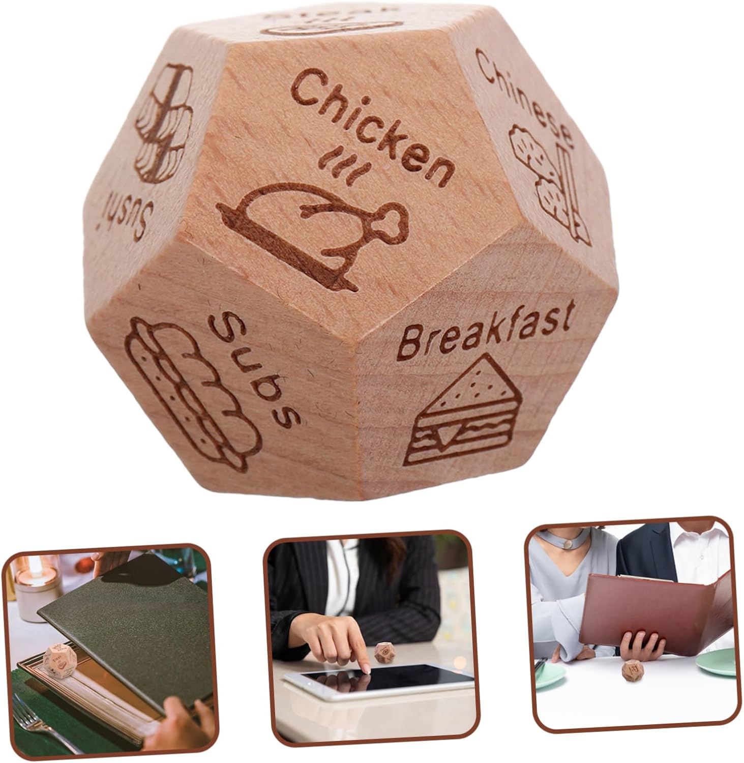 Cibo: aiuta le persone a mangiare facilmente, evita indecisioni e discussioni, mangiare, appuntamenti Per feste: adatto a varie occasioni come appuntamenti, compleanni e anniversari per aumentare il divertimento, cubo decisionale per il cibo per feste, cubo decisionale per il cibo Souvenir creativo: il design unico porta divertimento e sorpresa alla festa, cubo decisionale in legno per il cibo e cubo decisionale per preparare la cena: aiuta con la selezione rapida del cibo o del ristorante, previene le discussioni, lancia i dadi quando si sceglie il cibo e decide il pasto Concetto unico: porta un nuovo livello di divertimento e sorpresa, dadi decisionali in legno, dadi di cibo per feste