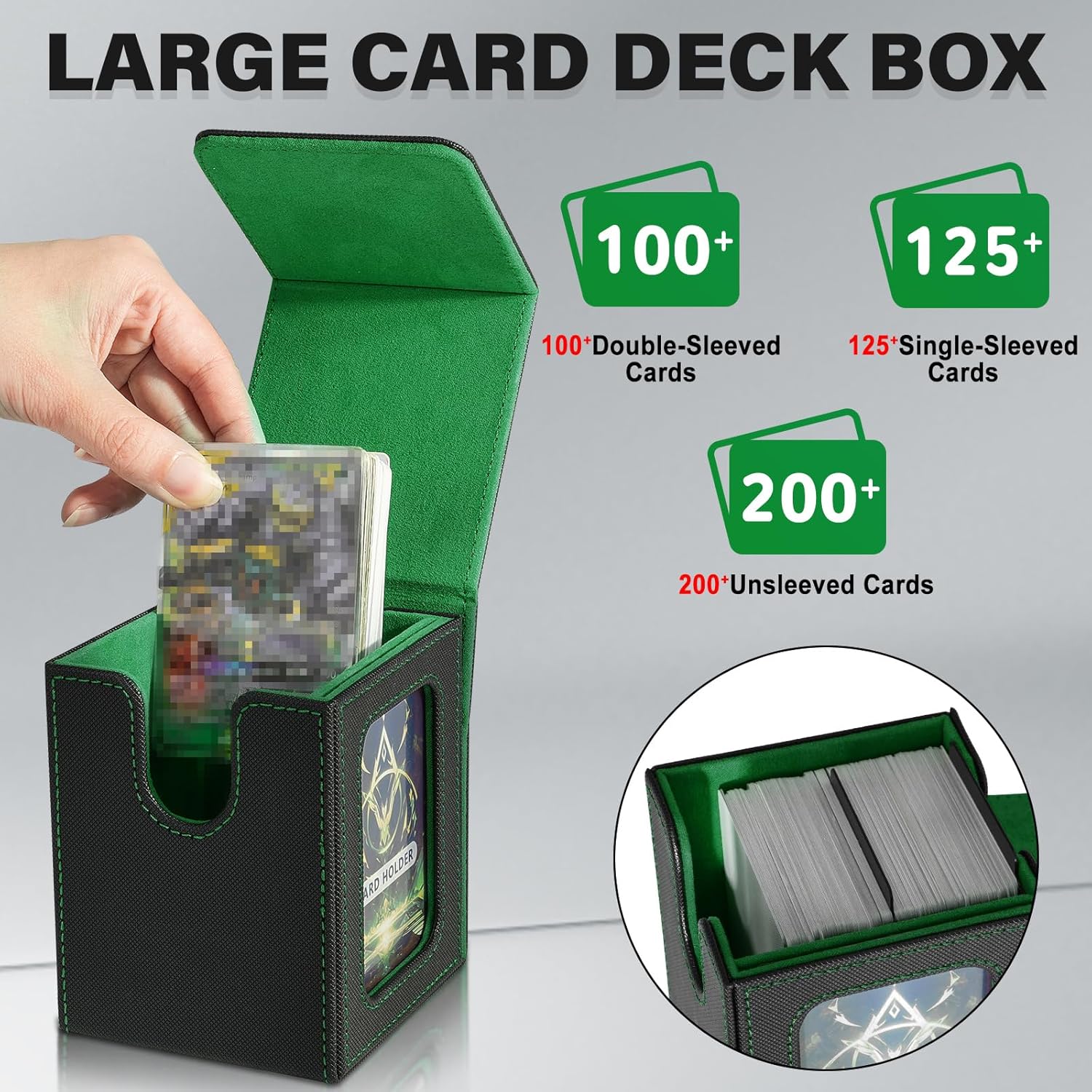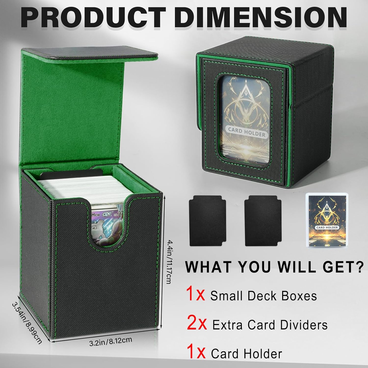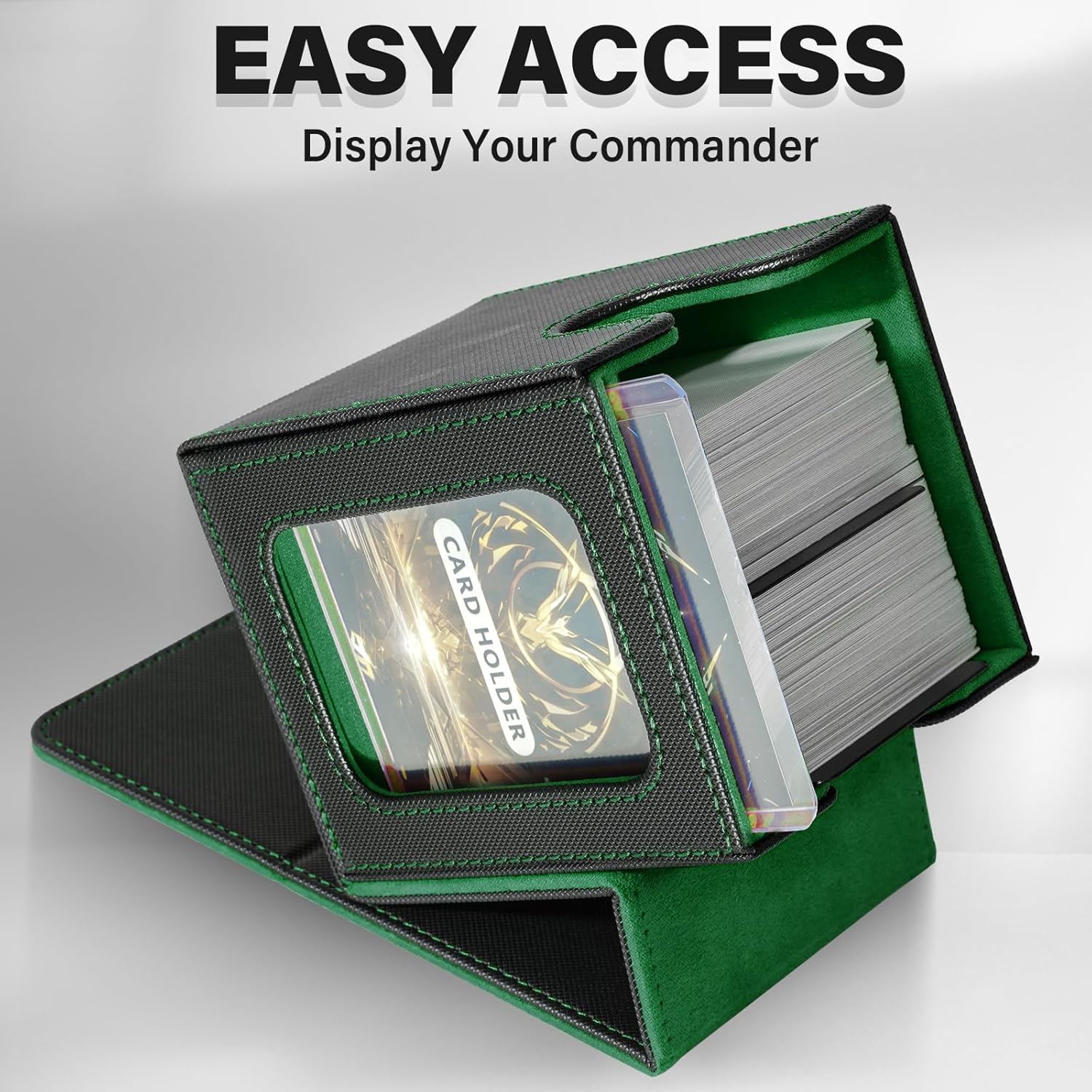 Design speciale:le custodie per carte collezionabili offrono una protezione e un'organizzazione senza pari per il tuo mazzo Magic The Gathering;con il design della finestra specifico per i giocatori di Commander EDH,questa scatola per mazzi premium è un must per qualsiasi appassionato di MTG o TCG Grande capacità:dimensioni:3,2 x 3,54 x 4,4 pollici(8.1*9*11.2 cm),questa scatola per mazzi di carte può contenere fino a 100 carte a doppia bustina o oltre 120 carte a bustina singola o 200+ carte senza bustina,offre ampio spazio per il tuo mazzo di carte Facile da accedere:progettato pensando alla praticità,la scatola per riporre il mazzo di carte ha un'ampia apertura a forma di U e un design con coperchio a ribalta che consente di recuperare facilmente le tue carte,rendendo il gioco fluido e senza problemi Protezione completa:la scatola per mazzi Commander è realizzata in una resistente custodia in pelle PU ed è rinforzata con potenti magneti per una chiusura sicura;puoi essere certo che le tue carte sono ben protette da danni esterni;con il suo design leggero e compatto,che tu sia un MTG o qualsiasi altro gioco di carte appassionato,questa scatola per mazzi è un compagno affidabile per conservare e proteggere le tue amate carte Il pacchetto include:ogni scatola per carte collezionabili è dotata di due divisori per carte e un porta carte senza costi aggiuntivi