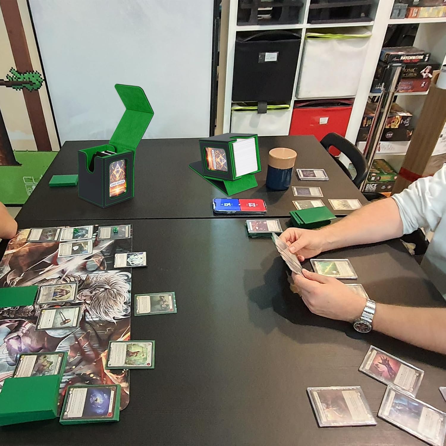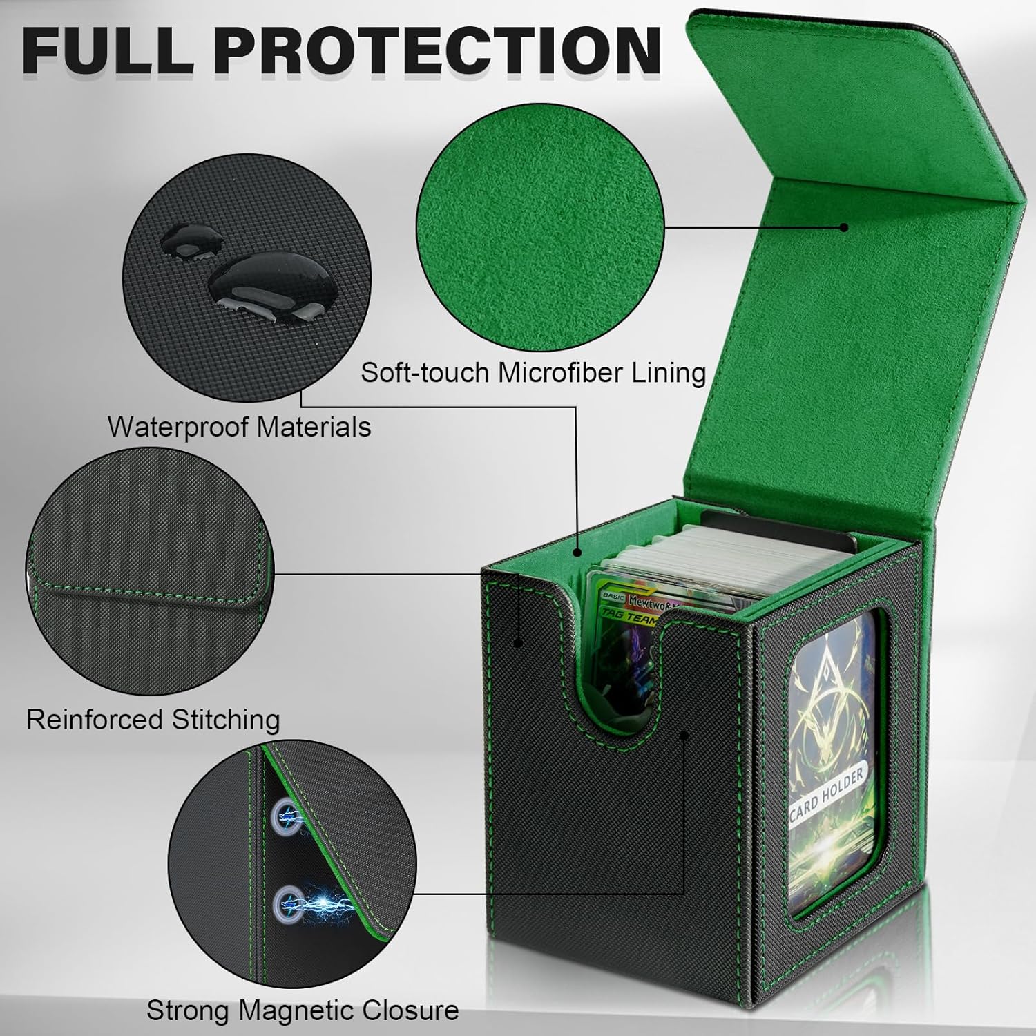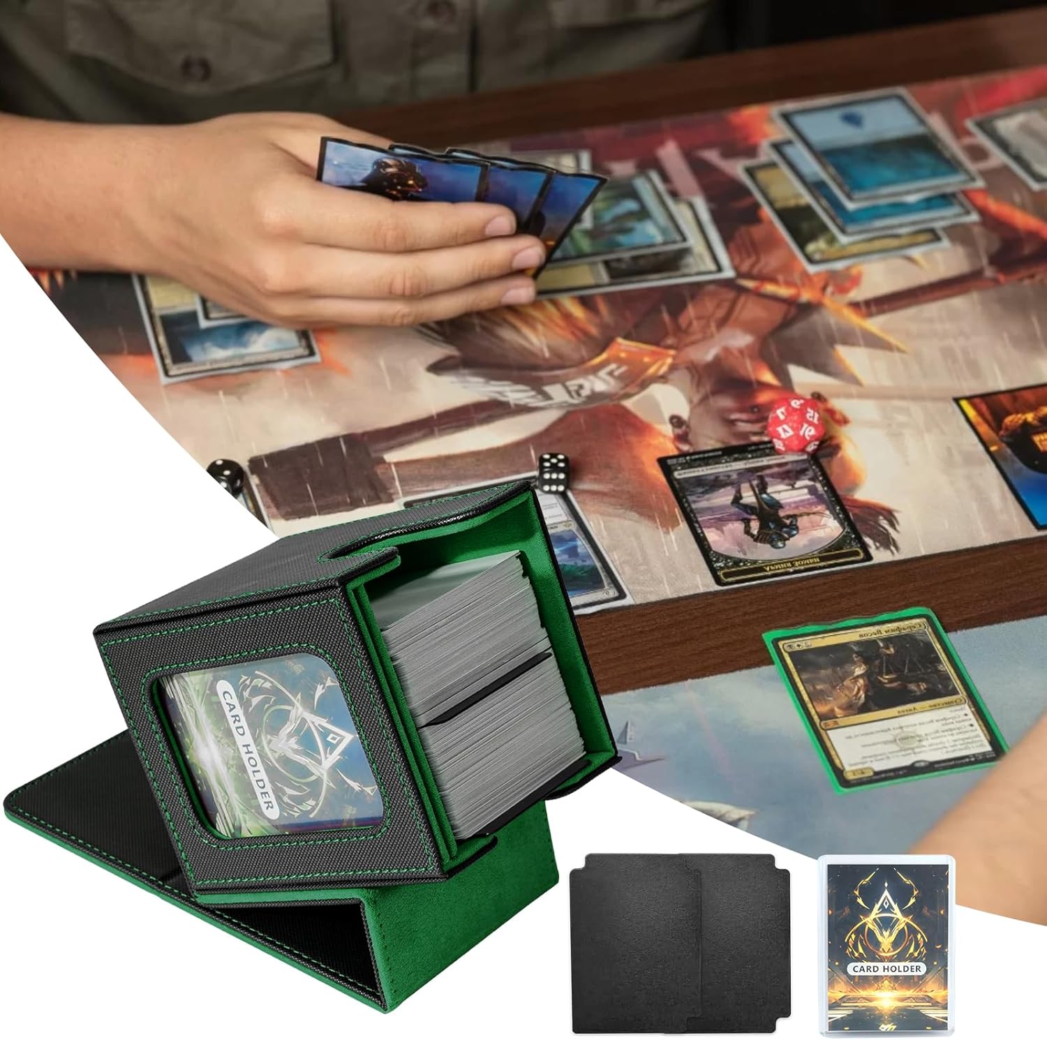 Design speciale:le custodie per carte collezionabili offrono una protezione e un'organizzazione senza pari per il tuo mazzo Magic The Gathering;con il design della finestra specifico per i giocatori di Commander EDH,questa scatola per mazzi premium è un must per qualsiasi appassionato di MTG o TCG Grande capacità:dimensioni:3,2 x 3,54 x 4,4 pollici(8.1*9*11.2 cm),questa scatola per mazzi di carte può contenere fino a 100 carte a doppia bustina o oltre 120 carte a bustina singola o 200+ carte senza bustina,offre ampio spazio per il tuo mazzo di carte Facile da accedere:progettato pensando alla praticità,la scatola per riporre il mazzo di carte ha un'ampia apertura a forma di U e un design con coperchio a ribalta che consente di recuperare facilmente le tue carte,rendendo il gioco fluido e senza problemi Protezione completa:la scatola per mazzi Commander è realizzata in una resistente custodia in pelle PU ed è rinforzata con potenti magneti per una chiusura sicura;puoi essere certo che le tue carte sono ben protette da danni esterni;con il suo design leggero e compatto,che tu sia un MTG o qualsiasi altro gioco di carte appassionato,questa scatola per mazzi è un compagno affidabile per conservare e proteggere le tue amate carte Il pacchetto include:ogni scatola per carte collezionabili è dotata di due divisori per carte e un porta carte senza costi aggiuntivi