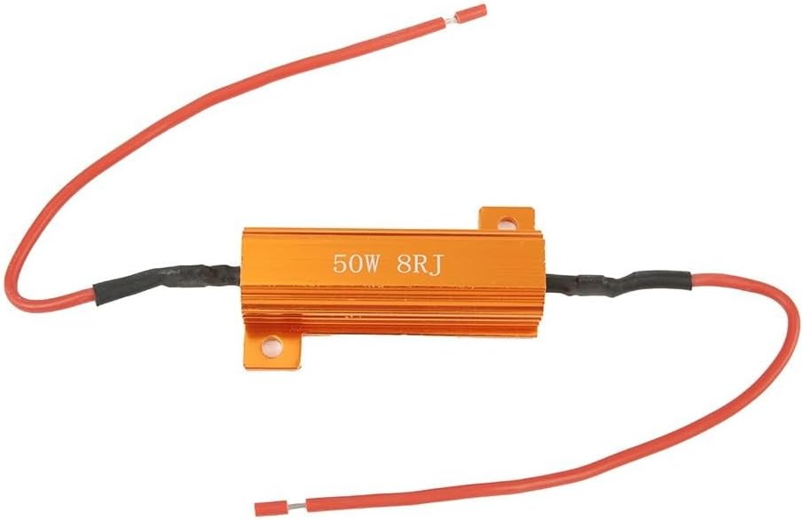 Decoder con resistenza di carico LED da 50 W e 8 Ohm: appositamente progettato per collegare indicatori di direzione iperlampeggianti. Questi resistori di carico forniscono una soluzione perfetta per garantire una risposta rapida al lampeggio dopo l'installazione delle lampadine LED SMD. Risolve il "segnale lampadina spenta"/"messaggio di errore OBC": questi resistori di carico risolvono efficacemente il problema della ricezione di messaggi di errore o segnali che indicano un guasto della lampada dopo aver sostituito le lampadine standard con lampadine LED SMD. Risolve i problemi elettronici causati dalla conversione a LED: oltre a risolvere i problemi di lampeggiamento, questi resistori di carico possono anche risolvere i problemi elettronici che possono verificarsi dopo il passaggio dalle lampadine standard alle lampadine a LED. Installazione semplice con presa a T e cavo: con un cavo da 15 cm all'estremità e raccordi a T inclusi, l'installazione è semplice. Basta collegare i fili con i connettori di giunzione inclusi senza la necessità di tagliare i fili.
