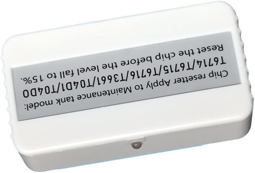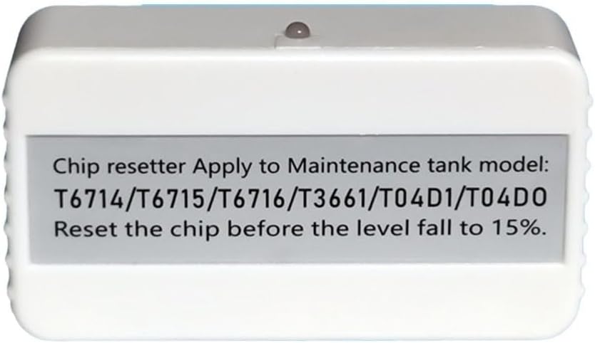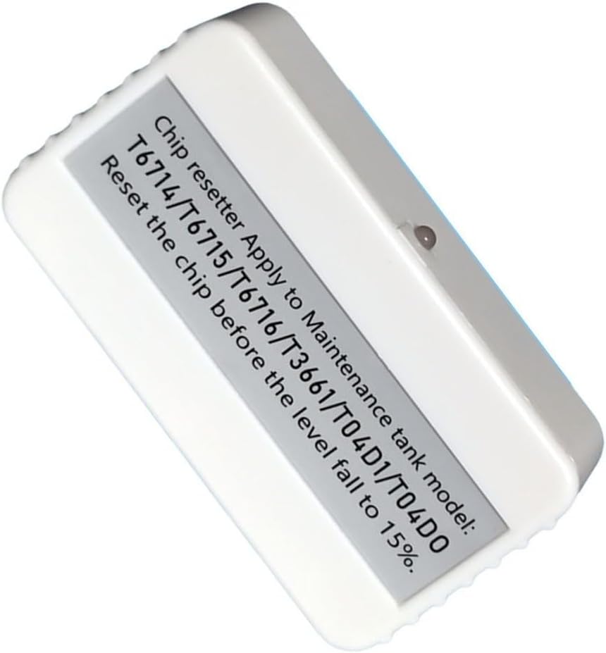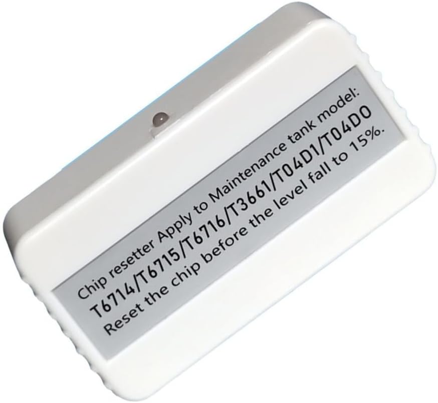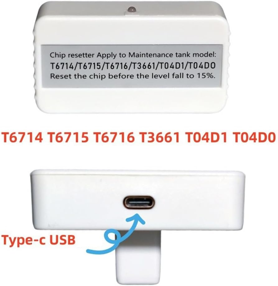 [Compatibilità multi-MODELLO] Questo resetter è compatibile con i modelli T6716, T6715, T3661, T04D1 e T04D0 per soddisfare facilmente varie esigenze di manutenzione. [Nessuna batteria richiesta] L'uso di una porta USB di tipo C consente l'uso diretto senza batterie, rendendolo una scelta pratica per le operazioni relative ai chip. [Processo semplice e veloce] Posiziona semplicemente il chip con la scanalatura; Quando la luce rossa è accesa e diventa verde dopo 5 secondi, sai che il tuo chip è stato aggiornato con successo. [Monitora l'utilizzo dell'inchiostro in modo efficiente] Tieni d'occhio i livelli di inchiostro e gestisci gli sprechi in modo efficace rimuovendo l'inchiostro in eccesso prima dell'installazione e riavviando il dispositivo. [Controlla il tuo modello] Compatibilità controllando le specifiche del modello invece di fare affidamento sulla tabella delle taglie.