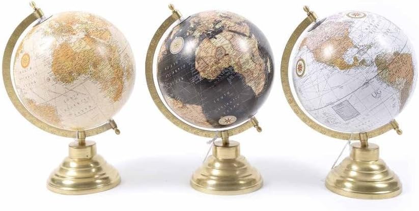 Il mappamondo con base in ottone per decorazione interno, alto 33,5 cm, è un raffinato elemento d'arredo che aggiunge un tocco di eleganza a qualsiasi ambiente. Questo mappamondo presenta una rappresentazione dettagliata del globo terrestre, montata su una base in ottone lucido che conferisce un aspetto sofisticato e lussuoso. Ideale per arricchire uffici, salotti o studi, il suo design armonioso combina estetica e funzionalità. La base in ottone non solo garantisce stabilità, ma aggiunge anche un elemento di pregio che si integra perfettamente con diversi stili di arredamento, trasformando questo mappamondo in un pezzo decorativo distintivo e di grande impatto visivo. Alta qualità