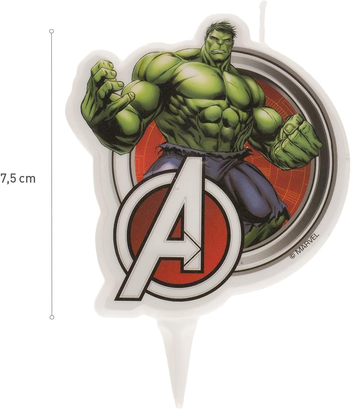 Candeline decorative per torta di compleanno con un design originale dell'eroe dei Vendicatori Hulk per sorprendere i più piccoli di casa Festeggia il tuo compleanno in modo originale con questa candelina di compleanno perfetta per una festa a tema supereroi Un accessorio perfetto per decorare torte di compleanno per bambini, muffin o cupcakes Candelina di compleanno con un design 2D originale e dettagli di qualità La candela ha una punta nella parte inferiore così puoi posizionarla sulla torta senza chiuderla inquinare