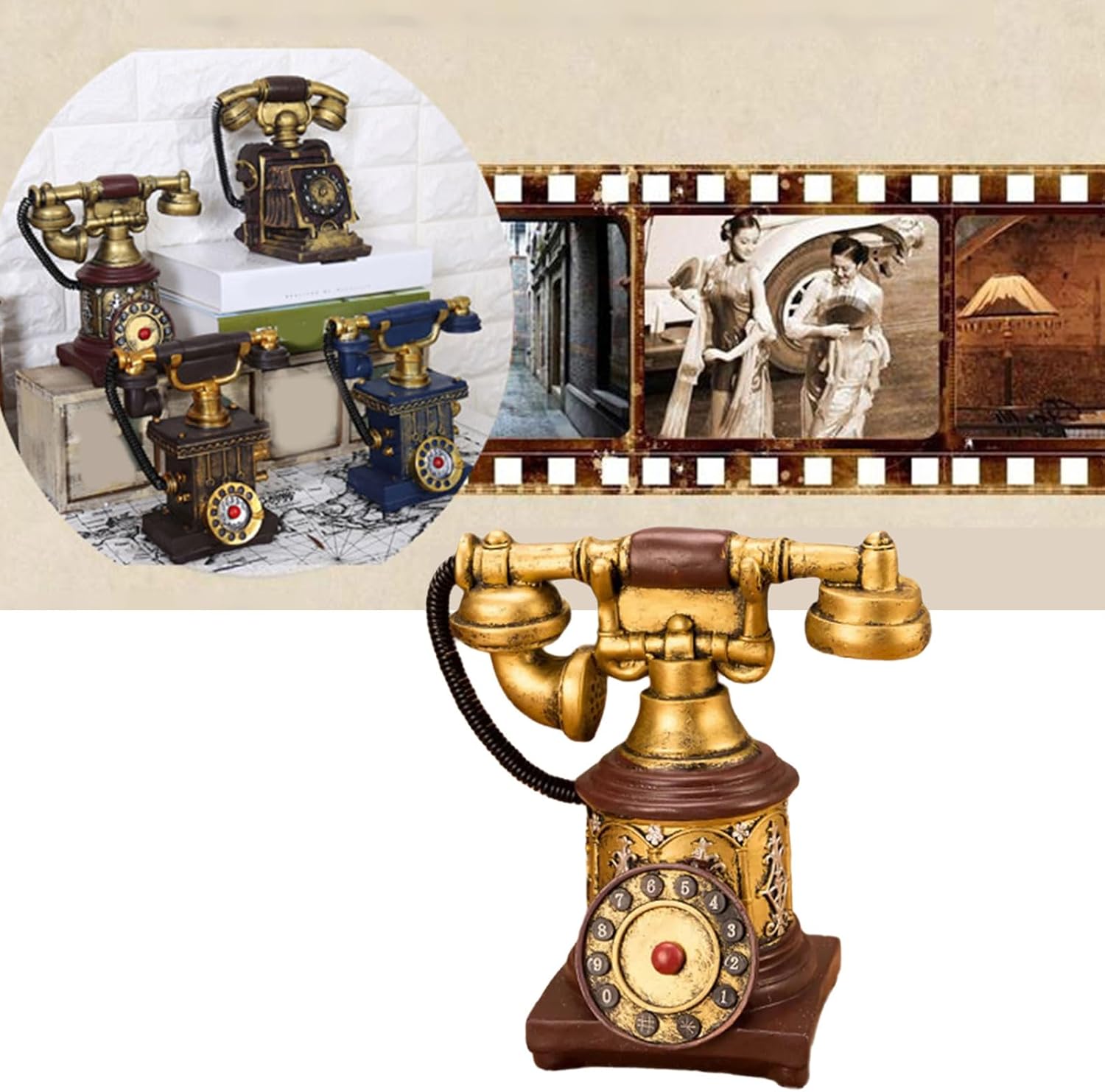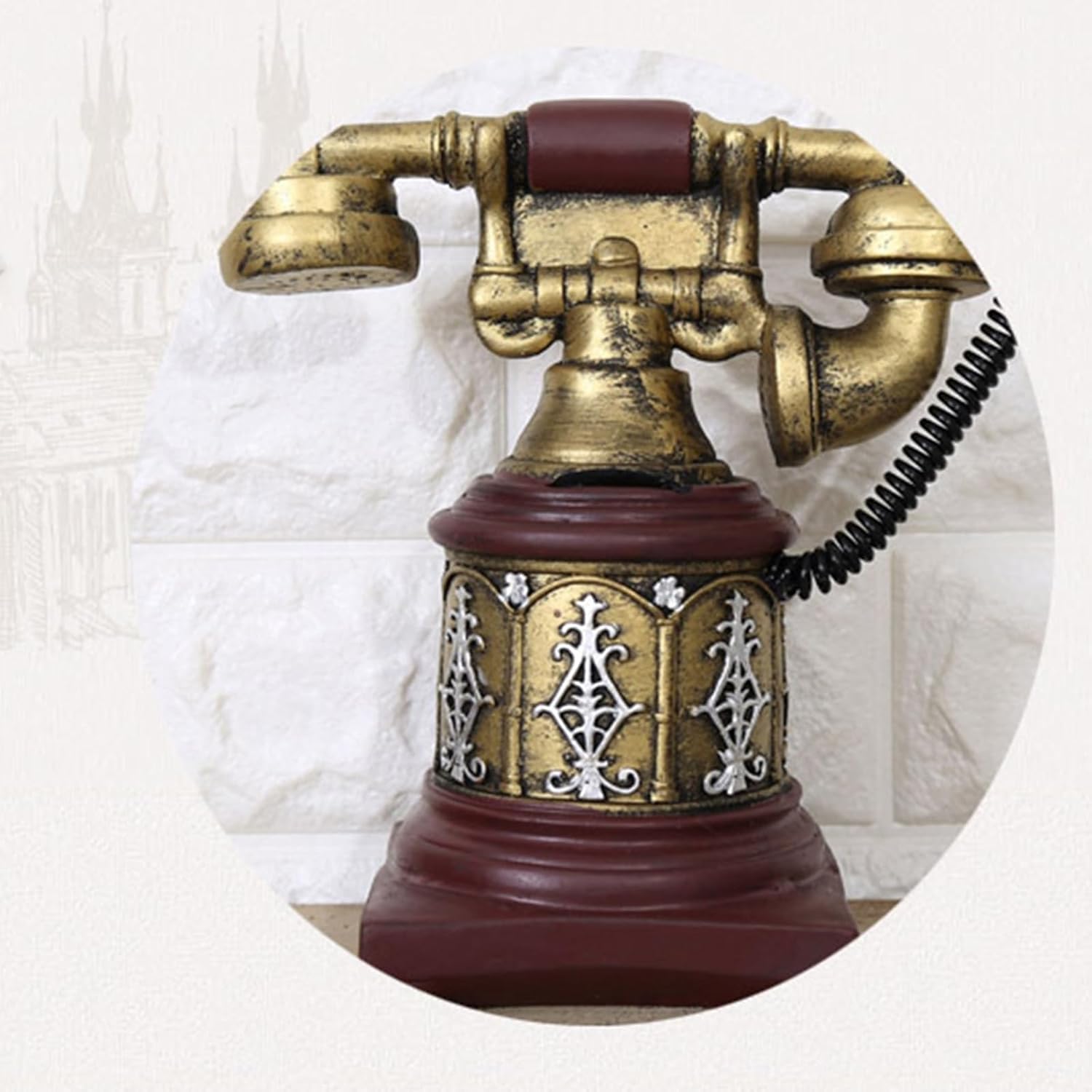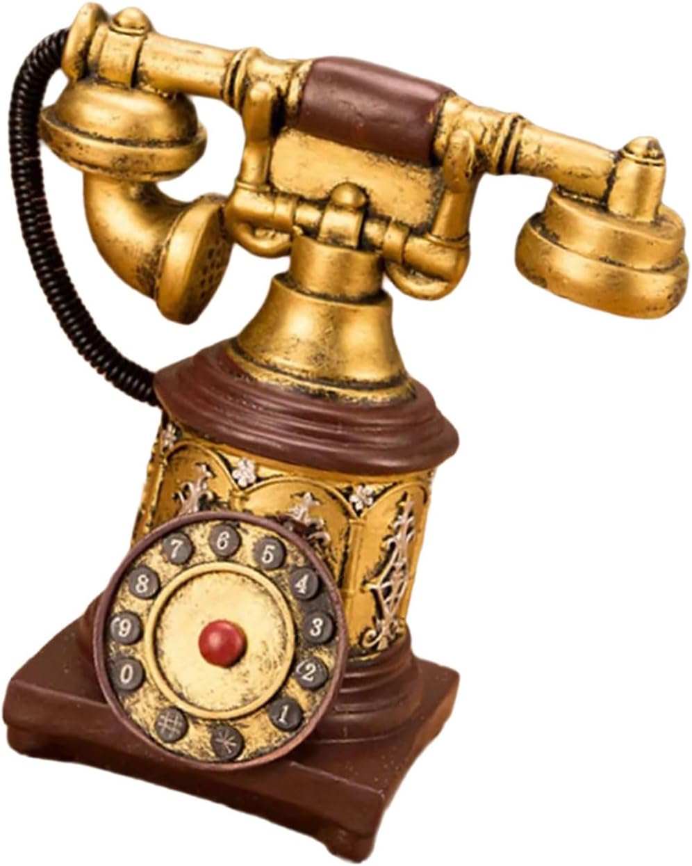 Questo pezzo di conversazione multiuso che combina stili di decorazione per industria e vittoriani attraverso il suo corpo finito e il suo lavoro di scorrimento artistico Inquietante con bronzo stagionato, quadrante inciso a mano e ricevitore rimovibile, questo desktop replica mirroring Authentics 1920 funzioni del telefono in miniatura Per collezionisti vintage, proprietari e periodo di produzione cinematografica per drammi storici o sparatorie commerciali esattamente Ambienti elevati in caffetterie, negozio di antiquariato o armadi soggiorno mentre servono come fondali fotografia per le campagne Decorazione per telefono vintage europea Rotary combinata con la struttura in metallo di resine per gli appassionati di interni ispirati