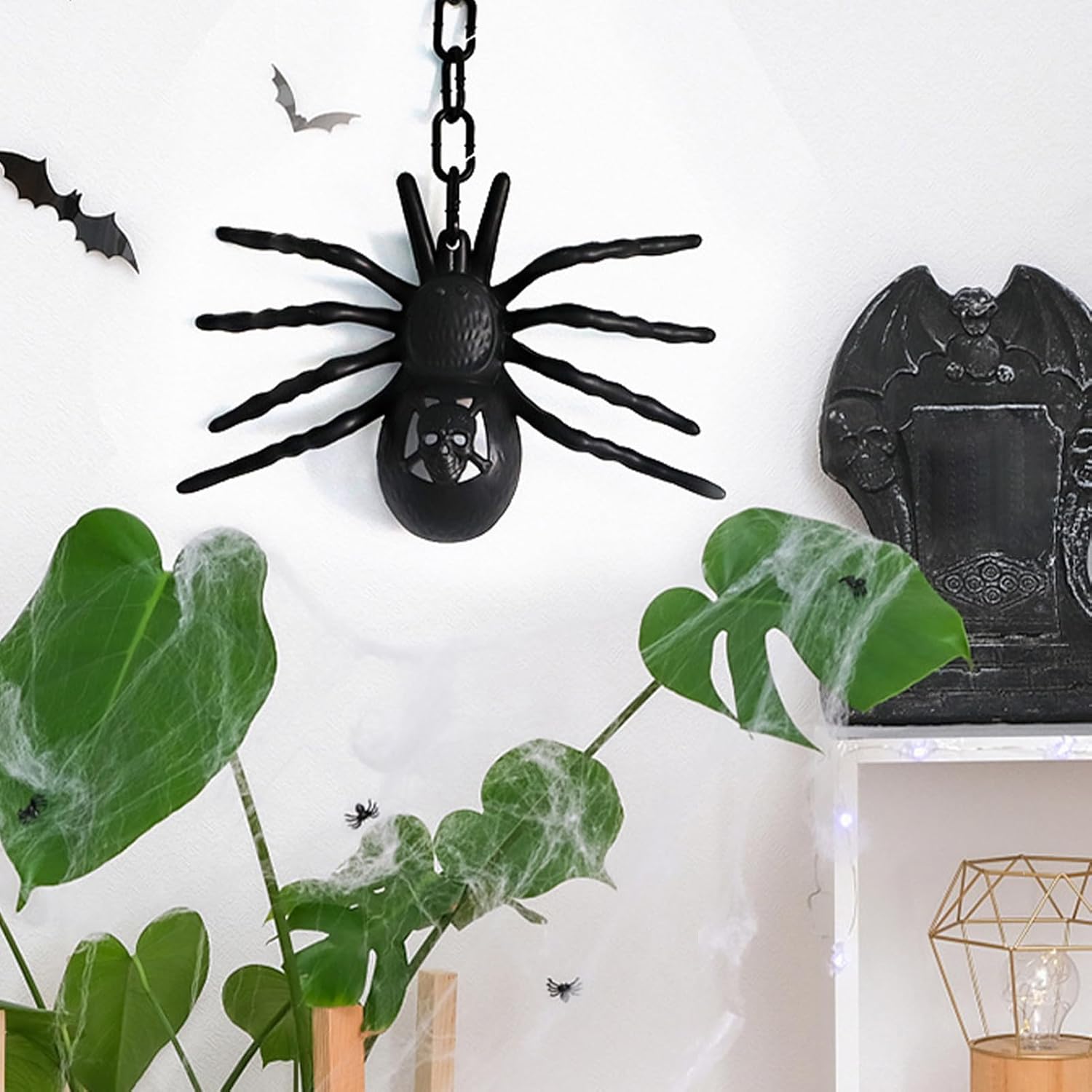 【Design Iperrealistico del Ragno】 I dettagli vividi e il design iperrealistico di questo ragno lo rendono un must per migliorare l'atmosfera festosa, fornendo il fantastico ornamento a tema Halloween per qualsiasi area. 【Decorazione di facile installazione】 Perfetto per uso interno ed esterno, questo ragno di Halloween è dotato di una corda per una facile installazione senza attrezzi, migliorando senza sforzo la tua atmosfera festiva.