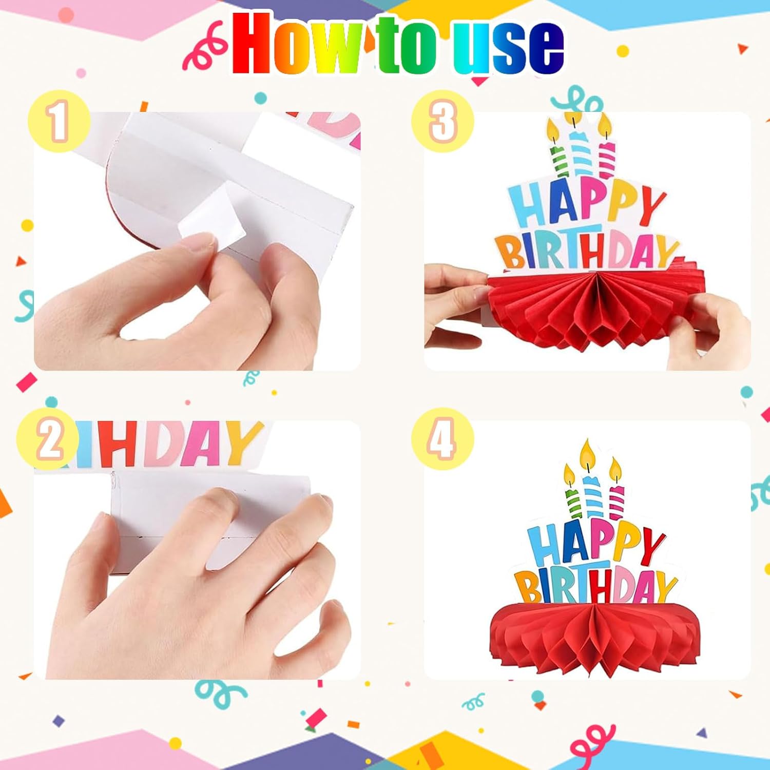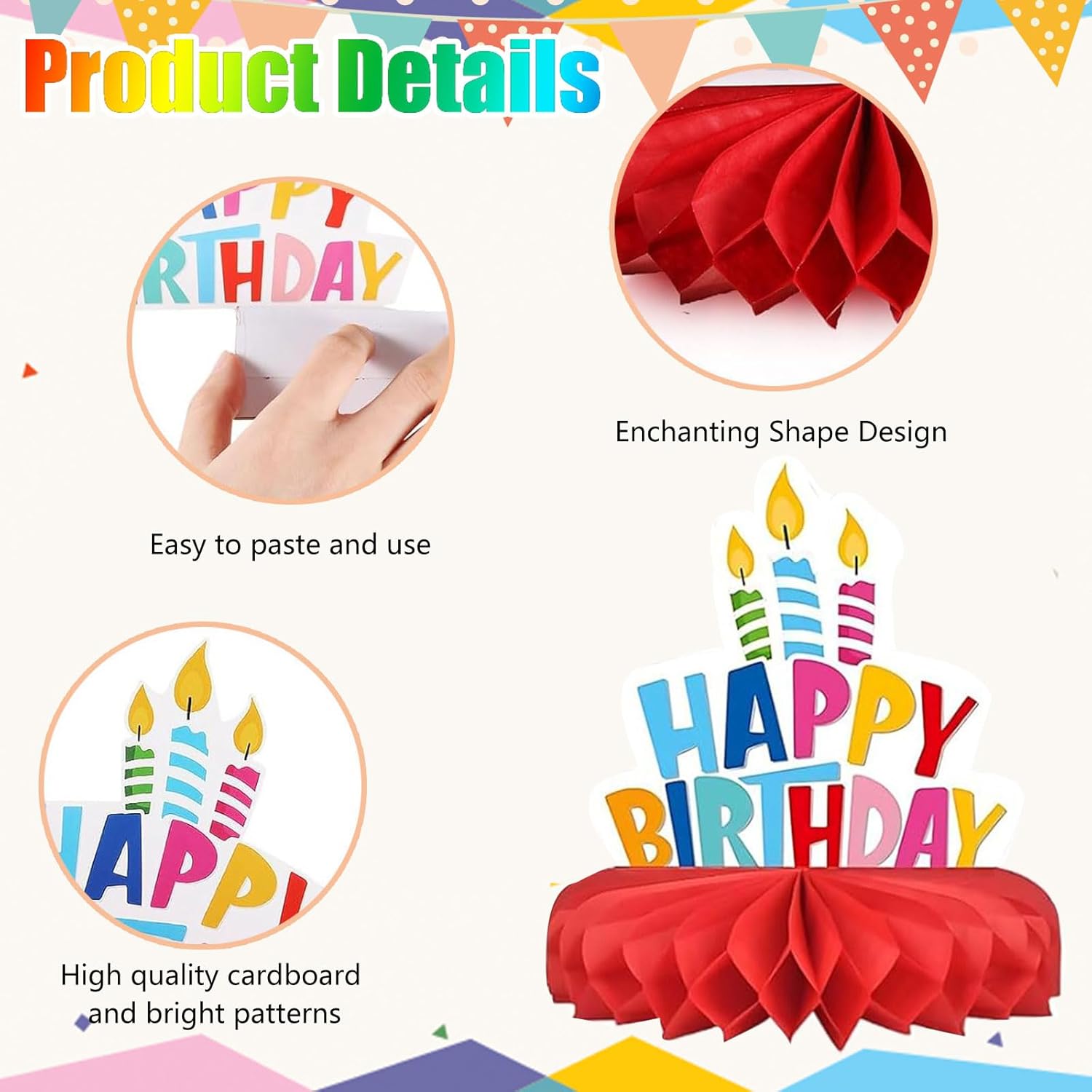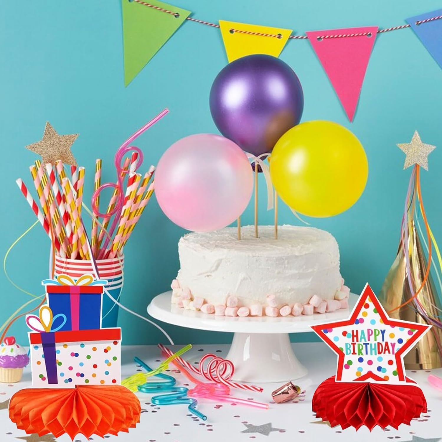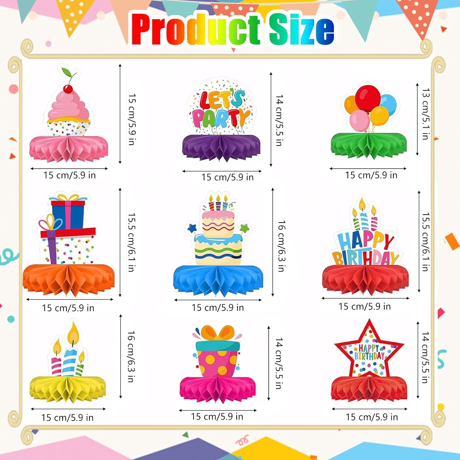 Vibrante e Varietà Di Disegni: Le nostre decorazioni per la tavola di compleanno presentano una varietà di motivi colorati e adorabili. Dai lecca-lecca agli eleganti cappelli di compleanno, ogni pezzo è una delizia per gli occhi. I diversi design garantiscono che la vostra festa si distingua e piaccia agli ospiti di tutte le età. Materiale Di Qualità Premium: Le nostre decorazioni di compleanno sono realizzate in carta e cartone di alta qualità, stampate su entrambi i lati, con superfici lisce, colori brillanti e lunga durata. Sono resistenti alla rottura e allo sbiadimento, consentendo di riutilizzarle per più feste. Facile Da Montaggiare: È sufficiente attaccare la decorazione al biglietto di compleanno, staccare l'adesivo e farlo aderire all'area designata sul lato del biglietto, quindi dispiegare la palla di decorazione. In pochi minuti, avrete una bellissima decorazione pronta da esporre. Opzioni Di Decorazione Multipla: Queste decorazioni per feste di compleanno non si limitano ai tavoli. È possibile utilizzarle per decorare il soffitto o le pareti e trasformare istantaneamente qualsiasi spazio in una festa di compleanno attaccando le clip. Adatte per feste di compleanno, baby shower, feste di laurea, anniversari e altre scene, per decorare la stanza dei bambini o per decorare la casa per le vacanze. Pacchetto Completo Per La Festa: Il nostro set di decorazioni da tavolo per feste di compleanno è composto da 9 stili diversi, che offrono una soluzione completa per le decorazioni della tua festa di compleanno. Si coordinano perfettamente con altri elementi del compleanno come candele, palloncini, torte e cappelli per rendere l'organizzazione della festa più efficiente e la festa più visivamente coesa.