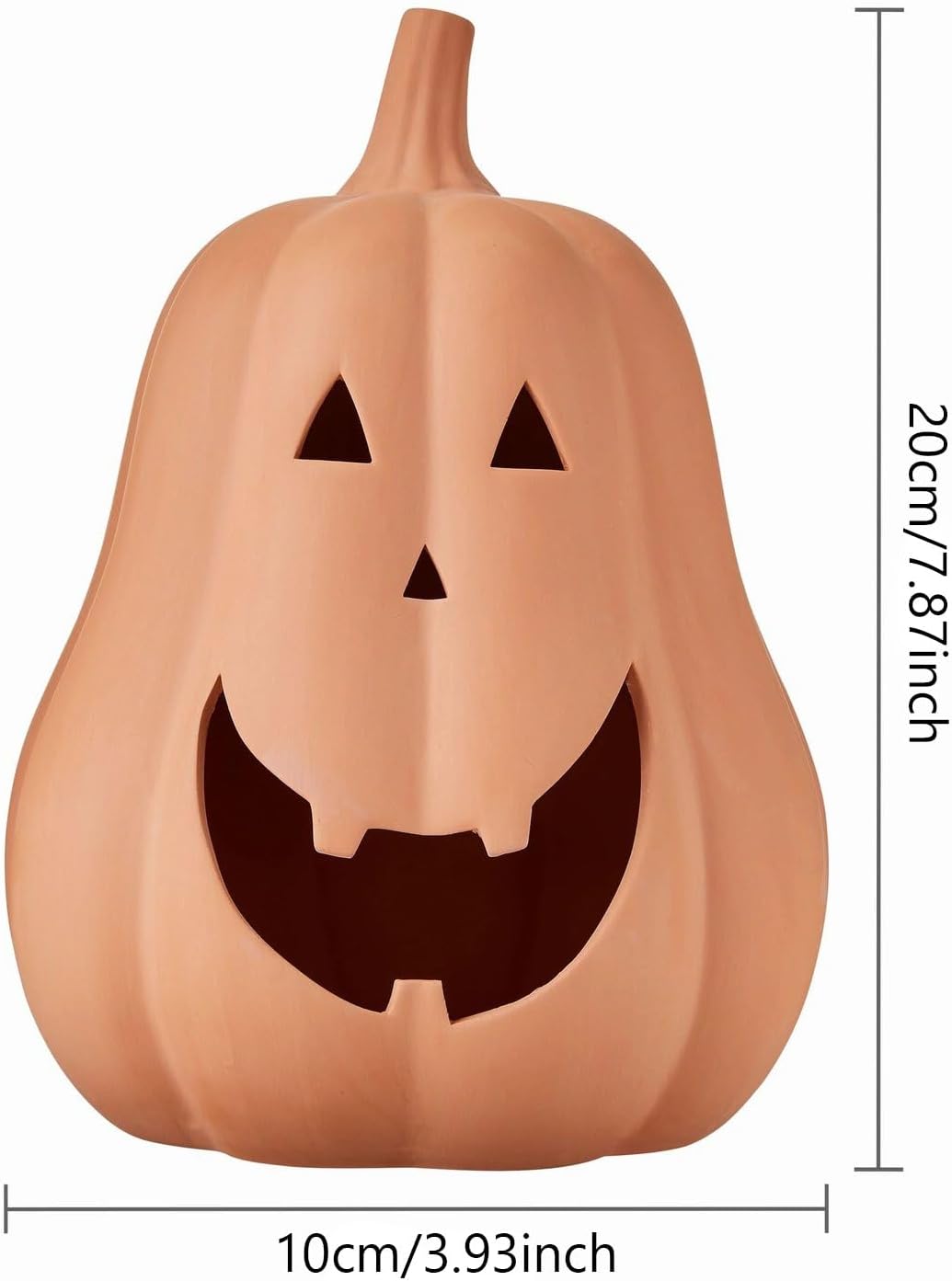 Realismo strutturato: la resina colata a mano cattura i dettagli autentici della zucca: scanalature profonde, tralci contorti e imperfezioni naturali. La finitura in terracotta opaca imita l'argilla invecchiata senza fragilità. Ogni pezzo è unico e resistente alle intemperie. Durata per tutte le stagioni: la resina resistente ai raggi UV resiste alla pioggia, al gelo (-20°C) e allo sbiadimento del sole. La base ponderata riempita di sabbia impedisce il ribaltamento in condizioni di vento. Perfetto per i gradini del portico o per le esposizioni ventose del cimitero. Versatilità: transizione dalla spettralità di Halloween al fascino del Ringraziamento. Abbinalo a balle di fieno per scene di raccolto o pizzi per un'eleganza vintage. Dettagli di qualità da collezione pronti per interni ed esterni: i lavaggi antichi applicati a mano evidenziano gli intagli. Gli steli rinforzati con filo di acciaio si flettono per pose personalizzate. L'altezza di 30 cm domina i raggruppamenti decorativi. **Atmosfera infestata istantanea: pronta per essere esposta direttamente dalla confezione regalo. Crea arredi coinvolgenti in pochi minuti: soglie, mensole o protezioni per scaffali.