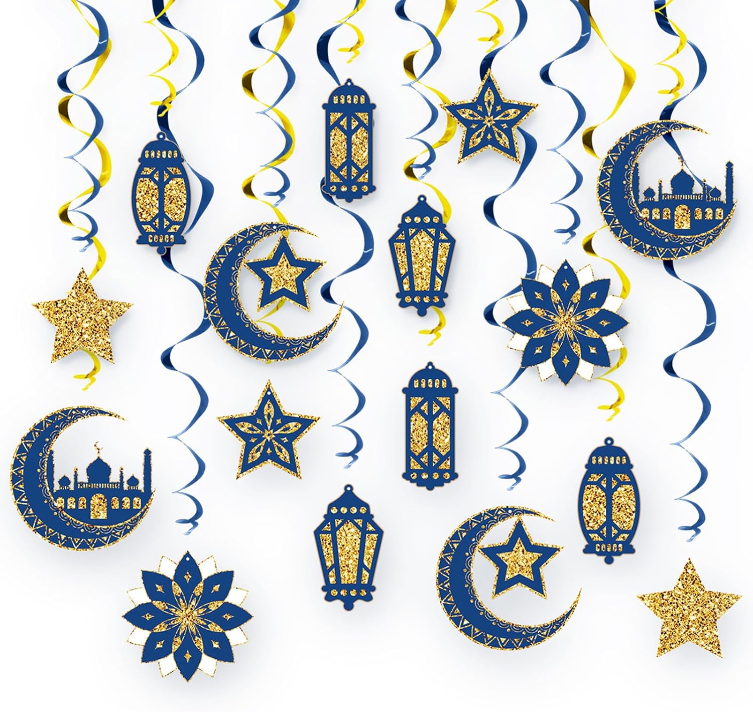 Molto adatte per la famiglia, la scuola e le aziende, queste decorazioni si rivolgono a chiunque festeggi l'Eid Festival Trasforma qualsiasi spazio abitativo in una festa di celebrazione con la decorazione in lamina per soffitto, rendendo memorabili le tue feste E Ampiamente usato per feste Eid, riunioni di famiglia, eventi comunitari o migliorare l'ambiente del festival nello spazio commerciale Festeggia il festival con la nostra decorazione da appendere Eid Festival, aggiungendo un tocco di eleganza e fascino a qualsiasi ambiente festivo Realizzati in carta e PVC, questi ornamenti da soffitto a tema Eid presentano colori e motivi intricati che attirano l'attenzione