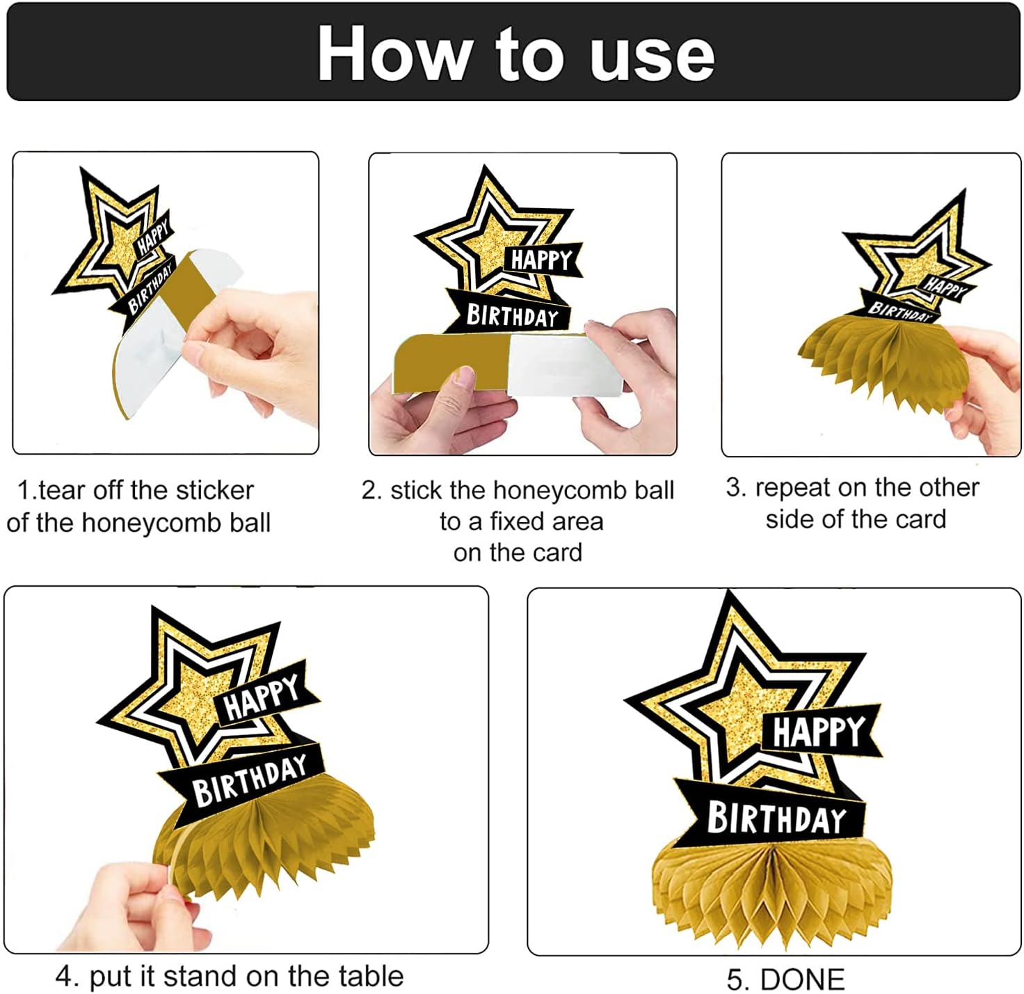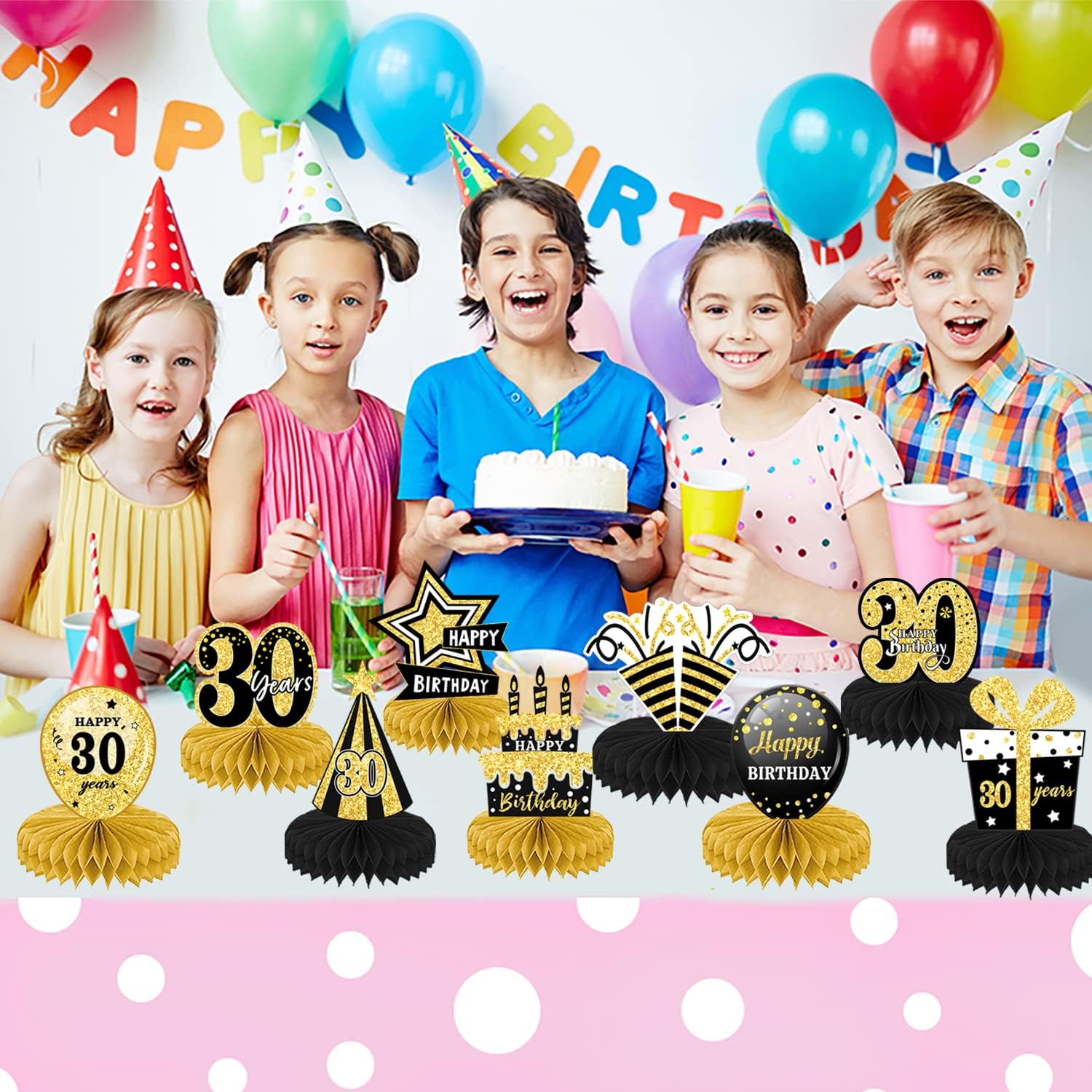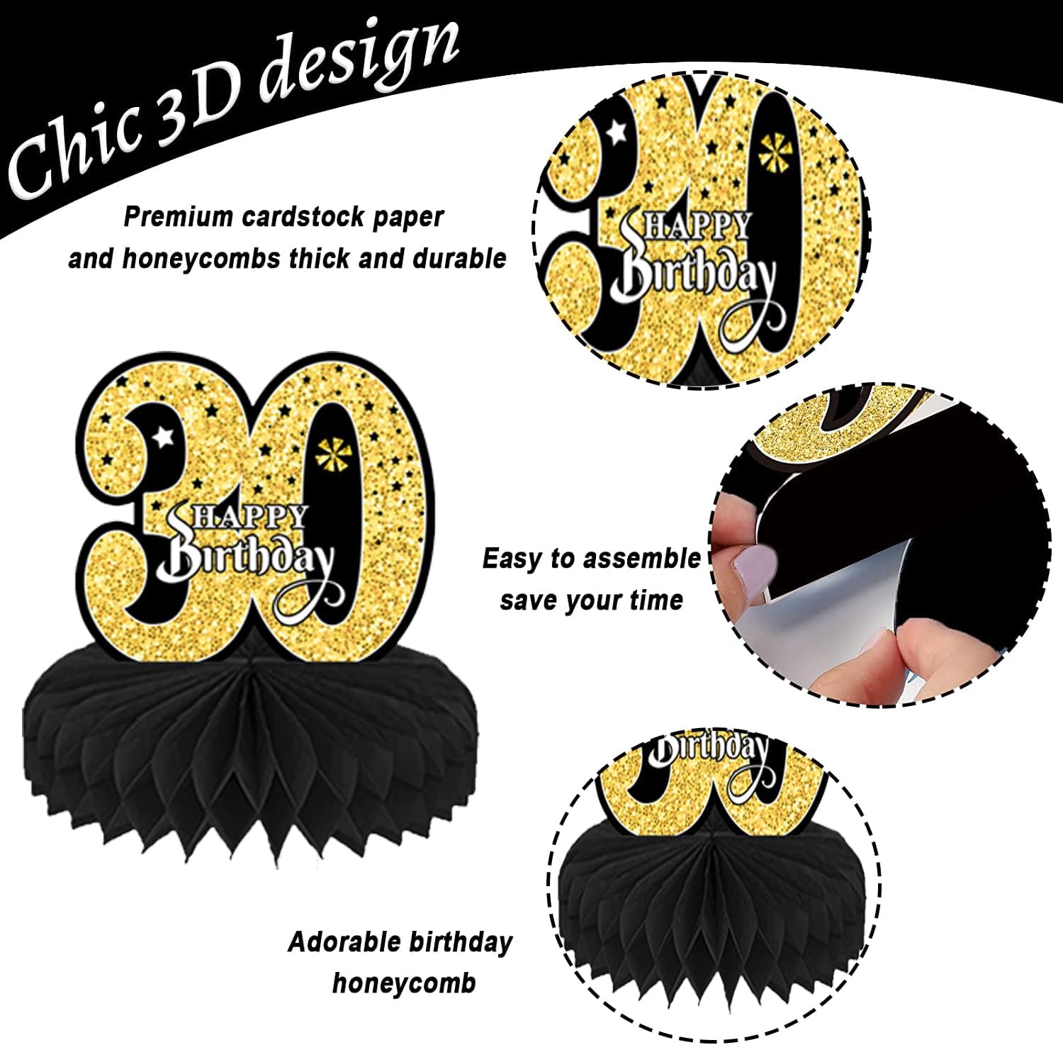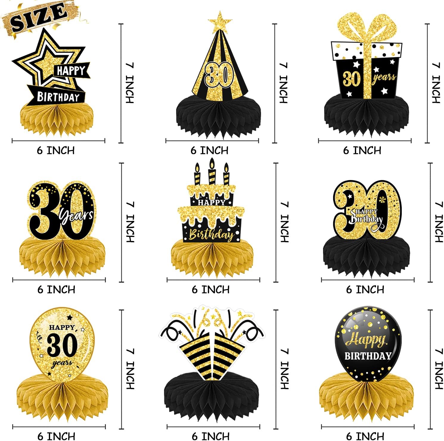 ALTA QUALITÀ: le decorazioni per il trentesimo compleanno sono realizzate con materiali cartacei ecologici con superficie laminata e tecnologia di stampa delicata. Non sbiadisce facilmente e può essere utilizzato ripetutamente, leggero, sicuro e non tossico. Decorazione davvero fantastica per la sala delle feste per un compleanno. DESIGN CON STAMPA A DOPPIO LATO: le decorazioni per la tavola di compleanno 3D utilizzano una buona stampa digitale, stampata su entrambi i lati, colori fantastici, puoi vedere bellissimi colori su ciascun lato, offrendoti un'esperienza visiva di alta qualità. FACILE DA ASSEMBLARE: strappare l'adesivo centrale a nido d'ape, aprire il nido d'ape e incollarlo sulla superficie della carta. Ripeti il passaggio successivo sull'altro lato della carta e infine posizionala sul tavolo. Ogni pezzo centrale ha un'area di assemblaggio del telaio. TEMI NERO E ORO: vari design di compleanno, come birra, scatole regalo, torte e cappelli, aggiungono un'atmosfera festosa. Il tema nero e oro e i graziosi motivi rendono questo accessorio decorativo per la tavola di compleanno più attraente. AMPIO UTILIZZO: decorazioni da tavola adatte per cerimonie, decorazioni per feste di compleanno, anniversari e altre scene di festa. Può essere utilizzato come decorazione per la tavola di compleanno e anche come sfondo fotografico.