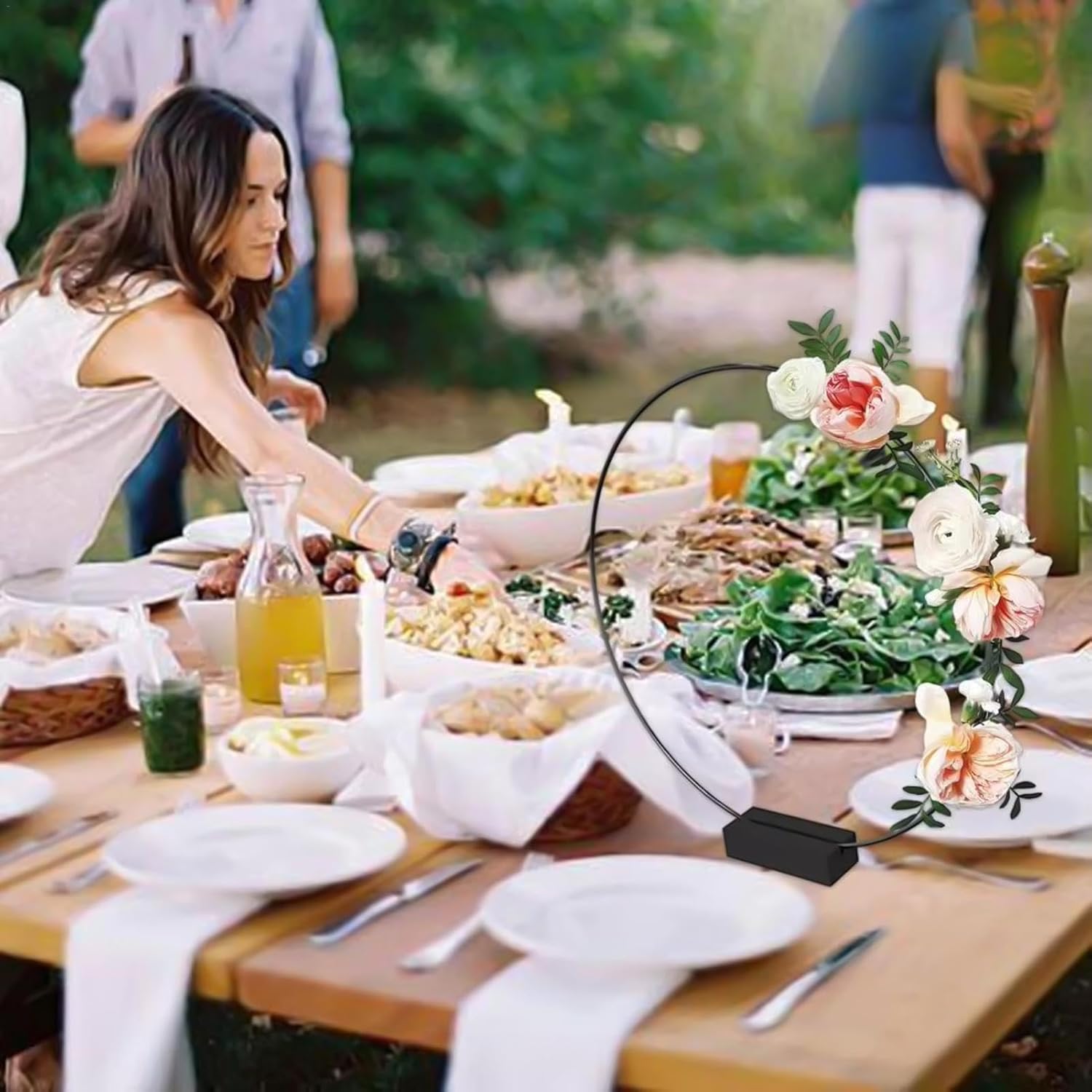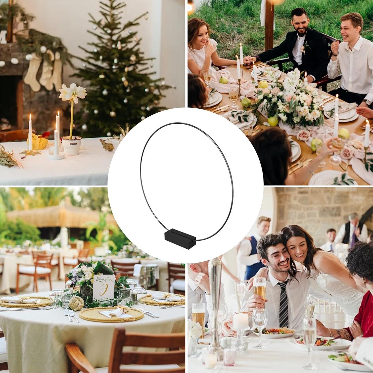 Artigianato creativo: lascia fluire la tua creatività con la nostra decorazione da tavolo a cerchio floreale. - e i ripiani in metallo possono essere facilmente abbinati e avvolti con stoffe, nastri e piante per creare centrotavola perfetti. Dai vita alla tua immaginazione con questo ciondolo realizzato a mano dal design innovativo: usa la tua immaginazione e creatività per creare una decorazione da tavolo unica e bella che irradia calore. Gli intricati dettagli lo rendono uno straordinario oggetto decorativo perfetto per qualsiasi evento o cena intima. Forza perfetta: il nostro centrotavola floreale è progettato per durare ed è realizzato in metallo, quindi non si romperà facilmente ed è resistente all'usura. Il suo design forte e robusto garantisce un uso duraturo. Regalo di Natale: le tue celebrazioni irradieranno calore con il nostro topper da tavolo a cerchio floreale: il regalo perfetto per matrimoni, compleanni, Natale, Ringraziamento o annuale. Il suo design affascinante e il suo fascino elegante incanteranno i tuoi ospiti. Ampia applicazione: evidenzia la tua decorazione con il nostro centrotavola con cornice floreale, perfetto per matrimoni, feste e decorazioni domestiche. Versatile e impressionerà ogni ospite