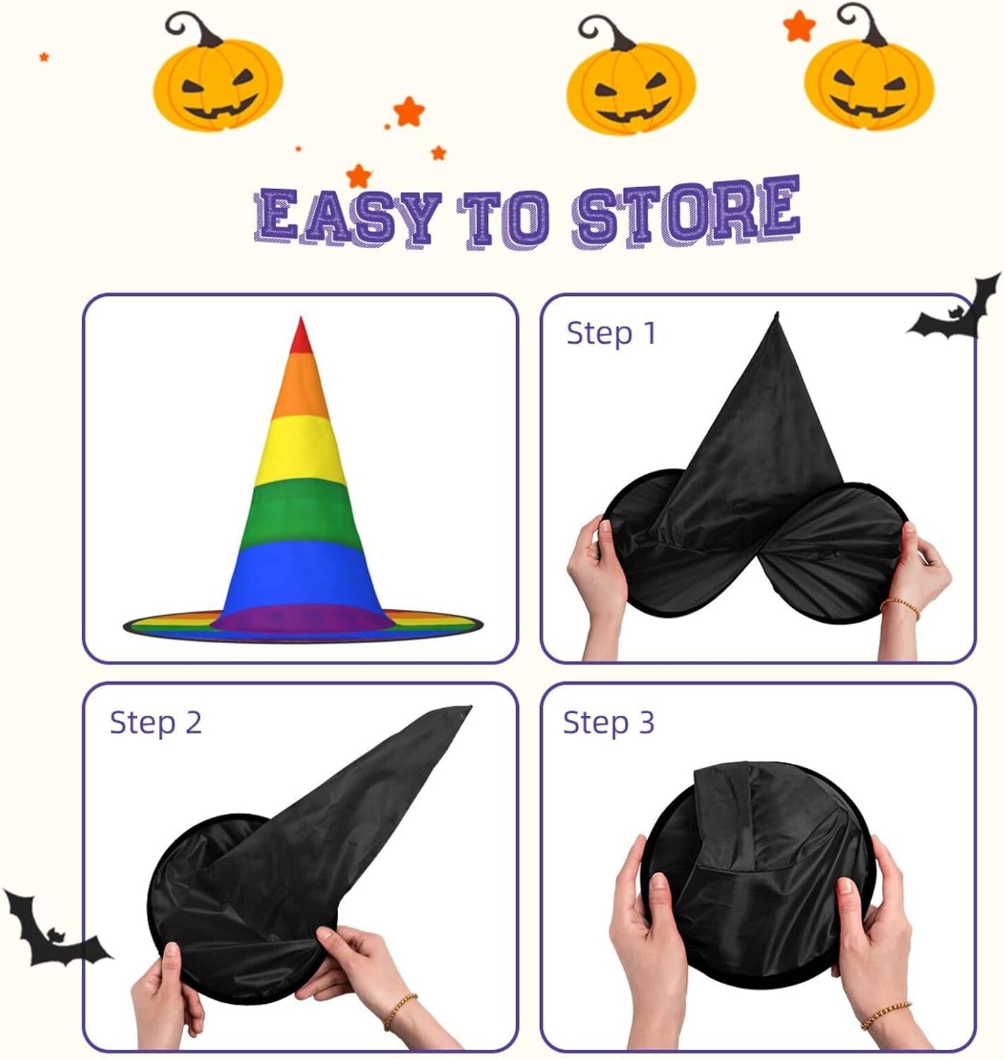 Decorazione del cappello della strega della stampa della bandiera dell'arcobaleno per Halloween,Cappelli di Halloween versatili,Cappelli maghi pieghevoli cappelli da strega Bulk