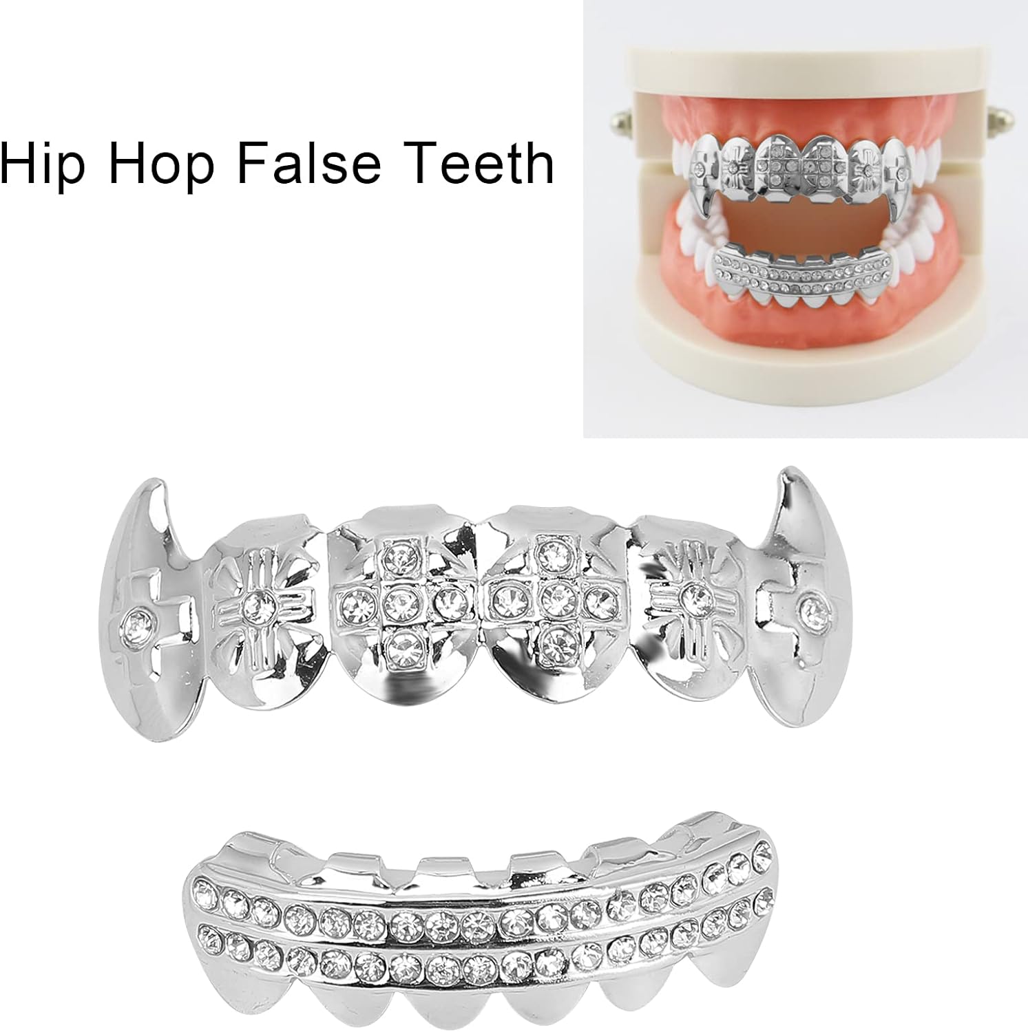 Indossalo in ogni occasione per mostrare la tua personalità ed è l'accessorio di moda hip hop . ◇◆◇♡Facile indossare e rimuovere, sicuro usare senza odore, riutilizzabile e non facile sbiadire, meravigliosi denti hip hop. Non piegare le griglie quando la temperatura è molto bassa. ◇◆◇♡Il set di denti hip hop è realizzato in materiale di rame di alta qualità, dotato di accessori completi della confezione per un comodo utilizzo. La maggior parte delle persone indossa con altri gioielli per ottenere una lucentezza e una personalizzazione. Indossalo per un servizio fotografico, un video, al club o semplicemente per l'uso quotidiano. Adatto per vestire le vacanze di Halloween, per ottenere l'effetto di una decorazione inaspettata e piacevole. ◇◆◇♡Ideale per feste di Halloween, sfilate di moda hip hop, concerti di musica, regali di compleanno, per chi ama gli elementi della moda hip hop.