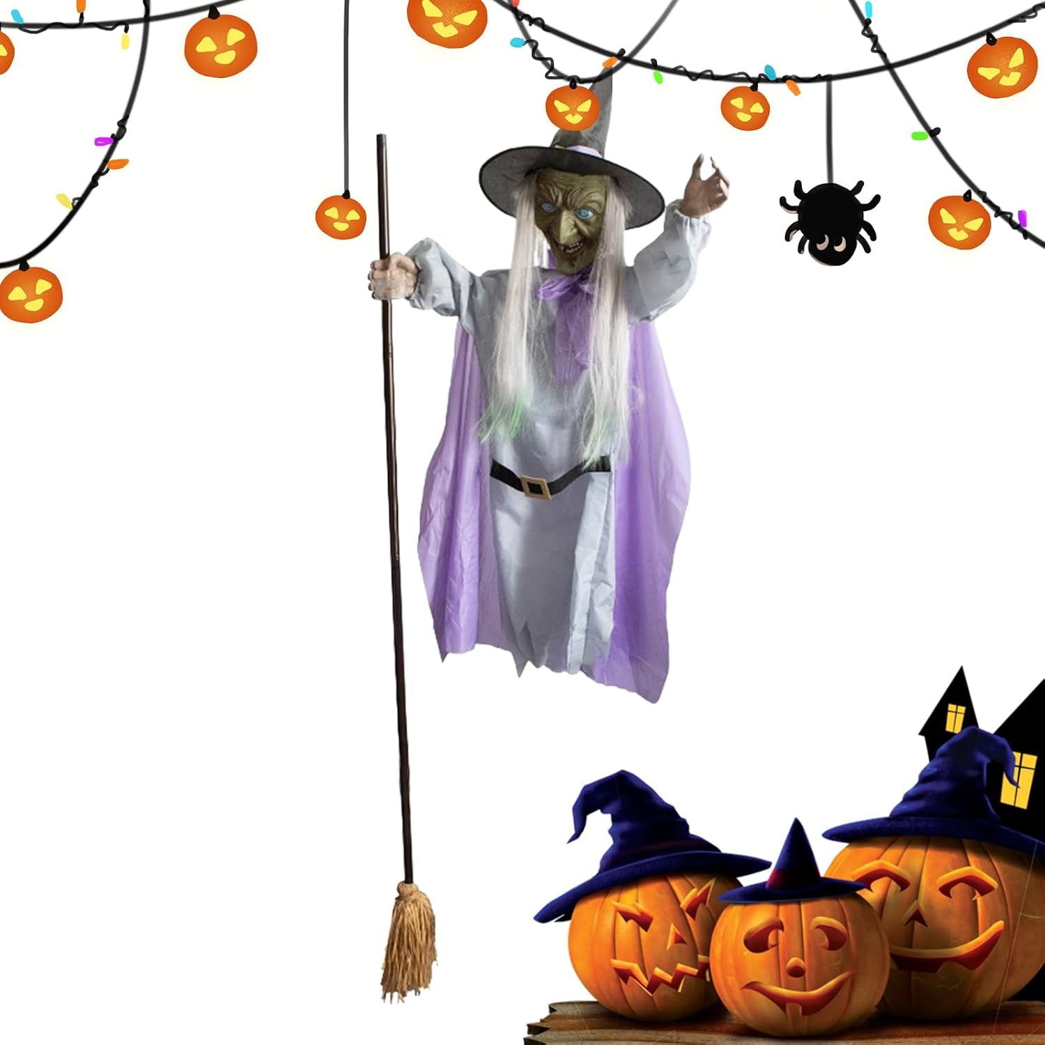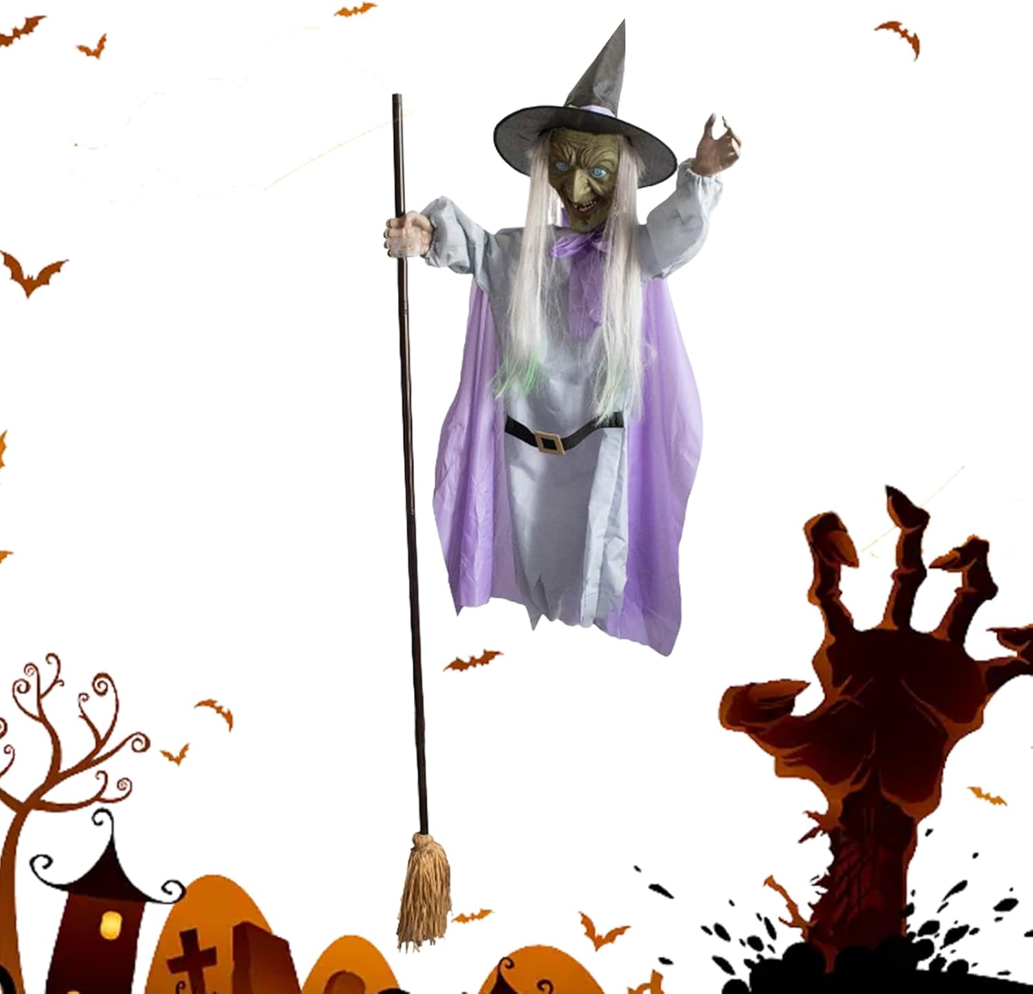 Decorazione trasformante: il design della strega infonde un'autentica vita spettrale in giardini e terrazze e crea senza sforzo un'impressionante atmosfera di Halloween all'aperto. Lavorazione stabile del materiale: la lavorazione di alta qualità con materiali durevoli garantisce durata. Le caratteristiche realistiche attirano l'attenzione di tutti e arricchiscono la tua festa di Halloween con un elemento decorativo impressionante per tutte le età. Dichiarazione accattivante: come impressionante decorazione della strega di Halloween, funge da sorprendente centrotavola in ogni ambiente, affascina con le sue dimensioni accattivanti e attirerà sicuramente gli sguardi ammirati dei tuoi ospiti. Luoghi ideali: decorazione perfetta per giardino, prato o aree interne per Halloween: il design resistente agli agenti atmosferici consente un uso a lungo termine e un utilizzo senza problemi all'interno e all'esterno Decorazione affascinante: la tecnologia di levitazione fa fluttuare magicamente la decorazione della strega. Quando ti avvicini, l'illuminazione viene attivata automaticamente dalla batteria integrata per un'atmosfera di Halloween impressionante.