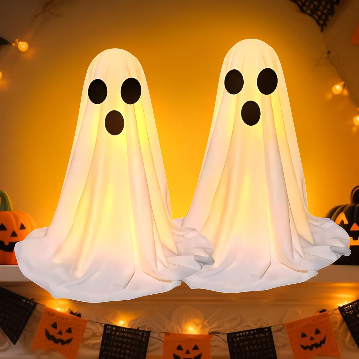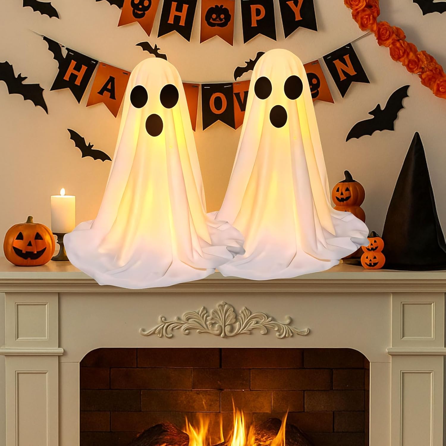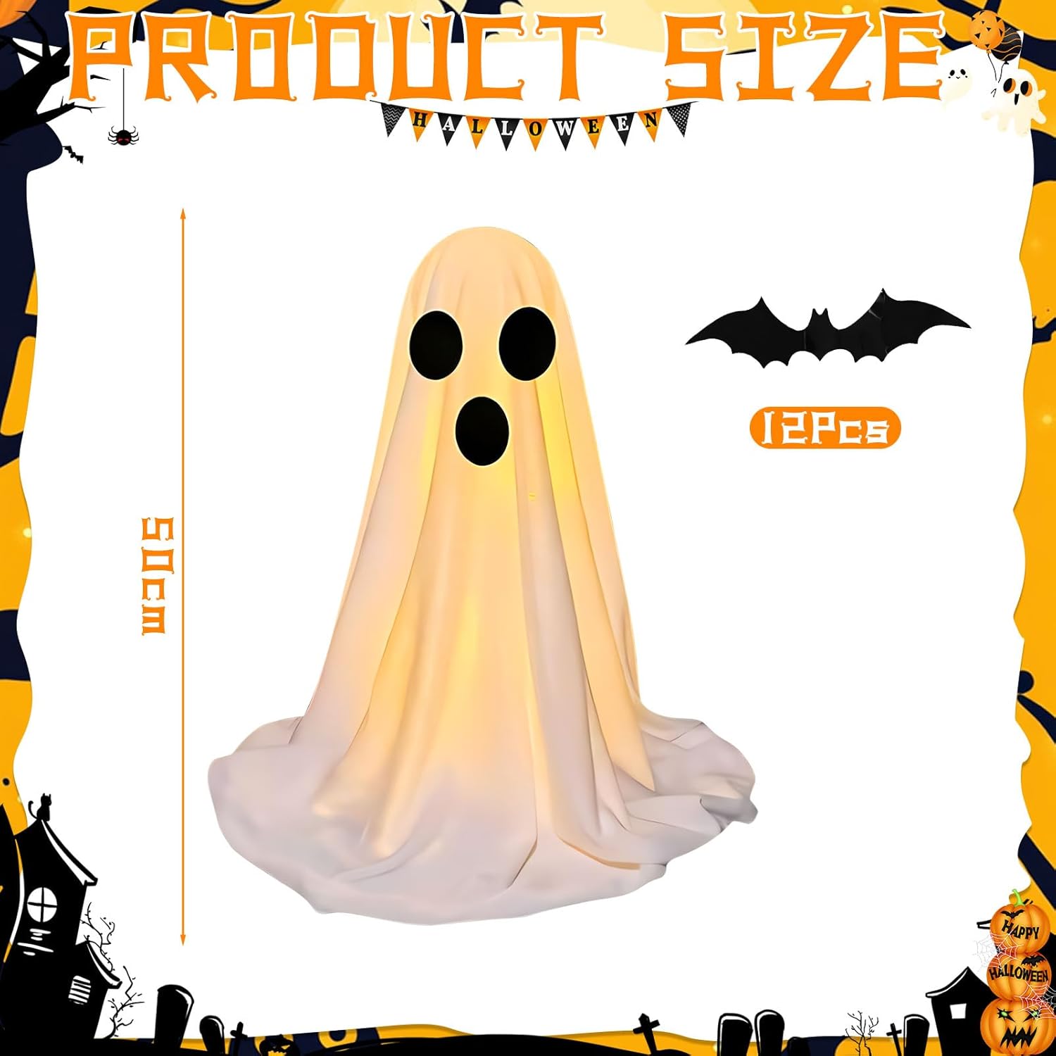 【Fantasmi luminosi della decorazione di Halloween】: il tessuto bianco morbido e fluido conferisce al fantasma un aspetto spettrale ed elegante ed è l'aggiunta perfetta alle decorazioni di Halloween. La base robusta e la robusta asta in plastica garantiscono un supporto sicuro. 【Decorazione fantasma con lucine】: Ogni fantasma è dotato di luci LED (senza batterie AA) che fanno brillare dolcemente la tua decorazione di Halloween e creano un'atmosfera spettrale. Il montaggio è semplice e veloce e crea un'atmosfera spettrale con il minimo sforzo. 【Decorazione di Halloween per interni ed esterni】: questi fantasmi sono alti 50 cm, il che li rende della dimensione ideale per gli espositori da scrivania. Sono un'ottima decorazione per la tua casa, cucina, stanza o caminetto e aggiungono un'atmosfera divertente e stravagante alla tua celebrazione di Halloween