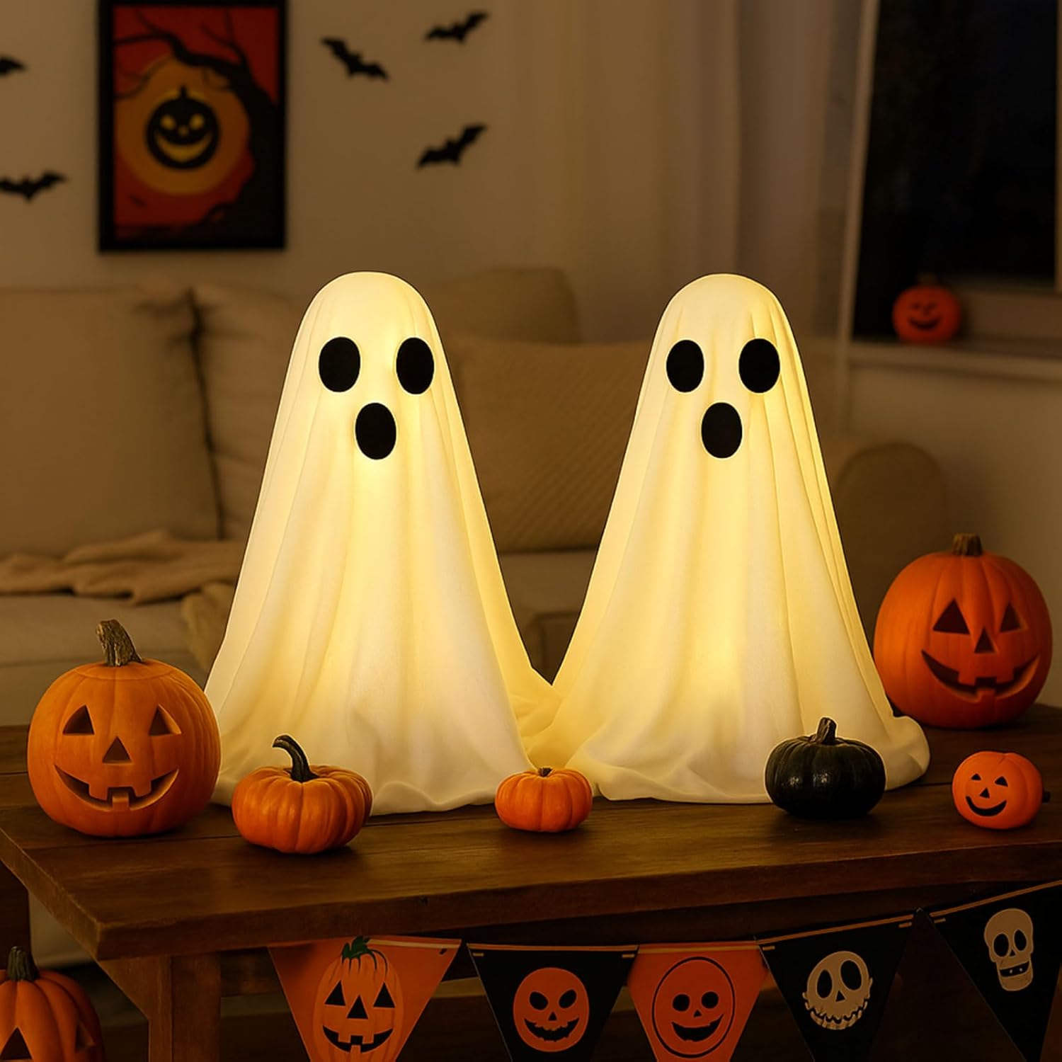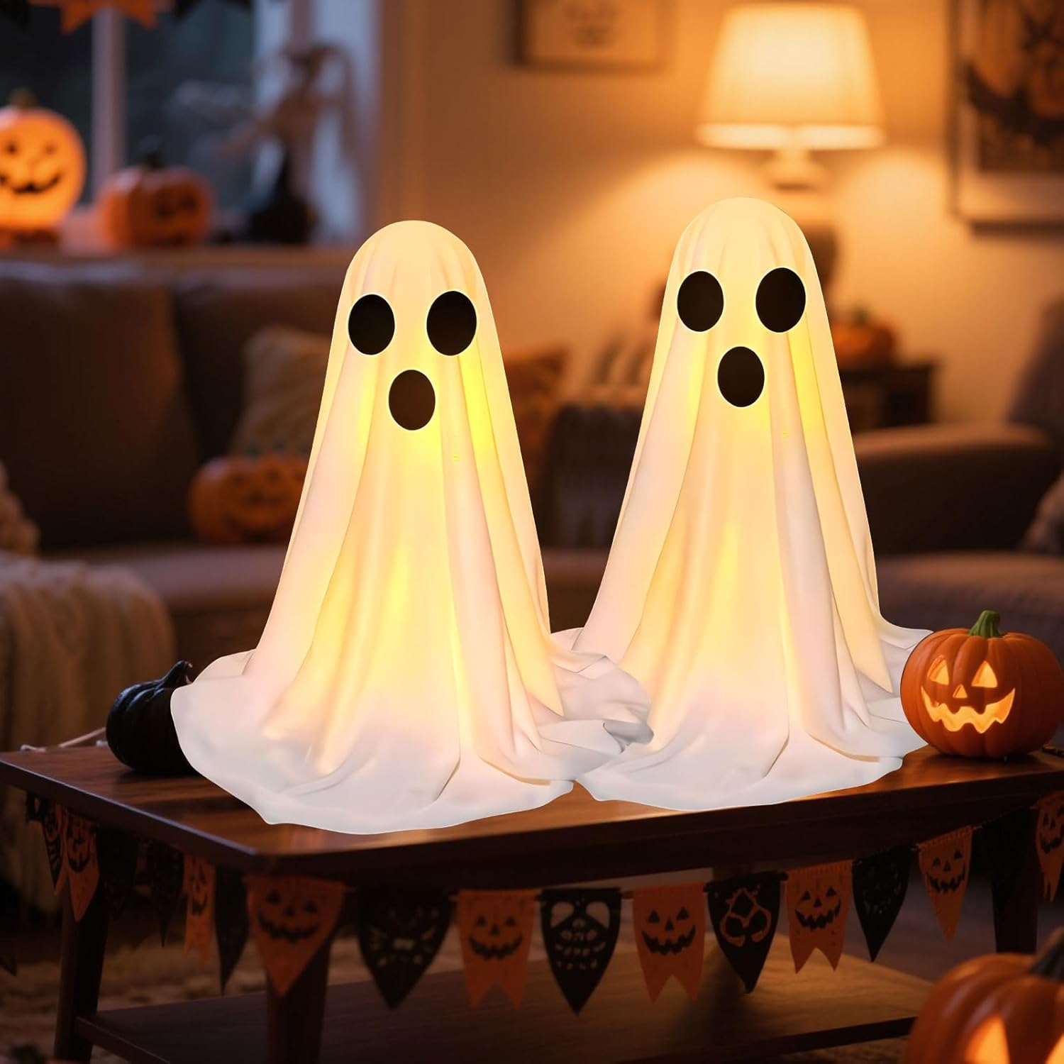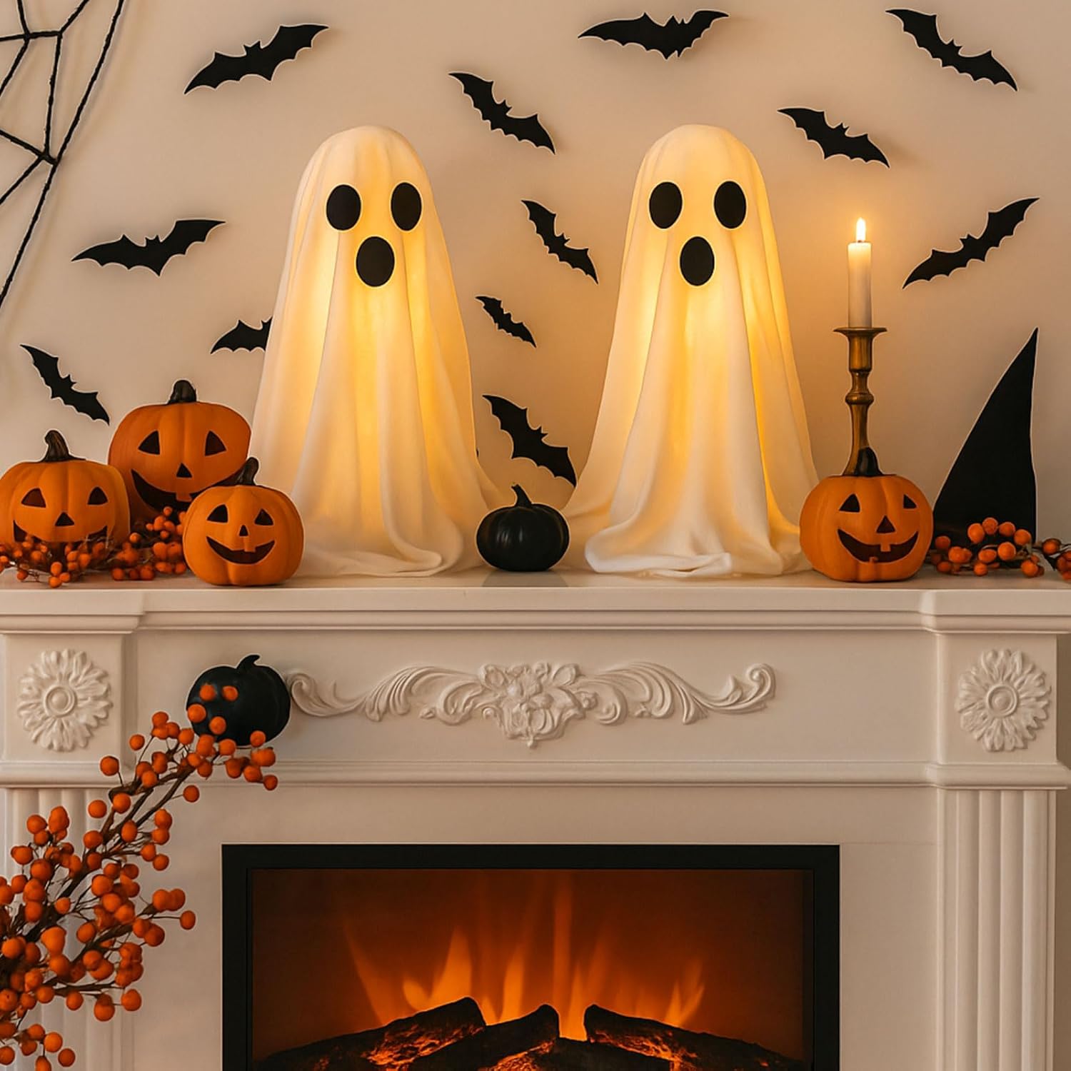 【Fantasmi luminosi della decorazione di Halloween】: il tessuto bianco morbido e fluido conferisce al fantasma un aspetto spettrale ed elegante ed è l'aggiunta perfetta alle decorazioni di Halloween. La base robusta e la robusta asta in plastica garantiscono un supporto sicuro. 【Decorazione fantasma con lucine】: Ogni fantasma è dotato di luci LED (senza batterie AA) che fanno brillare dolcemente la tua decorazione di Halloween e creano un'atmosfera spettrale. Il montaggio è semplice e veloce e crea un'atmosfera spettrale con il minimo sforzo. 【Decorazione di Halloween per interni ed esterni】: questi fantasmi sono alti 50 cm, il che li rende della dimensione ideale per gli espositori da scrivania. Sono un'ottima decorazione per la tua casa, cucina, stanza o caminetto e aggiungono un'atmosfera divertente e stravagante alla tua celebrazione di Halloween