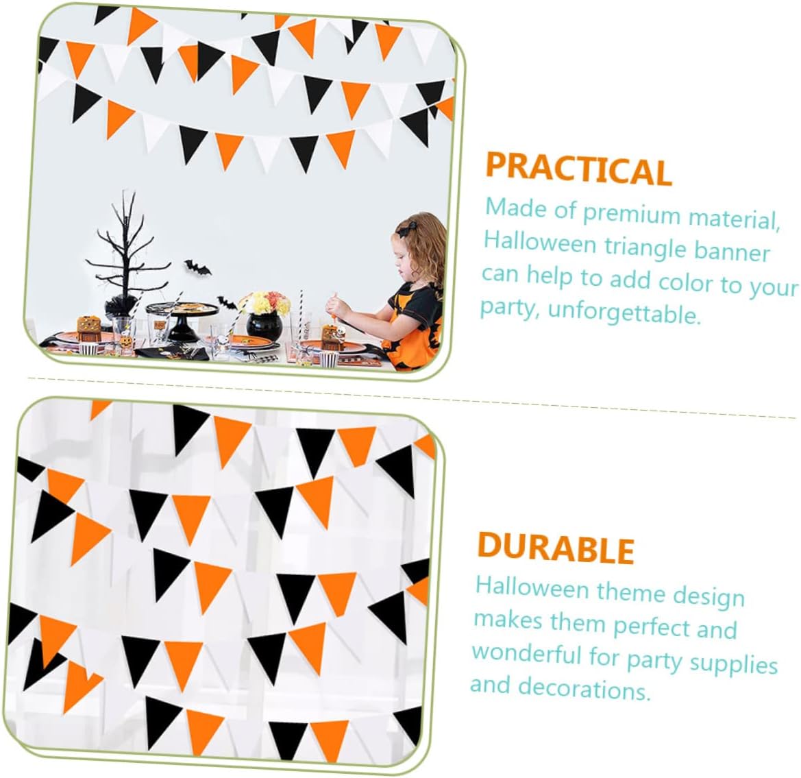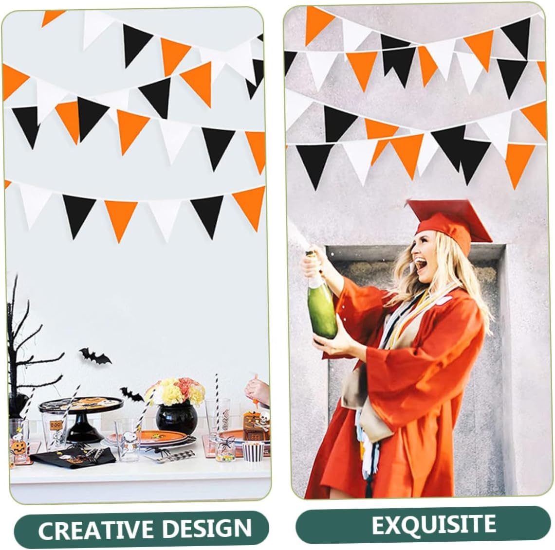 Bandiere triangolari: il design creativo e unico di Halloween le rende decorazioni per feste, ghirlande decorative e bianche. Ghirlanda di stendardi per feste di Halloween: realizzata con uno stendardo triangolare bianco nero arancione eccellente e utile, non facile da danneggiare. Arancione: può essere utilizzato per decorare feste e celebrazioni di Halloween, come meravigliosa e fantastica decorazione per feste, ghirlanda per camino. Decorazioni per esterni: possono essere utilizzate a casa e possono essere utilizzate anche in bar o case infestate, giardino e cortile come ghirlanda di stendardi con bandiera triangolare. Banner triangolare di Halloween per esterni: può essere appeso al muro, alla finestra o allo studio per decorare la tua festa, eccellente effetto decorativo, ghirlande all'aperto.