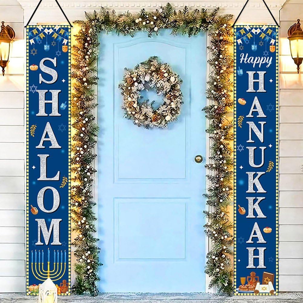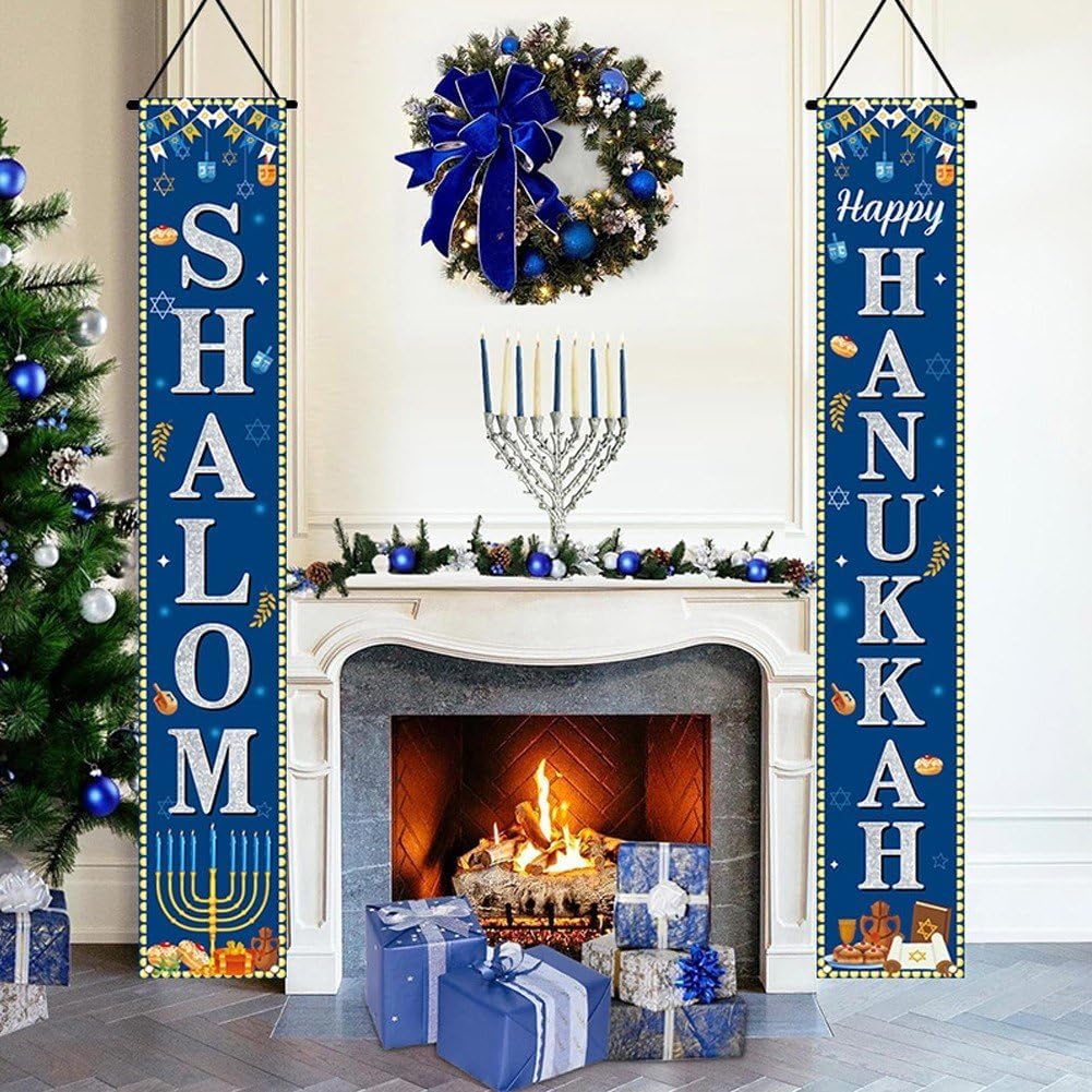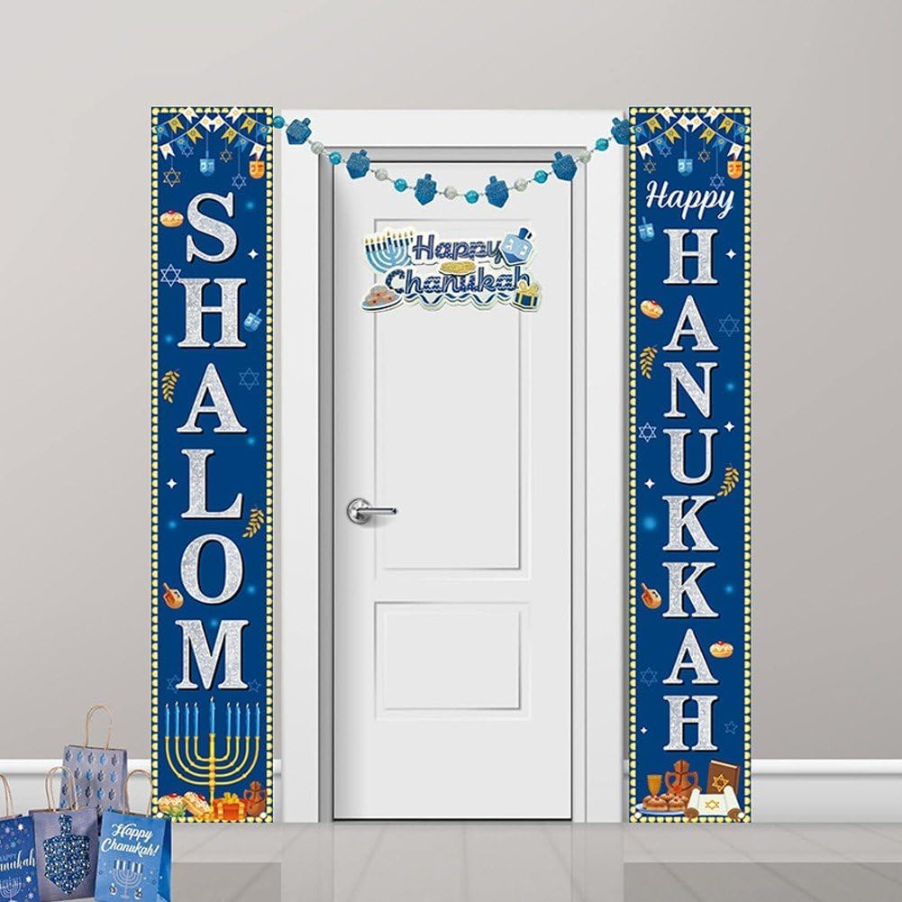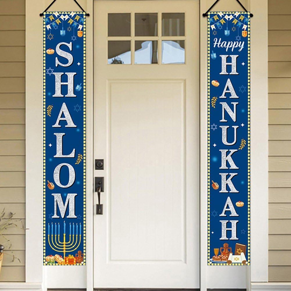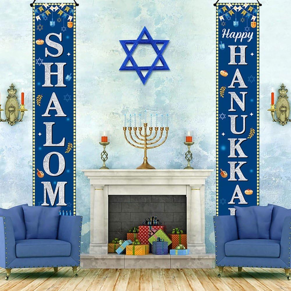 La confezione include: 2 striscioni per portico extra-large "Hanukkah". Dimensioni: 30 x 180 cm. Le lettere sono abbastanza grandi da essere viste da lontano. Ideale per decorare il tuo giardino per Hanukkah. PRONTO DA APPENDERE: Ogni stendardo di Hanukkah ha robusti pali di corda nella parte superiore per appenderlo e tenerlo in posizione. Non sarà portato via dal vento. NUOVO DESIGN DI HANUKKAH: questo set di insegne per portico di Hanukkah è progettato con molti modelli di elementi di Hanukkah "Happy Hanukkah", che possono stimolare notevolmente l'atmosfera di Hanukkah. Belle come le decorazioni per le porte di Hanukkah. I colori non sbiadiscono sotto la pioggia. ALTA QUALITÀ: il cartello appeso sul portico di Hanukkah è realizzato con tessuti molto densi. Robusto durevole.