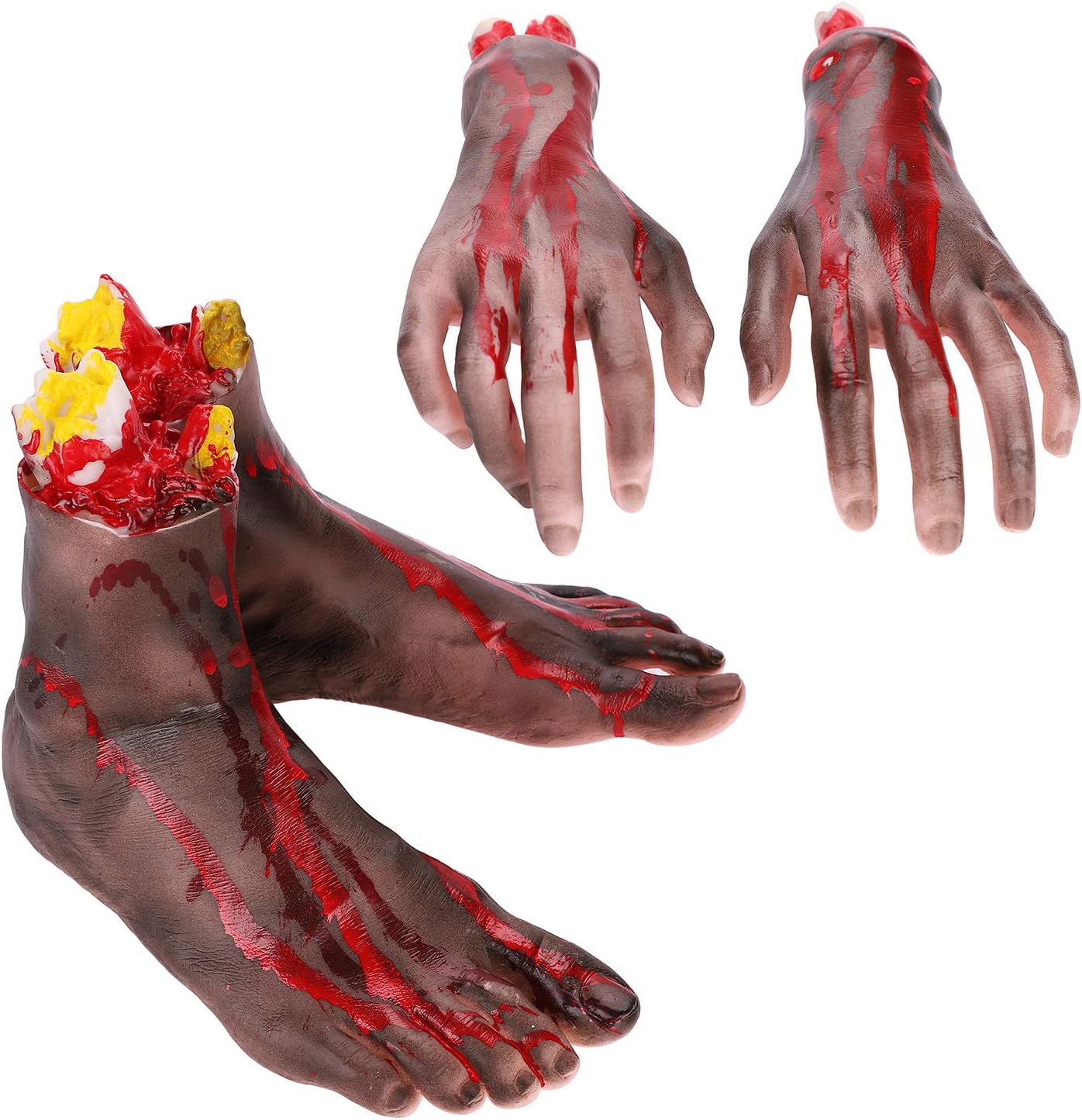 [Materiale] Le mani e i piedi sanguinanti negli oggetti di scena di Halloween sono fatti di gomma. Per rendere gli oggetti di scena più realistici, li abbiamo anche riempiti di cotone per farli sembrare più reali. [Taglia] Ci sono quattro semi diversi qui, inclusi semi per le dita, semi per i piedi, semi per le braccia, ecc. Ad eccezione dei semi per le mani piccole, questi spaventosi oggetti di scena di Halloween sono tutti proporzionati al corpo umano. [Realistico] I nostri oggetti di scena di Halloween sono molto realistici, le dimensioni sono simili alle normali parti del corpo umano, i palmi possono essere usati per stringere la mano e fare un saluto spaventoso. [Oggetti di scena] Queste mani e piedi rotti possono essere utilizzati non solo ad Halloween, ma anche in vari piccoli festival, come il primo di aprile, feste horror o ogni volta che vuoi fare uno scherzo. Vuoi fare uno scherzo. [Applicazione] Puoi mascherare questi oggetti di scena come parti del tuo corpo o mettere queste parti del corpo sanguinanti sul tavolo, nell'armadio, sul letto o persino gettarle fuori dal luogo buio.