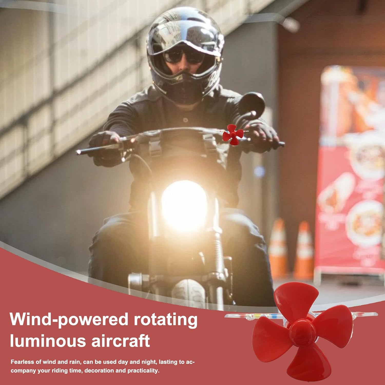 Decorazione per moto elettrica: goditi un accessorio senza manutenzione per la tua moto o e-bike che sfrutta l'energia eolica per ruotare dinamicamente, migliorando l'estetica offrendo un modo semplice per personalizzare la tua corsa Illuminazione a LED colorata: aggiungi un tocco vivace con luci LED multicolore, progettate per aumentare la visibilità e l'estetica di caschi o veicoli, creando accattivanti display notturni per una migliore decorazione Esperienza di guida senza ostacoli: con una attenzione a non bloccare la visione, l'arredamento si adatta facilmente a diversi caschi e manubri, garantendo una portabilità leggera e un'installazione semplice specificamente su misura per l'uso di e-bike e moto Stile accattivante dell'aereo: eleva l'arredamento della bici o del casco con un meccanismo di rotazione divertente e vivace, mostrando un'atmosfera giocosa ispirata alla tecnologia e una forma unica di aeroplano progettata per attirare organicamente la visibilità su strada Durevolezza per tutte le stagioni: progettato con materiale robusto resistente alle intemperie, garantisce una durata in tutte le stagioni, rendendolo ideale sia per l'uso diurno che notturno mentre funge da compagno di guida robusto ed elegante