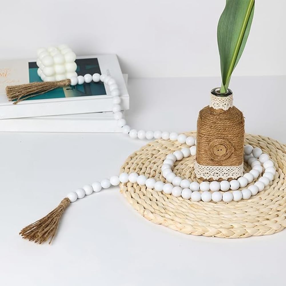AGGIUNTA PERFETTA A QUALSIASI STANZA: questa opera d'arte rustica in legno completa i temi fattoria, bohémien, vintage, campagna francese, shabby chic, minimalista, hippie e moderno per la tua casa. Appendi i rosari attorno a fioriere, candelabri o barattoli di vetro, appendili al muro, posizionali su una maniglia o posizionali su un vassoio per creare un look da fattoria chic ovunque tu voglia. DECORAZIONE GHIRLANDA DI PERLINE DI LEGNO DELLA CASCINA: La ghirlanda di perline di legno grigia è fatta a mano e aggiungerà un tocco unico a qualsiasi stanza e mostrerà il tuo grande gusto e la tua natura artistica. La lunghezza di questa ghirlanda rustica può soddisfare le diverse esigenze di bricolage e decorazione della casa. Aggiunta molto carina al tuo tema rustico country! MATERIALE ECOLOGICO: questa perla di legno è realizzata e presenta atossicità e durata. Il materiale naturale ed ecologico conferisce alle perline di legno la loro struttura unica, rendendole adatte ai nostri interni in stile country. La superficie lucida ti assicura di non doverti mai preoccupare che sbavature o segatura possano ferirti le mani. La corda di iuta rende la bellissima ghirlanda resistente e duratura. REGALO PERFETTO: le nostre decorazioni di perline di legno in stile rustico fatte a mano di alta qualità in semplici decorazioni. È un fantastico regalo per la persona amata che ama lo stile country! È un regalo estivo perfetto, un regalo autunnale, un regalo del Ringraziamento, un regalo di Halloween, un regalo di compleanno, un regalo di anniversario e . Sia gli adulti che i bambini adoreranno questo arredamento per la casa!