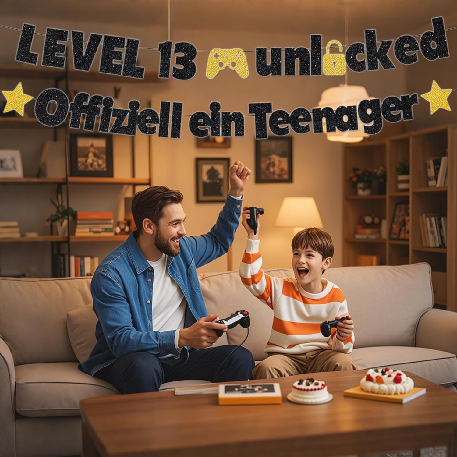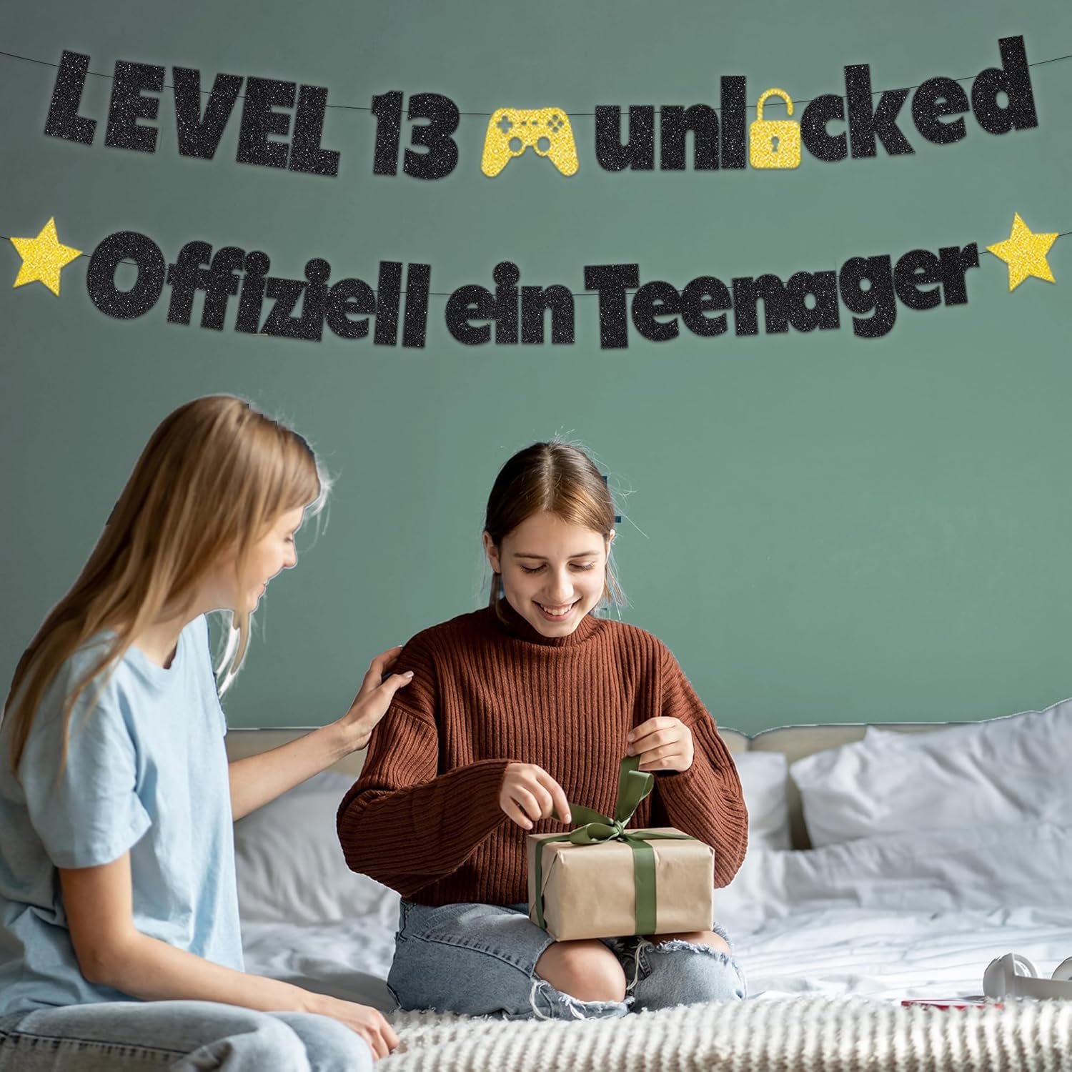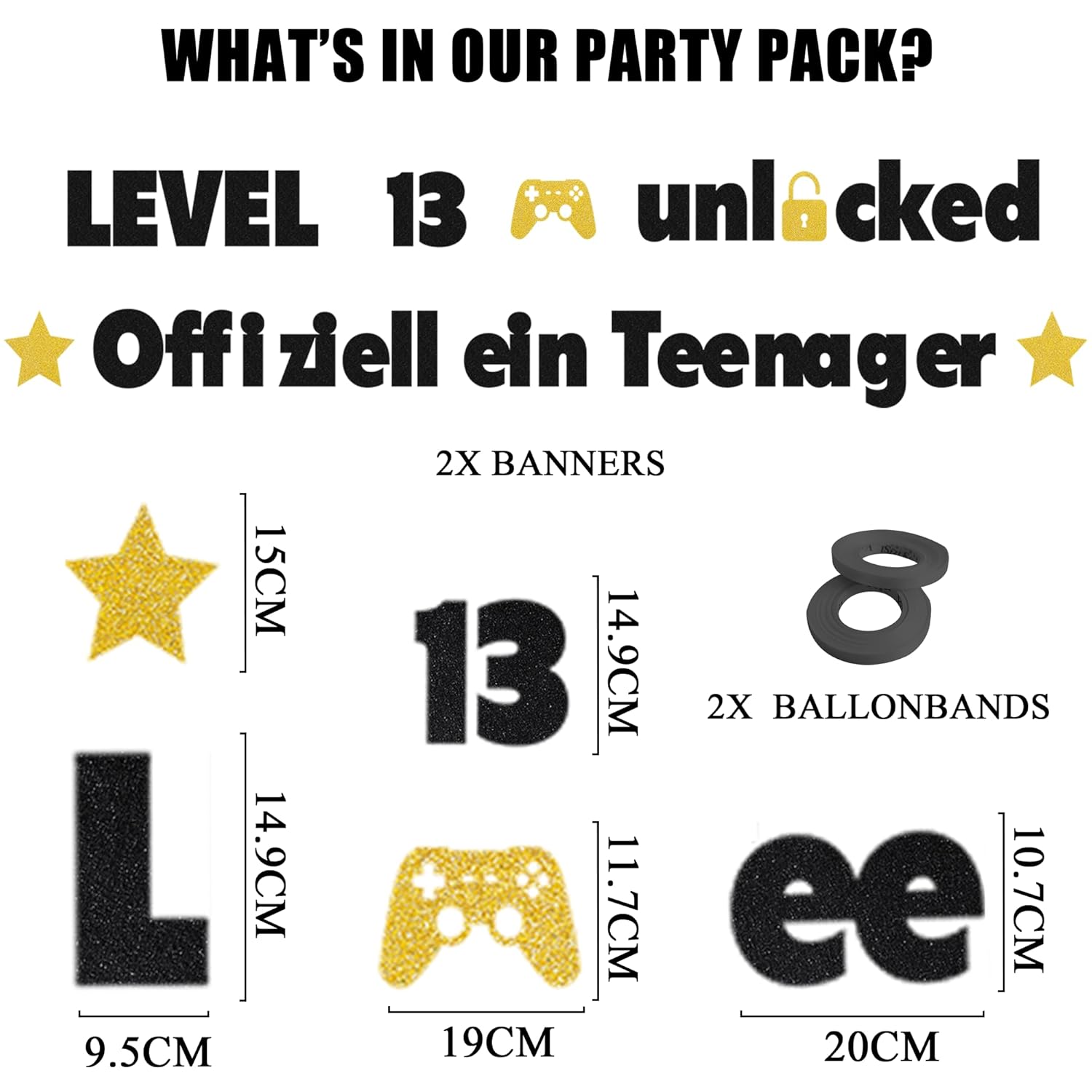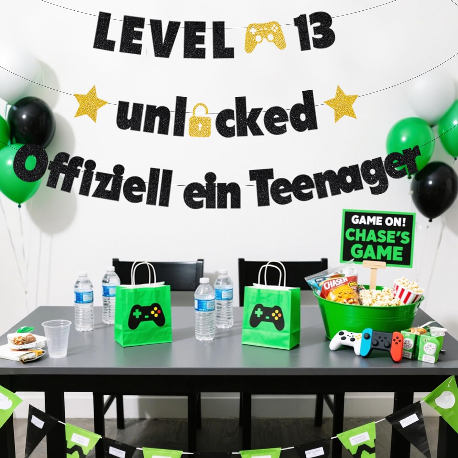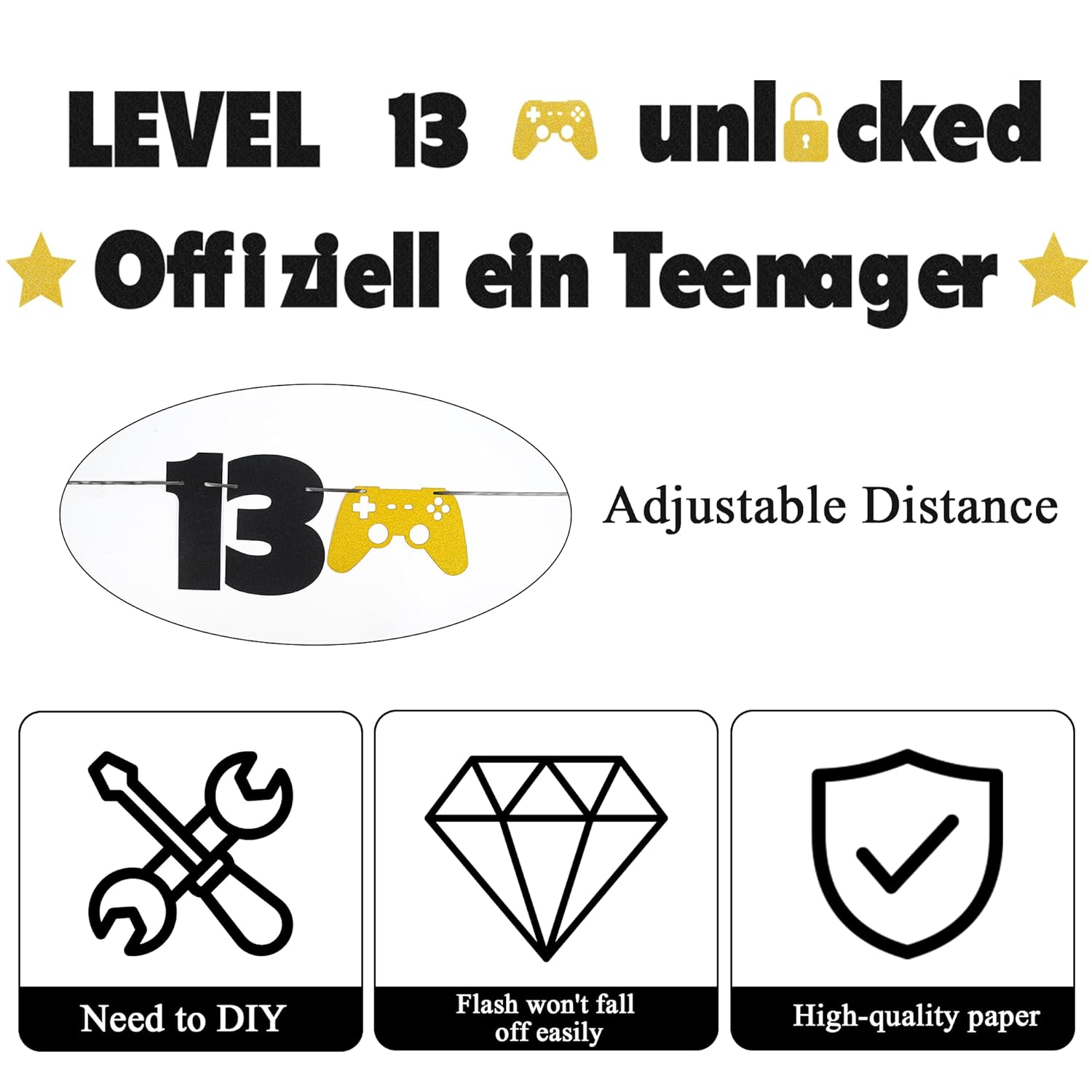 Decorazione per il 13° compleanno: riceverete una decorazione di compleanno fai da te con livello 13 sbloccato e ufficiale (le lettere devono essere infilate da soli, il set viene fornito con un nastro), per portare un po' di atmosfera di gioco per il 13° compleanno Materiali di alta qualità: lo striscione 13 Years Old è realizzato in cartone metallico lucido di alta qualità, leggero e riutilizzabile. Colori vivaci e buona qualità creano un'atmosfera festosa Facile da usare: lo striscione per il 13° compleanno è pronto in pochi minuti. È perfetto per una parete, una finestra o un albero e offre una decorazione semplice per ogni bambino di 13 anni o bambina di 13 anni Festa per adolescenti: progettato per la ragazza o il ragazzo per il 13° compleanno che ama i giochi. Decorazione perfetta per adolescenti che festeggiano il loro 13° compleanno a casa o in giardino con la famiglia e gli amici Compleanno indimenticabile: con il suo aspetto unico e i colori alla moda, la ghirlanda del 13 ° compleanno offre un eccellente effetto decorativo. Creare ricordi indimenticabili per ogni ragazzo di 13 anni e bambina di 13 anni