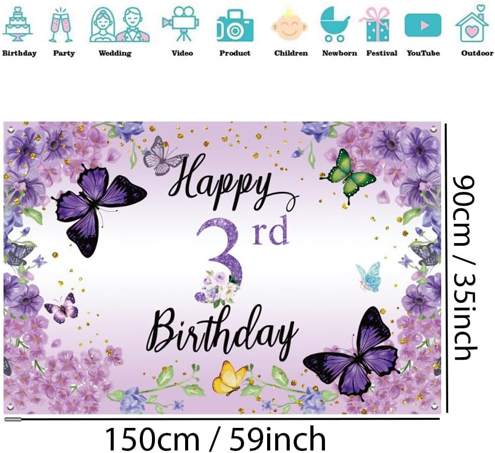 ❤️ Design elegante: striscione per il 3° compleanno con elementi floreali viola, perfetto per una festa di compleanno impressionante. ❤️ Materiale durevole: realizzato in vinile, stampa digitale ad alta definizione durevole e resistente agli strappi con dettagli accattivanti e colori realistici. ❤️ Dimensioni appropriate: 150 cm x 90 cm, può essere utilizzato come sfondo per feste di compleanno, cartello di benvenuto, decorazione della tavola, decorazione di torte, carta da parati, tovaglia, tenda o cartello di ricevimento, adatto per uso interno ed esterno. ❤️ Facile da installare: sfondo per la festa del 3° compleanno felice con occhielli in rame sui 4 angoli, basta appenderlo attraverso l'anello di tenuta in rame (corda non inclusa). Puoi anche attaccarlo al muro o alla finestra con nastro adesivo. Ferro da stiro. ❤️ Ottimo regalo di compleanno: il bellissimo poster con cartello illuminerà la festa di compleanno e lascerà una profonda impressione sugli ospiti.