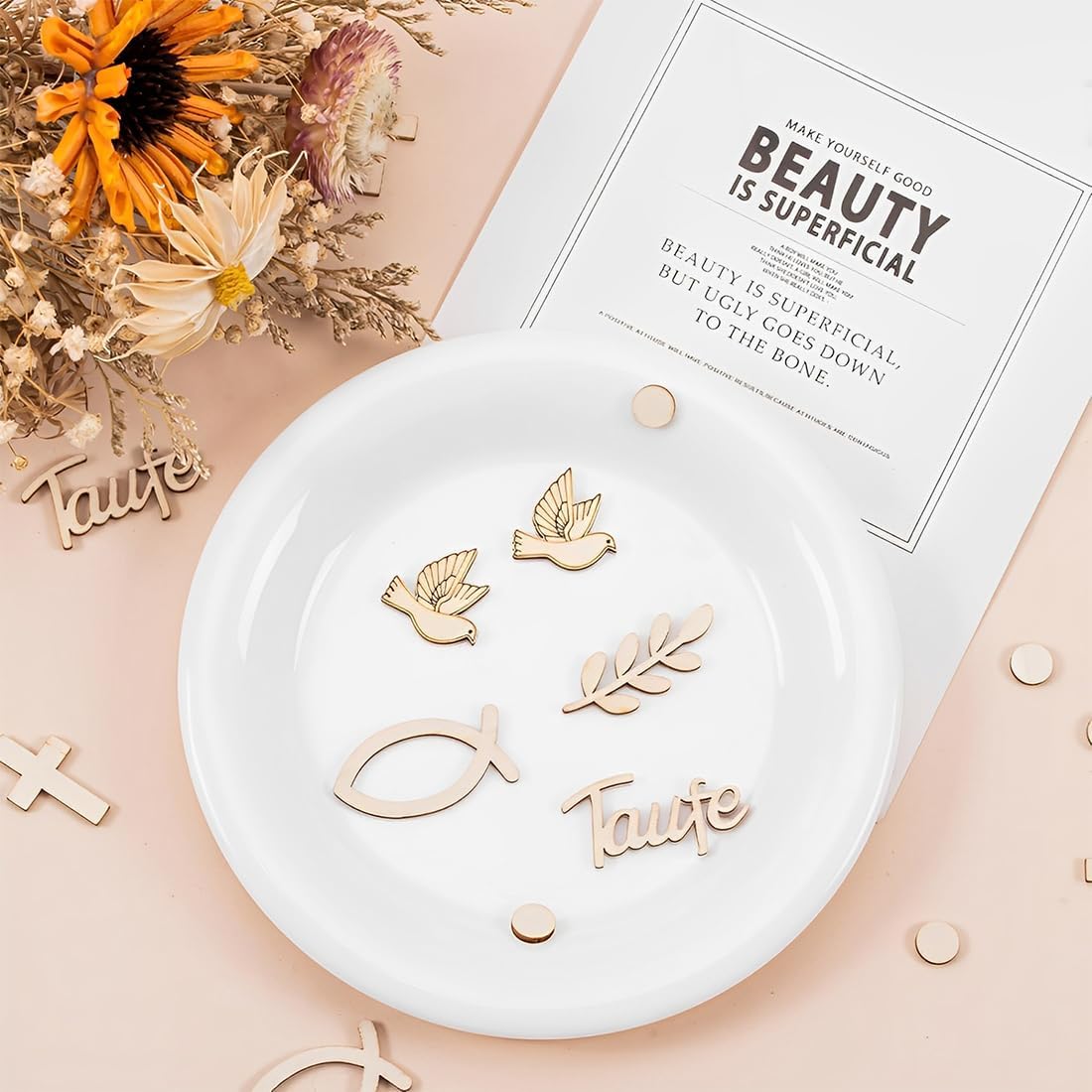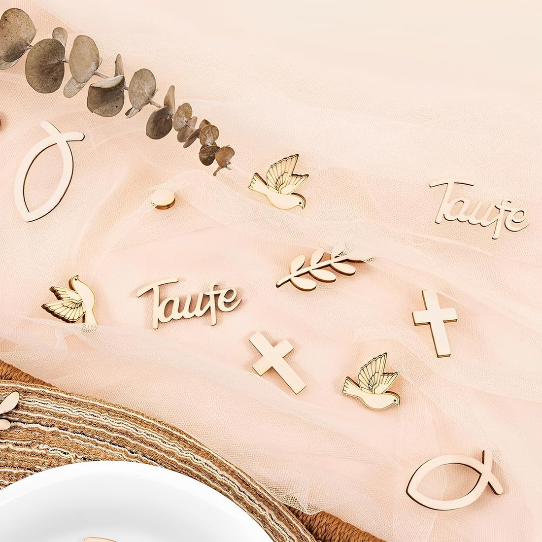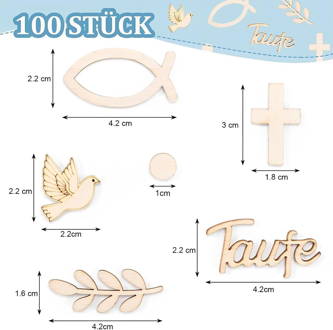 Ricca modellazione a tema religioso: comprende croce, colomba, pesce, rami e foglie e segni di "battesimo" e altre decorazioni in legno a tema religioso, un set per soddisfare le esigenze di cerimonie religiose, decorazioni per feste e altri scenari del tema di decorazione per creare una forte atmosfera religiosa. Materiale in legno naturale: tagliato e lucidato da legno naturale, conserva la consistenza e la sensazione del legno, ecologico e inodore. Superficie liscia, non facile da graffiare, non solo ha uno stile rustico naturale, ma è anche durevole e può essere conservata a lungo. Dimensioni ridotte e squisite: le dimensioni di ogni forma sono in miniatura, come la croce di ca. 3 cm×1,8 cm, “battesimo” ca. 4,2 cm × 2,2 cm, leggero e piccolo, facile da decorare sulla torta, sulla scrivania, sulla confezione regalo, ecc., non occupa molto spazio e può creare con precisione un'atmosfera dettagliata. Set di valore da 100 pezzi: il set completo include 100 decorazioni in legno in diverse forme e combinazioni, in quantità abbondante. Che si tratti di un grande evento religioso o di una piccola festa familiare, può essere utilizzato a piacimento, con elevata riutilizzabilità e un eccellente rapporto qualità-prezzo. Scenari multipli: può essere utilizzato per decorazioni di torte per cerimonie battesimali religiose, decorazioni da tavola; Possono essere utilizzati anche come materiali fatti a mano per realizzare biglietti d'auguri a tema religioso, cornici per foto e confezioni regalo decorative, aggiungendo un senso di cerimonia ai regali a tema religioso. La praticità è ampia!