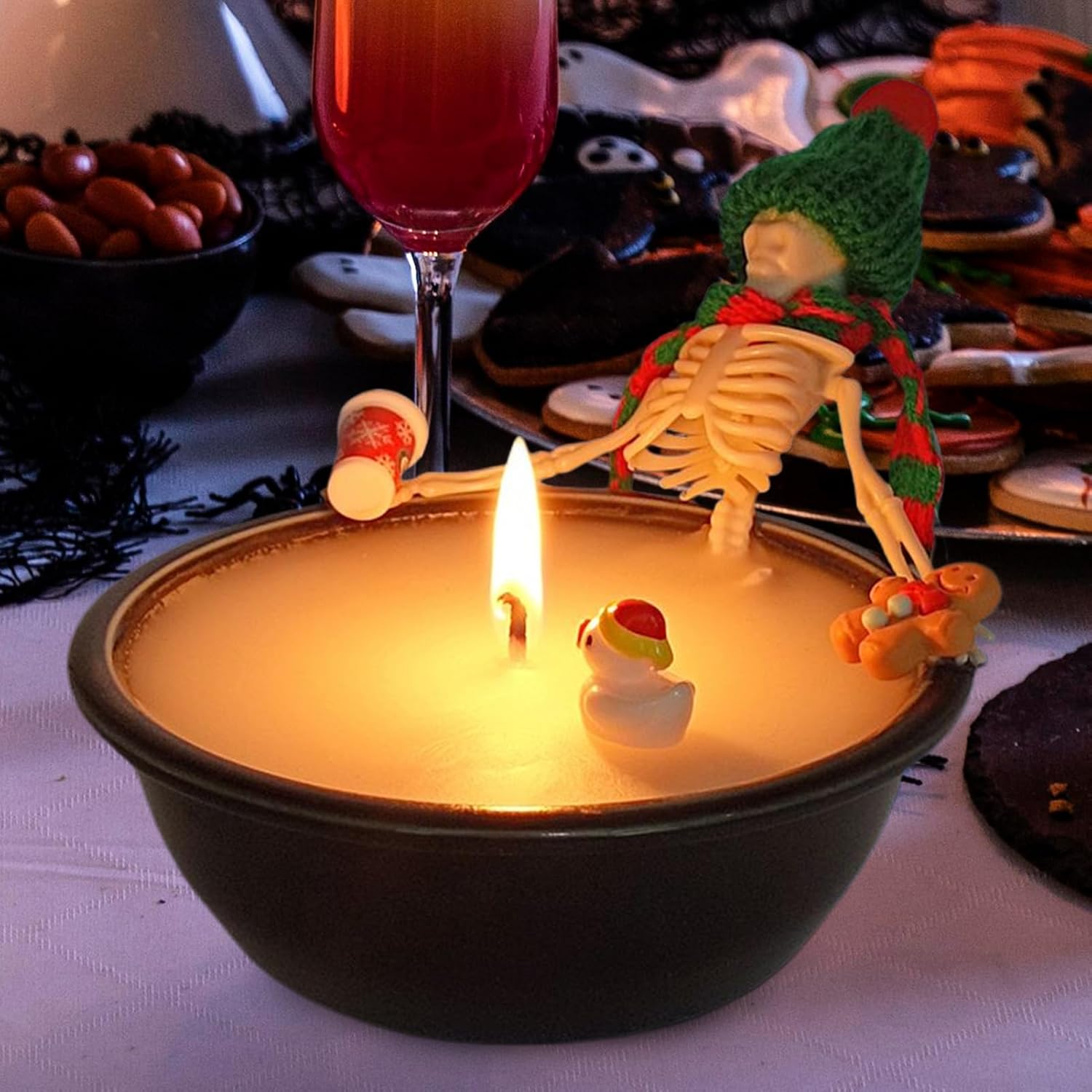 Candele spettrali ma eleganti: caratterizzate da un design scheletro di ispirazione gotica, queste candele portano un fascino estetico e artistico scuro ma raffinato, elevando l'atmosfera del tuo tema di Halloween Decorazione versatile per le vacanze: queste candele portano calore e fascino ai rituali delle vacanze, con una durata della luce estesa e adattabilità per vari ambienti, migliorando perfettamente lo spirito stagionale con il loro bagliore affidabile e coerente Ambiente domestico tranquillo: progettate pensando alla sicurezza, le candele utilizzano componenti a combustione pulita e ingredienti innocui per produrre un profumo calmante senza rilasciare emissioni nocive, perfette per feste al chiuso Decorazioni delicate: queste candele di Halloween sono ideali per l'arredamento delle vacanze, raddoppiando come un oggetto decorativo multiuso che migliora qualsiasi spazio con un tocco di fascino gotico e opzioni di posizionamento adattabili Ampiamente usate: combinando fascino decorativo tutto l'anno con l'idoneità per tutte le principali vacanze, queste candele sono un regalo perfetto e aggiungono eleganza a qualsiasi ambiente festivo o celebrativo senza sforzo