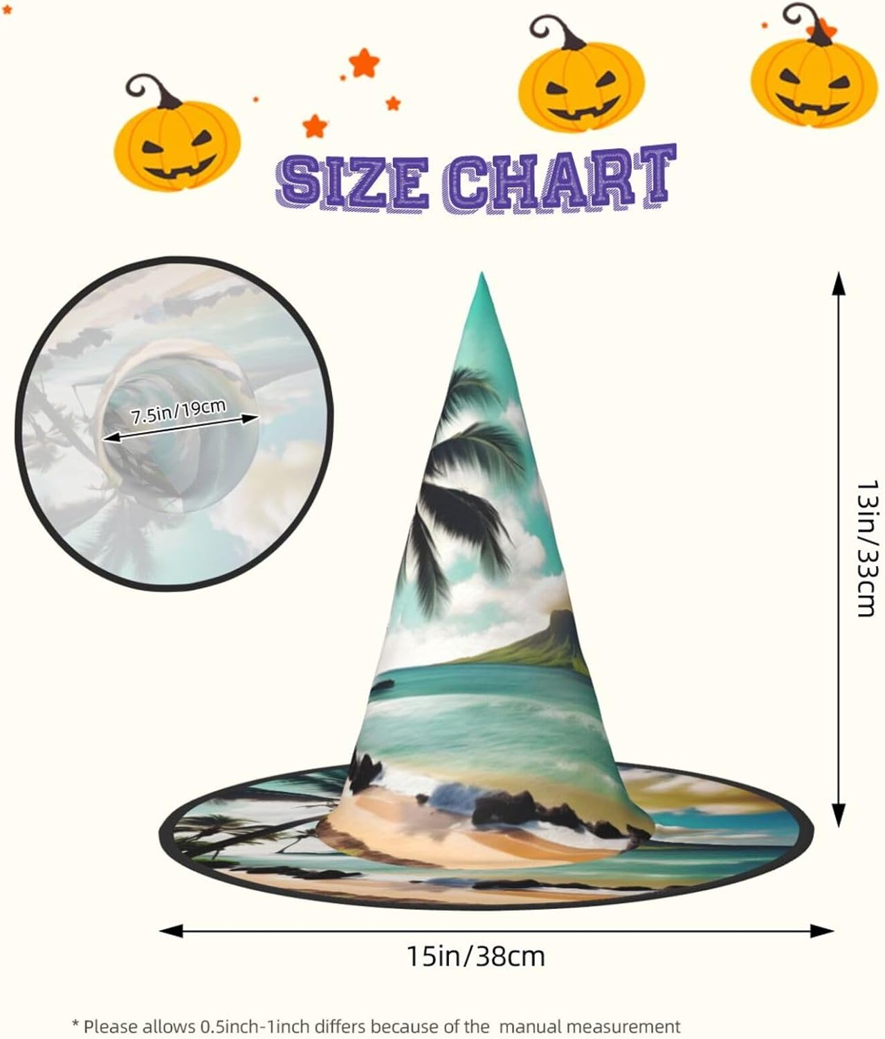 Realizzati in tessuto Oxford superiore, i nostri cappelli con stampa tropicale con palme da spiaggia garantiscono durata e longevità. Il design unico consente di ridurre al minimo la parte superiore del cappello e i bordi di essere attorcigliati e piegati, rendendo i cappelli salvaspazio e facilmente portatili. Ogni cappello con stampa di palme tropicali da spiaggia è di dimensioni generose per adattarsi alla maggior parte delle persone ed è leggero per un uso confortevole. Si prega di leggere la tabella delle taglie prima di effettuare l'ordine. Il design versatile dei nostri cappelli da strega di Halloween con stampa tropicale di palme da spiaggia li rende perfetti per varie occasioni. Sono lavabili in lavatrice e ad asciugatura rapida per una facile manutenzione.