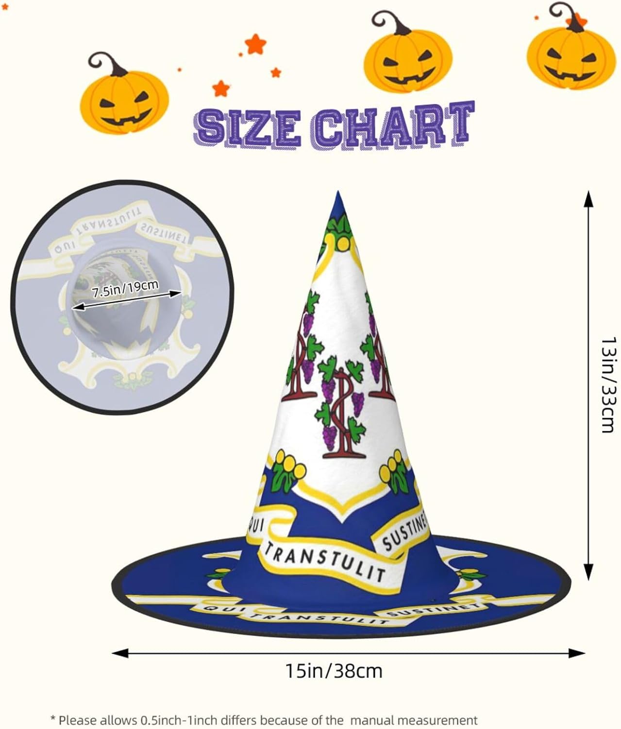 Realizzati in tessuto Oxford superiore, i nostri cappelli con stampa bandiera dello stato del Connecticut garantiscono durata e longevità. Il design unico consente di ridurre al minimo la parte superiore del cappello e i bordi di essere attorcigliati e piegati, rendendo i cappelli salvaspazio e facilmente portatili. Ogni cappello con stampa bandiera dello stato del Connecticut è di dimensioni generose per adattarsi alla maggior parte delle persone ed è leggero per un uso confortevole. Si prega di leggere la tabella delle taglie prima di effettuare l'ordine. Il design versatile dei nostri cappelli da strega di Halloween con stampa bandiera dello stato del Connecticut li rende perfetti per varie occasioni. Sono lavabili in lavatrice e ad asciugatura rapida per una facile manutenzione.