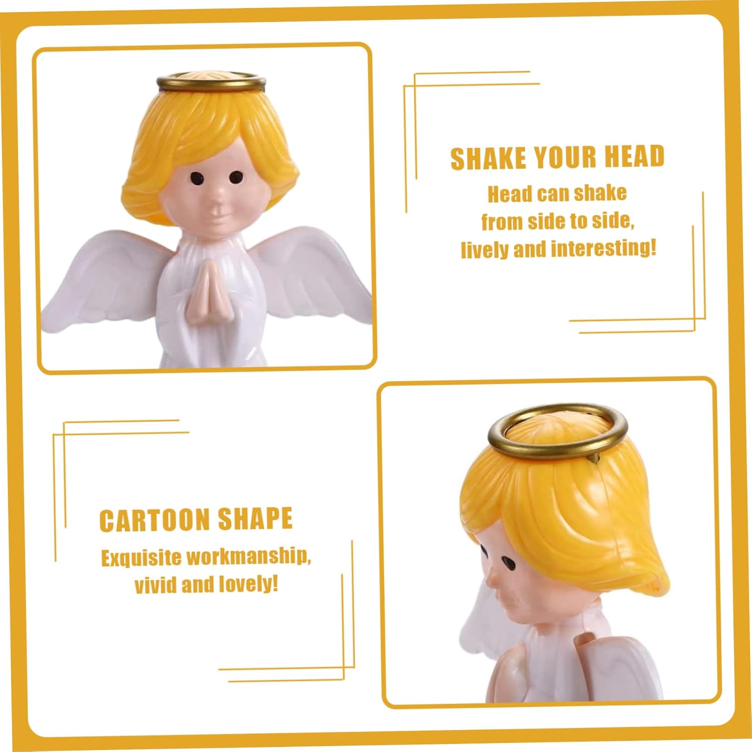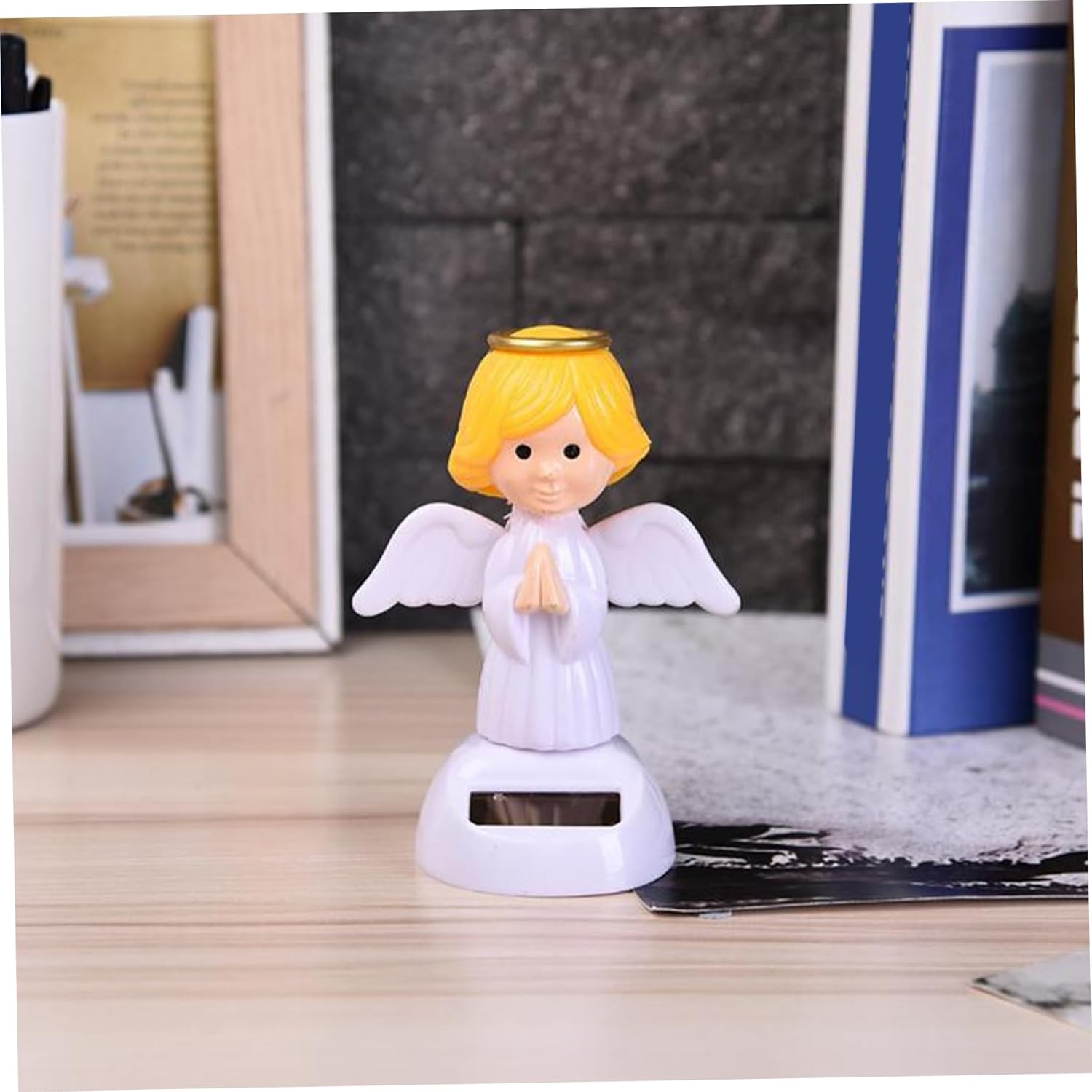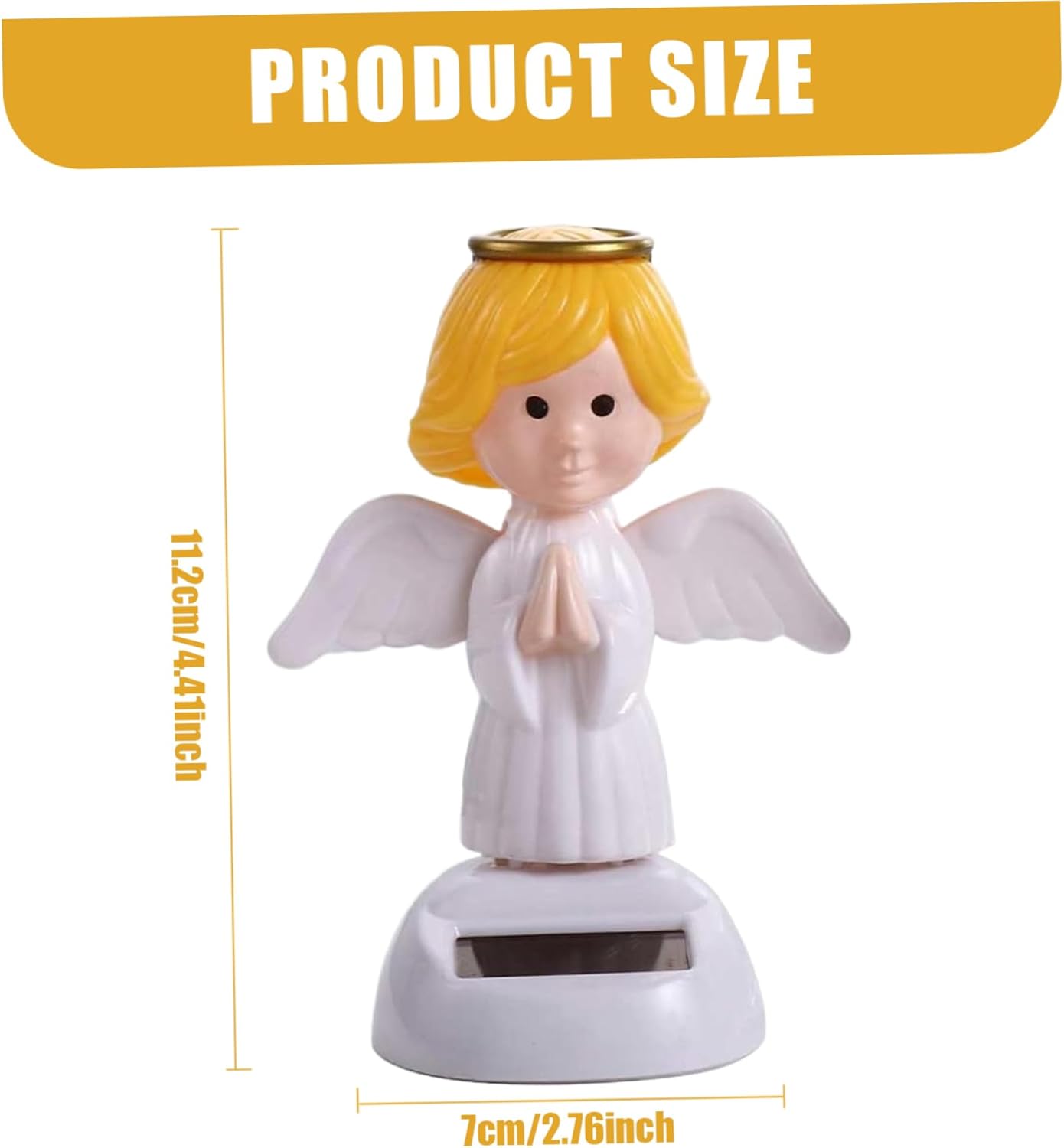 Nessuna batteria richiesta: dimentica il fastidio delle batterie; Questa statuetta funziona automaticamente alla luce del sole, assicurandoti di goderti i suoi incantevoli movimenti senza fonti di energia aggiuntive. Movimento interattivo: con il suo design unico, questa statuetta presenta ali oscillanti che si muovono su e giù e una testa che si muove avanti e indietro, creando un'esperienza adorabile e giocosa. Graziosa decorazione per la casa: aggiungi un tocco di fascino al tuo veicolo o al tuo posto di lavoro con questa adorabile statuetta di angelo, perfetta per illuminare la tua giornata e aggiungere fantasia all'ambiente circostante. COSTRUZIONE DI ALTA QUALITÀ: Realizzata in materiale ABS resistente al calore e allo sbiadimento, questa bobblehead da cruscotto è progettata per resistere a varie condizioni pur mantenendo il suo aspetto vivace e la sua funzionalità. Divertimento ad energia solare: questa bobblehead da cruscotto con angelo oscillante da 2,7 x 2,7 x 4,4 pollici è alimentata da energia solare, rendendola una scelta ecologica che aggiungerà un tocco vibrante a qualsiasi auto, ufficio o spazio abitativo.