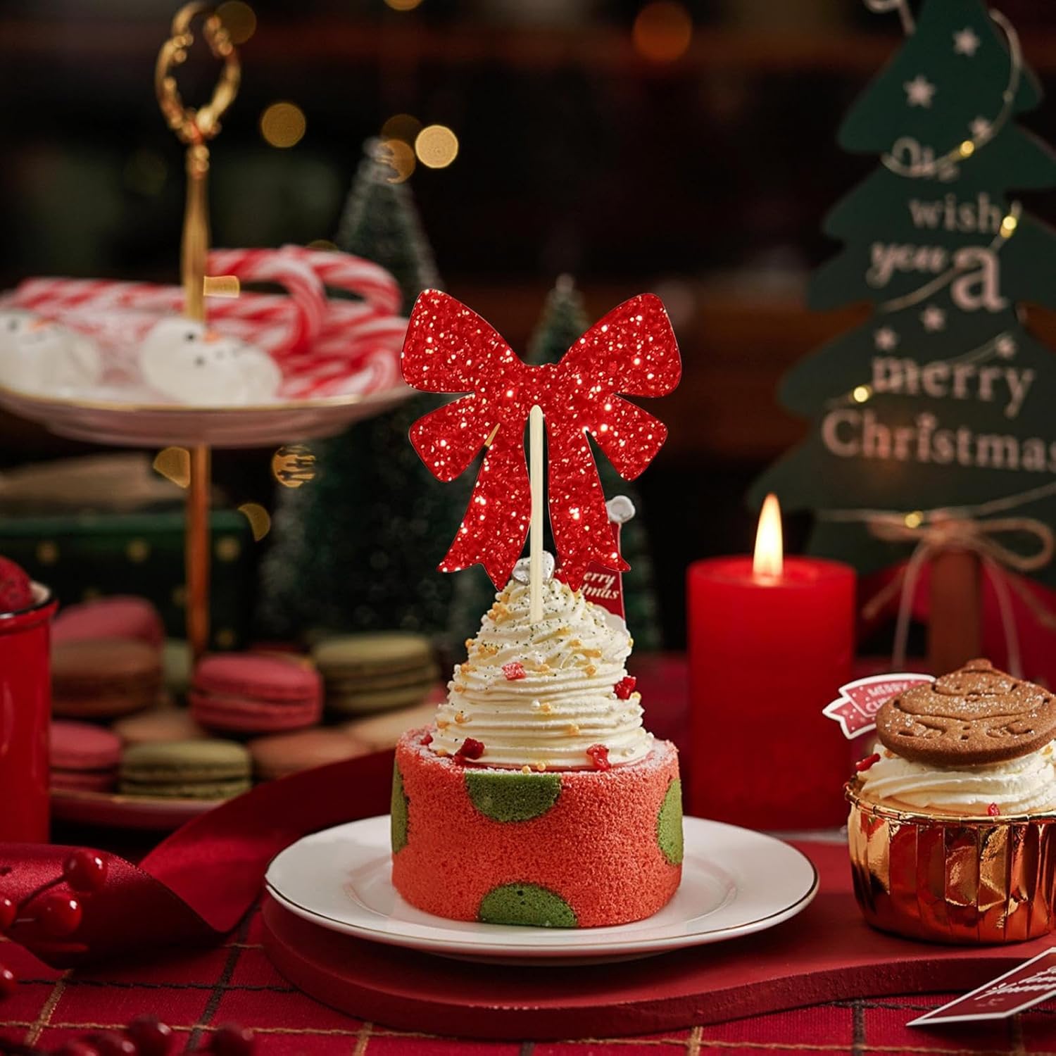 Materiale di Lavorazione Affidabile: I topper per torte e cupcake sono realizzati con carta sicura per alimenti, garantendo un uso igienico e una leggerezza che facilita l'applicazione. Sono perfetti per feste di compleanno e display di dessert, senza aggiungere volume o pericoli alle tue creazioni commestibili. Questi topper affidabili e pratici offrono una soluzione semplice per abbellire i dolci in modo sicuro, con materiali che non appesantiscono e preservano l'igiene in ogni situazione. Protezione Torte Delicate: Grazie alla struttura ultra-leggera, il topper per cupcake offre una vestibilità sicura sui dessert senza schiacciarli, proteggendo le torte fragili e perfezionando i cupcake durante celebrazioni come addii al nubilato, feste a tema o raduni familiari. Il posizionamento ottimale assicura decorazioni precise e attraenti, mantenendo i dolci intatti e belli per un'esperienza festosa senza preoccupazioni. Fascino Decorazione : Con 24 decorazioni a a tema natalizio, questo set di topper per cupcake aggiunge fascino ai dessert, rendendolo per decorare cupcake e creare display memorabili durante eventi festivi e celebrazioni. Questi abbelliscono i dolci e contribuiscono a un'atmosfera e festosa per party e riunioni. I topper per cupcake con tema natalizio sono essenziali per valorizzare i dessert e rendere ogni evento speciale più coinvolgente e allegro. Dimensione Ideale per Viaggi: Le decorazioni per cupcake forniscono una soluzione pratica essendo conservate in buste trasparenti, resistendo all'accumulo di umidità e polvere, ciò assicura un facile recupero e riutilizzo quando si preparano cupcake per feste o occasioni speciali. La dimensione adatta ai viaggi le rende comode da portare in viaggio, mantenendo l'ordine e la prontezza per esigenze creative di baking. Perfezione delle Misure: Con fiocchi proporzionati ai cupcake standard, questi cupcake picks mantengono una presentazione elegante e bilanciata, perfetti per abbellire i tavoli dei dessert in celebrazioni o ambienti informali. La misura accurata dei fiocchi assicura che estetica e dimensioni corrette siano ugualmente valorizzate, creando un aspetto coordinato e piacevole per eventi speciali o occasioni casuali la visualizzazione conta.