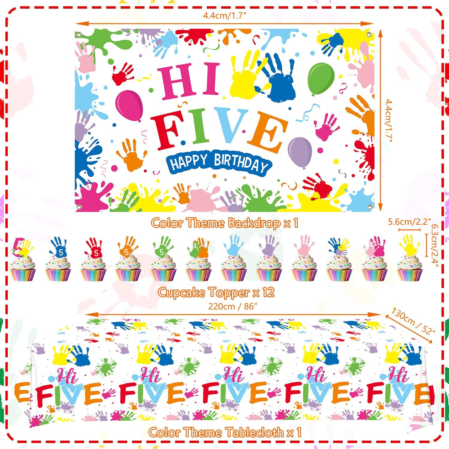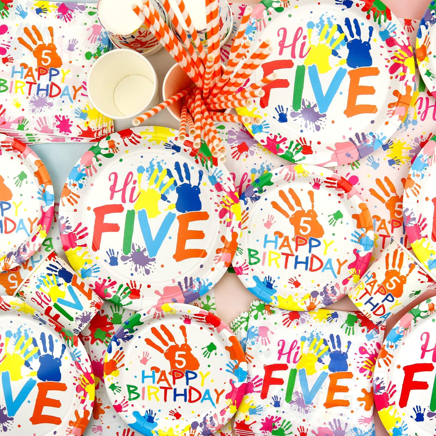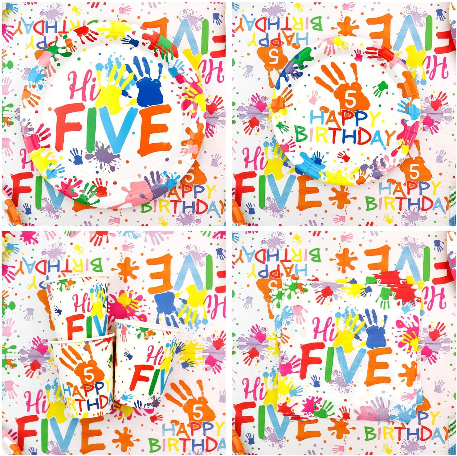 Quantità della confezione: include sfondo "Hi Five" 180,3 x 119,4 cm, 20 piatti piani da 22,9 cm, 20 piatti da dessert da 17,8 cm, 20 tazze, 20 tovaglioli, 20 cannucce, 1 tovaglia, 20 palloncini in lattice, 12 decorazioni per torte piccole, 1 grande decorazione per torta. Tutto in quantità perfetto per servire 20 ospiti. Materiali: striscioni, piatti, tazze e tovaglioli sono realizzati in cartone bianco ecologico, materiali 100% per uso alimentare, i palloncini sono realizzati in lattice. Fondale durevole: è realizzato in tessuto di poliestere, leggero, i suoi 4 angoli sono stati perforati per poterla appendere facilmente. È possibile trovare il luogo ideale per appenderlo facilmente, come parete di casa, soffitto, porta, finestra, arco o cortile. Design colorato: le nostre belle decorazioni per il 5° compleanno per ragazzi e ragazze sono progettate in diversi stili con colori vivaci e forme di palma per adattarsi al tema di compleanno di 5 anni. Le stoviglie presentano un design vivace e giocoso con impronte di mani e la frase Hi Five, perfette per una festa di compleanno divertente e memorabile 。 Ampia applicazione: ideale per una festa di 5° compleanno a tema "Hi Five", riunioni casuali di familiari e amici, feste artistiche, eventi di vacanza, riunioni di famiglia, buffet o picnic all'aperto, stupirà la tua famiglia e gli amici.