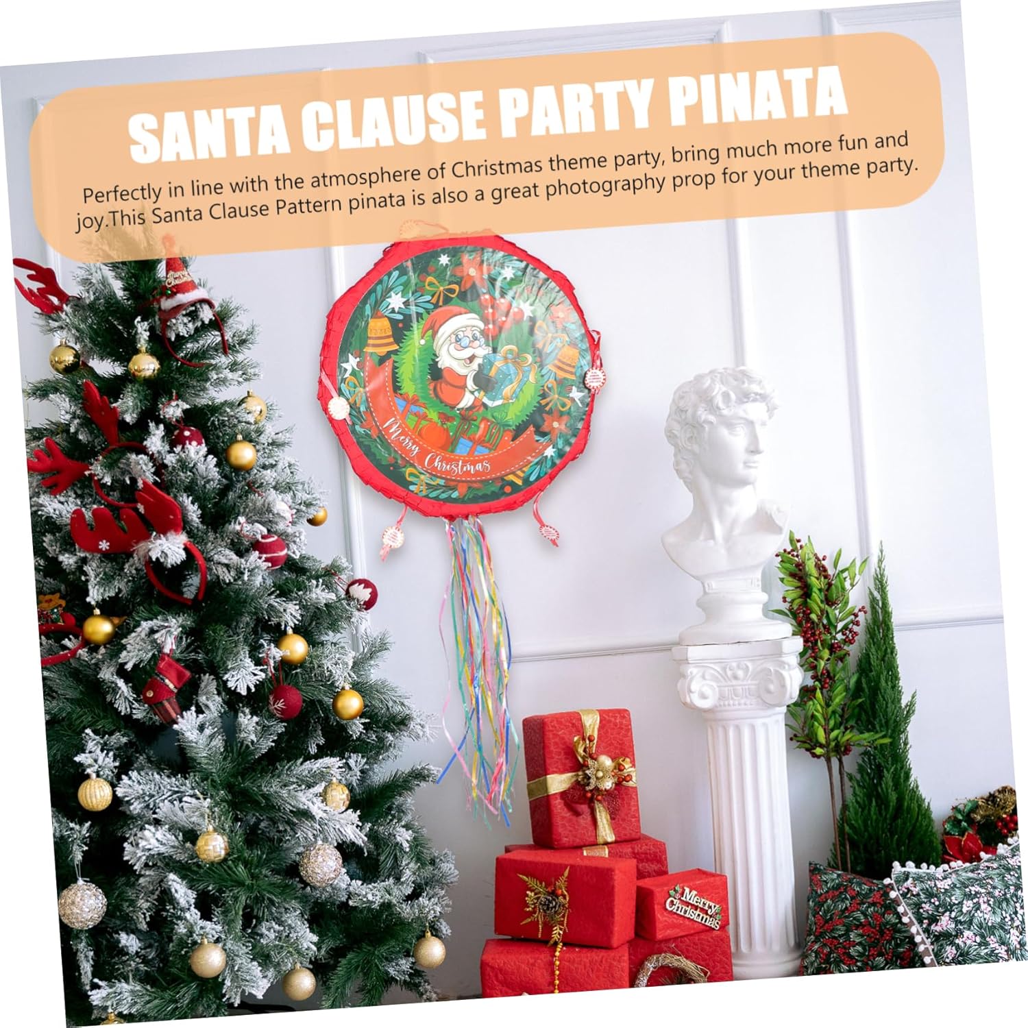 Decorazione sospesa: questa tradizionale piñata di Babbo Natale è realizzata in materiale cartaceo, leggero e decorativo, una novità piñata di Babbo Natale. Piñata imbottita: si adatta all'atmosfera di una festa a tema natalizio, porta molto più divertimento e gioia, piñata piñata di Babbo Natale: questo è un intrattenimento per feste e celebrazioni che aggiungerà gioia e divertimento alla tua festa!, piñata fotografica piñata natalizia: design unico e sofisticato che rende questo Babbo Natale così carino con i suoi colori vivaci e l'aspetto vibrante. Piñata a tema natalizio: gioca al gioco della piñata con la famiglia, gli amici e i colleghi di lavoro, si divertiranno moltissimo preparando caramelle di Babbo Natale