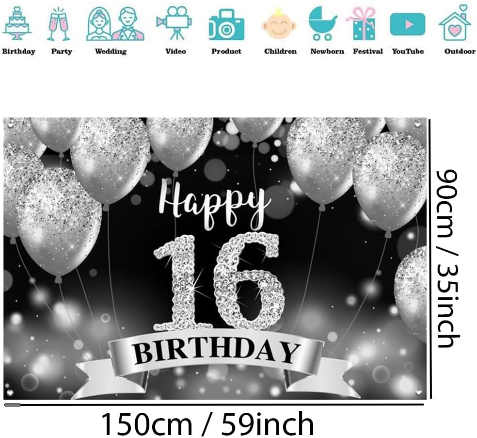 ❤️ Design elegante: striscione per il 16° compleanno con elementi di palloncini, perfetto per una festa di compleanno impressionante. ❤️ Materiale durevole: realizzato in vinile, stampa digitale ad alta definizione durevole e resistente agli strappi con dettagli accattivanti e colori realistici. ❤️ Dimensioni appropriate: 150 cm x 90 cm, può essere utilizzato come sfondo per feste di compleanno, cartello di benvenuto, decorazione della tavola, decorazione di torte, carta da parati, tovaglia, tenda o cartello di ricevimento, adatto per uso interno ed esterno. ❤️ Facile da installare: sfondo per la festa del 16° compleanno felice con occhielli in rame sui 4 angoli, basta appenderlo attraverso l'anello di tenuta in rame (corda non inclusa). Puoi anche attaccarlo al muro o alla finestra con nastro adesivo. Ferro da stiro. ❤️ Ottimo regalo di compleanno: il bellissimo poster con cartello illuminerà la festa di compleanno e lascerà una profonda impressione sugli ospiti.