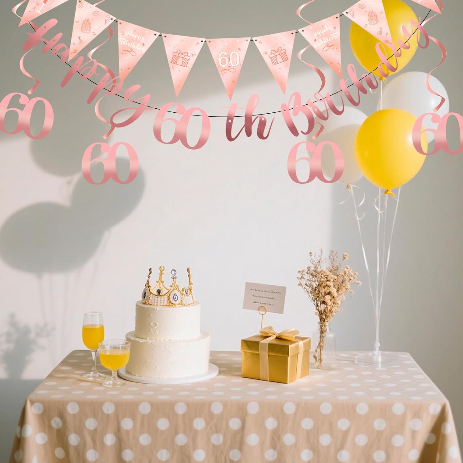 [Contenuto della confezione] Riceverai 1 ghirlanda glitterata "Happy Birthday", 1 ghirlanda decorativa per il 60° compleanno in oro rosa e 6 spirali pendenti per il 60° compleanno. Le nostre decorazioni per il 60° compleanno presentano una combinazione di ghirlanda e nastri per soddisfare le tue esigenze decorative. [Materiali di alta qualità] Il nostro grazioso set di decorazioni per il 60° compleanno è realizzato in cartoncino glitterato di alta qualità, cartone e robusti materiali in PVC. Le decorazioni per il 60° compleanno presentano una stampa di alta qualità, sono resistenti allo sbiadimento e agli strappi e sono robuste e durevoli. [Facile da usare] Forniamo ganci e nastri in plastica coordinati per le decorazioni di compleanno. Puoi appendere le bandierine e le decorazioni a spirale per esterni al letto, alle pareti, alle finestre, agli alberi e in giardino per creare un'atmosfera allegra. [Design raffinato] Le nostre decorazioni per la festa del 60° compleanno sono realizzate nei classici e bellissimi toni del rosa e del bianco, in linea con il tema della festa di compleanno. Questa decorazione per la festa del 60° compleanno è ideale come decorazione per la festa del 60° compleanno, come sfondo fotografico o come decorazione, aggiungendo calore e gioia al tuo compleanno. [Garanzia di servizio] Se hai domande dopo l'acquisto del nostro set di decorazioni per la festa di compleanno, o se le nostre decorazioni per la festa di compleanno non soddisfano le tue esigenze o aspettative, non esitare a contattarci e ti daremo una risposta soddisfacente.