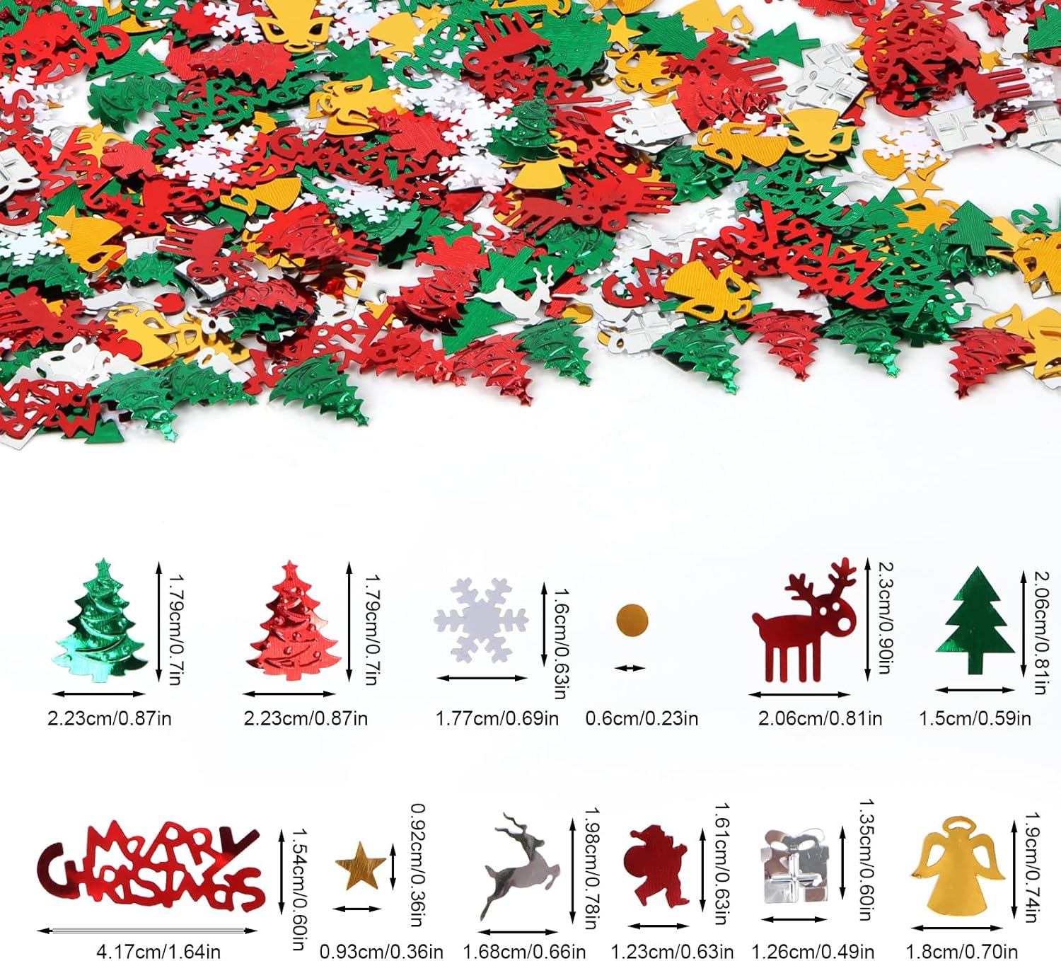 Decorazione per la tavola di Natale: i coriandoli natalizi RUNEAY contengono 500 coriandoli, tra cui Buon Natale, omino di pan di zenzero, albero di Natale, fiocchi di neve, alci, regali, Babbo Natale. Abbastanza coriandoli per le decorazioni della tavola di Natale. Coriandoli di alta qualità: realizzati in cartone stampato fronte-retro o materiale glitterato, i coriandoli natalizi RUNEAY non sbiadiscono, si deformano o si rompono facilmente. I coriandoli glitter argento colorati RUNEAY possono essere utilizzati tranquillamente come decorazione per la tavola di Natale e durano a lungo. Nota: versare un po' d'acqua in modo che i coriandoli non vengano portati via dal vento. Design unico di coriandoli: il set di decorazioni per la tavola di Natale RUNEAY è multicolore, include rosso, verde, argento, oro. Le forme includono Buon Natale, Albero di Natale, Renne, Babbo Natale, Stelle, Regali. RUNWAY Coriandoli natalizi semplici, freschi e accattivanti, che aggiungono atmosfera alla tua festa di Natale, alla cena di Natale. Facile da usare: i coriandoli natalizi RUNEAY sono molto facili e comodi da usare. Puoi lanciare i coriandoli sul tavolo alla festa di Natale, alla cena di Natale. Dopo la festa, è facile da pulire, risparmiando tempo ed energia. Coriandoli per un ampio utilizzo: i coriandoli per decorazioni natalizie RUNEAY possono essere utilizzati per decorare feste, tavoli da pranzo, scatole regalo, torte, cupcake, sacchetti regalo, ecc. Con i coriandoli multicolori per decorazioni natalizie, puoi creare biglietti d'invito, lettere, scatole regalo e altro ancora.