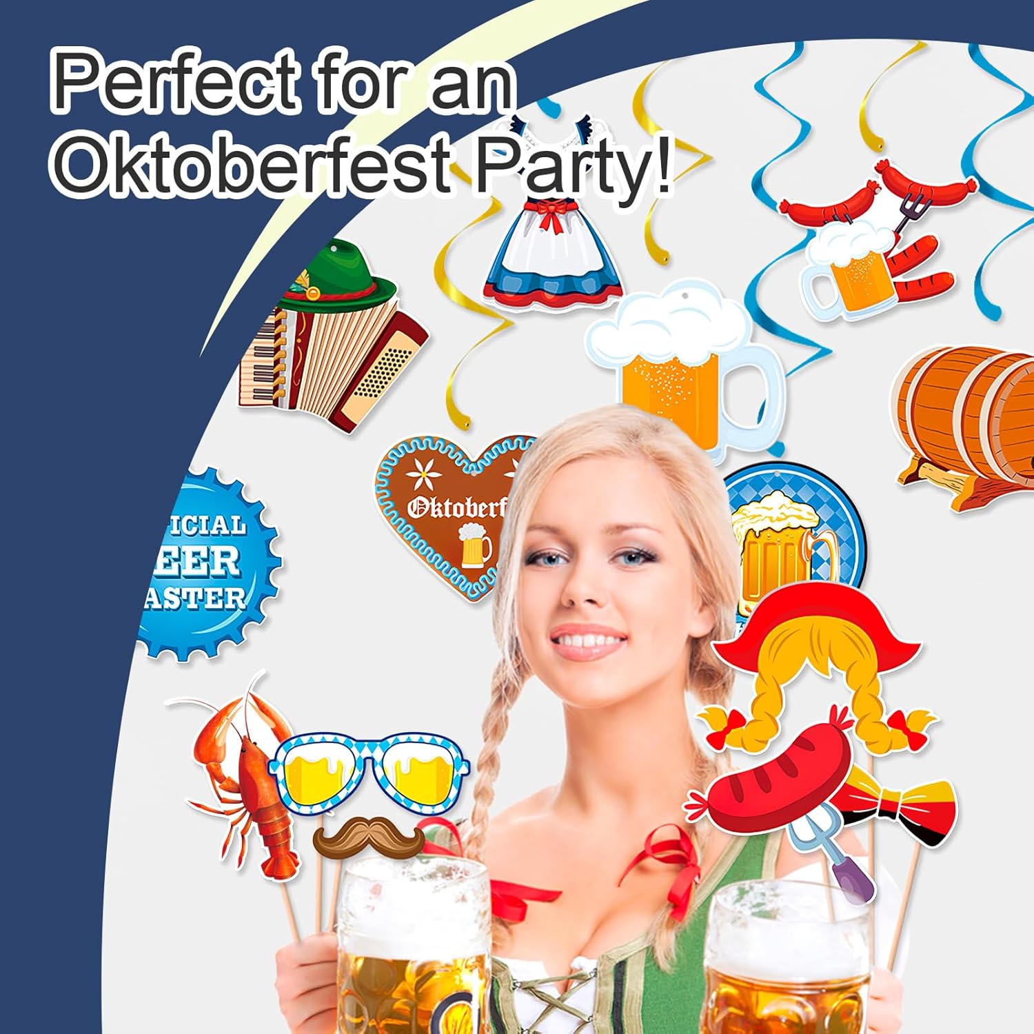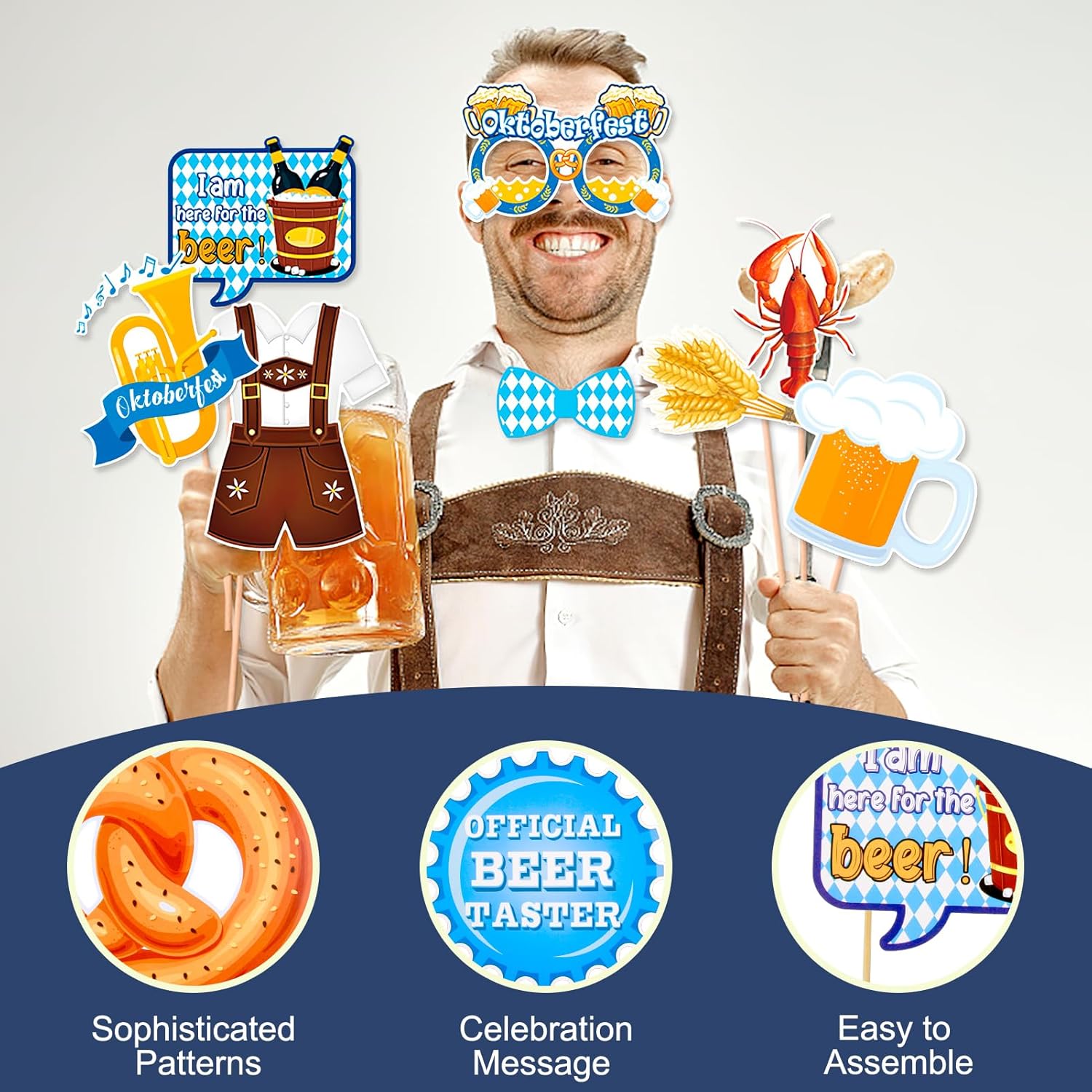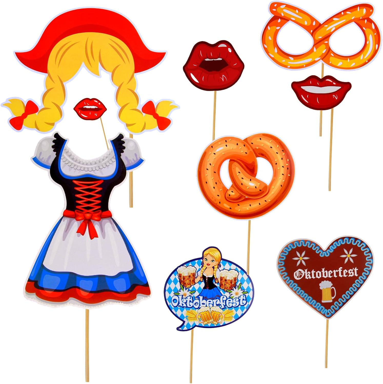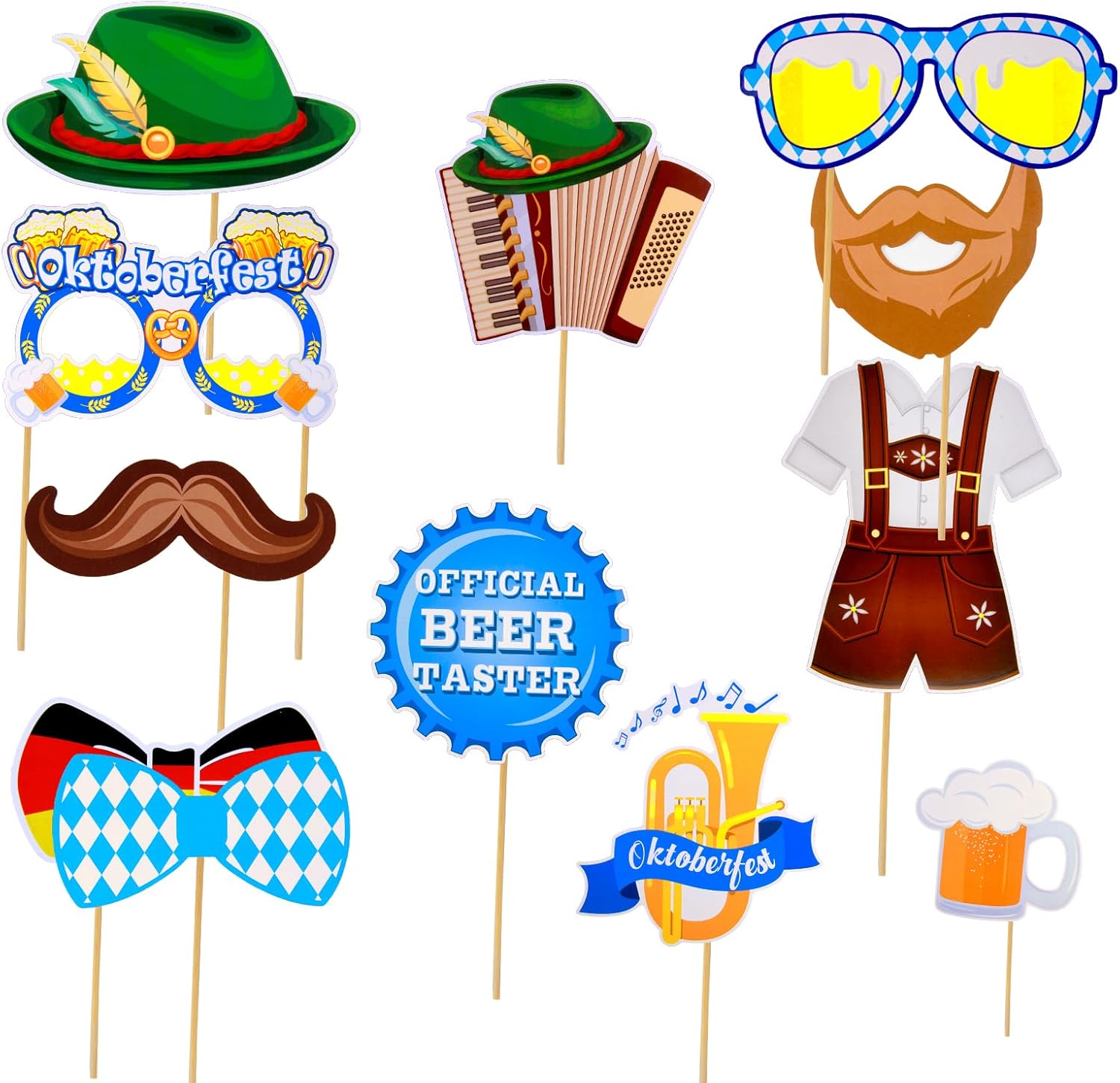 Decorazione per Oktoberfest: 28 pezzi Bayern Wiesn Photo Booth Props Kits, divertenti temi dell'Oktoberfest Design: cappello tradizionale, occhiali, baffi, labbra, cravatta, papillon, birra, brezel boccale di birra, cuore di pan di zenzero, salsiccia, fisarmonica e molto altro ancora Colori vivaci: gli Oktoberfest Photo Booth Props sono realizzati in carta resistente di alta qualità, sono stampati professionalmente su cartoncino spesso con colori vivaci, resistenti e durevoli e un uso ripetuto Facile da montare: gli accessori per la scatola fotografica Oktoberfest sono forniti con piccoli bastoncini di legno e punti adesivi, basta attaccare gli accessori fotografici stampati Oktoberfest ai tasselli in legno e iniziare Accessori fotografici bavaresi: si consiglia vivamente di assemblare questa cabina fotografica per feste di Oktoberfest in anticipo, scattare foto divertenti e condivisibili delle feste dei tuoi amici e familiari Versatile: ideale per feste di Oktoberfest, feste bavaresi e altre celebrazioni. Aggiunta unica alle tue foto di festa di Oktoberfest, ideale per intrattenere gli ospiti a una festa di laurea Oktoberfest