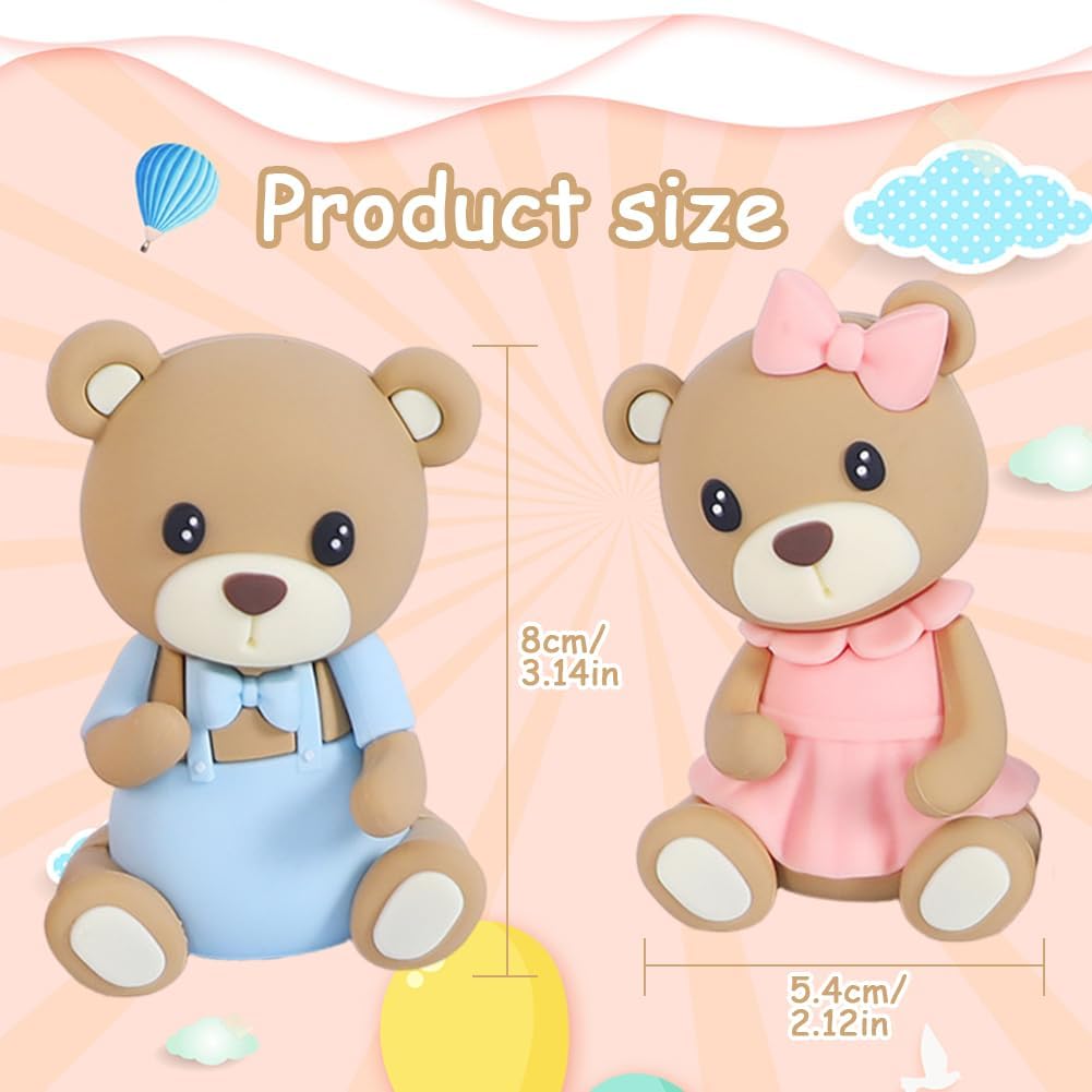 Materiale: Realizzato con materiale in gomma morbida, elegante e raffinato, inodore, non commestibile, anche molto bello e riutilizzabile. Scusa, scusa. Design: bambola orsacchiotto di cartone animato rosa e blu, aspetto adorabile, espressione vivida, colori vivaci, è divertente. Regali divertenti: i nostri toppers per torta con orsi portano decorazioni meravigliose e belle alla tua festa, puoi creare la tua torta e migliorare la comunicazione e l'affetto reciproci. Lista di imballaggio: il pacchetto include 2 decorazioni per orsi, decorazioni per torte di compleanno, decorazioni per la casa, decorazioni per auto per vivere insieme il compleanno più memorabile e godersi questo momento toccante. Occasioni applicabili: spiaggia, festa in piscina hawaiana, decorazione di torte, perfetta anche per feste a tema, feste, matrimoni e altre occasioni importanti.