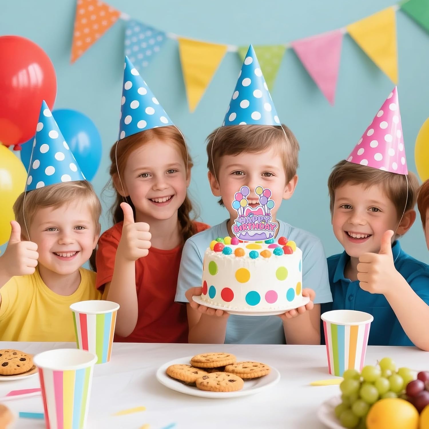 Contenuto del pacchetto: riceverai un topper a tema a tema per bambole carino con due bastoncini e quattro punti di colla. Perfetto per creare una bella festa di compleanno a tema cartone animato. Materiale premium: questi topper per torte sono realizzati in carta di buona qualità, sicuri e affidabili, non facili da sbiadire o lacrime, garantendo che le decorazioni delle tue feste rimangano perfette. Dimensioni perfette: la dimensione del topper Cake è di circa 15,6x13 cm, adatto per la maggior parte delle torte di compleanno, rendendo la tua torta di compleanno più allettante, perfetta per feste a tema bambole e amanti dei gatti. Design a tema bambole: il nostro topper Cake adotta un design a tema per gatti cartoni animati, con graziose zampe di gatto, palloncini, cappelli di compleanno, motivi per le orecchie da gatto, colori ricchi e vivaci, design squisito, per creare una festa di compleanno da sogno per te. Decorazione carina: questo topper per torta a tema cartone animato per bambole carino può essere usato per torte, tavoli da dessert o centrotavola per feste. Perfetto per feste di compleanno delle bambole, docce per bambini a tema gatto ed eventi a tema delle bambole.