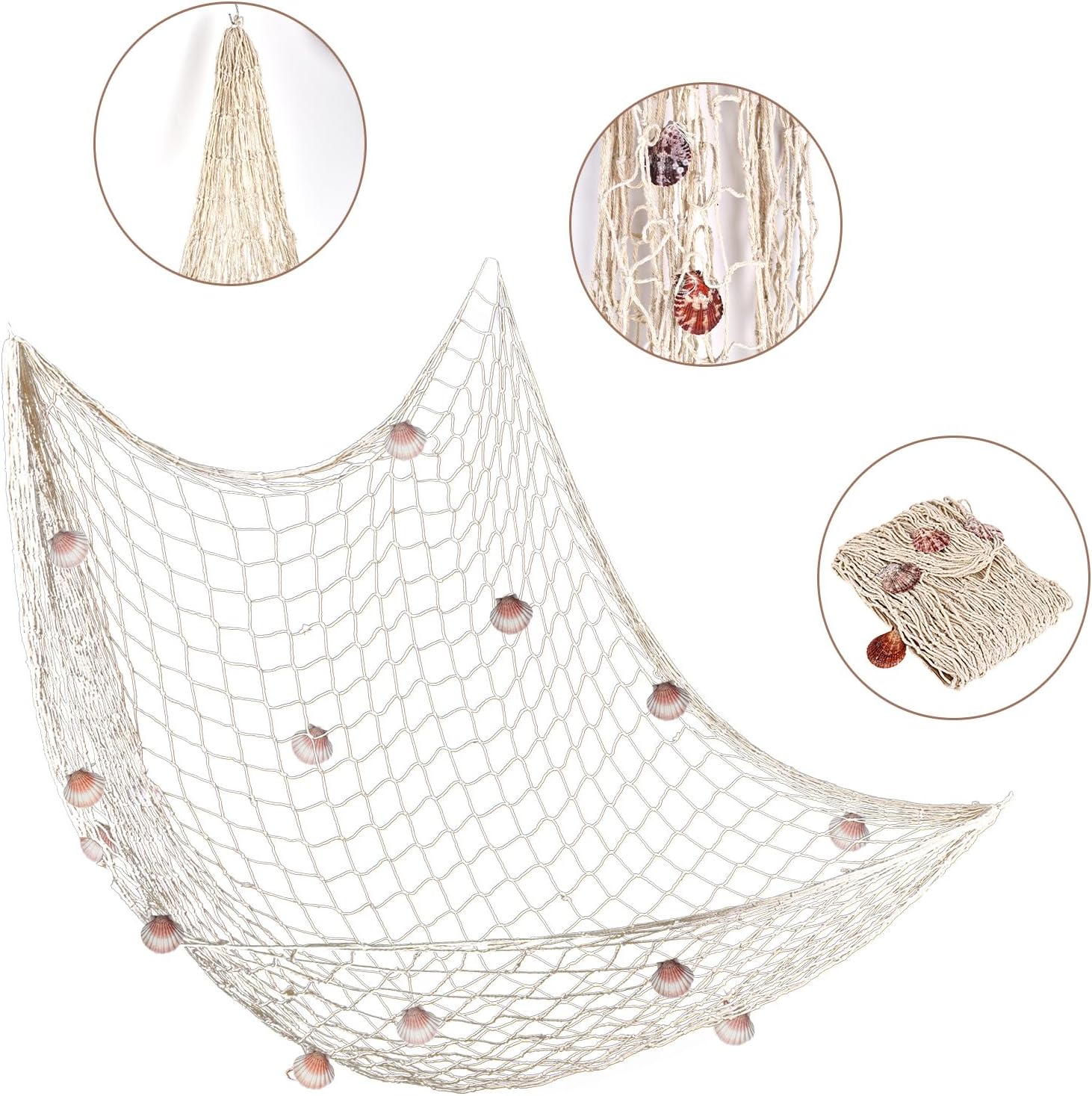 💦 【Materiali di alta qualità】 La rete da pesca è realizzata in cotone di alta qualità, tessuta a mano, robusta e leggera, facile da trasportare e può essere appesa in modo permanente al muro. È decorato con conchiglie naturali in diversi colori e crea una romantica decorazione marittima. 💦 【Dimensioni del prodotto】 La rete da pesca decorativa con conchiglie misura 150 x 200 cm, ogni maglia misura ca. 5 x 5 cm. Lavabile in lavatrice. Per evitare grovigli, posizionare la rete da pesca in un sacchetto per la biancheria e lavarla in lavatrice. 💦【Facile da montare】La rete da pesca decorativa è facile da appendere. Puoi usare ganci o chiodi per creare forme sul muro e appendervi la rete da pesca. Progetta la tua casa mediterranea in pochi minuti e ottieni una nuova decorazione domestica. 💦【Bellissima Decorazione】La nostra rete da pesca decorativa può essere appesa ovunque. Puoi attaccare piccole decorazioni come conchiglie, pesci, stelle marine, volanti, salvagenti e ancore per creare un tema nautico. È anche possibile appendere cartoline e foto come angolo per le foto. 💦【Versatile】Questa rete da pesca decorativa può essere appesa in soggiorno, camera da letto, corridoio, studio e balcone. È adatto anche per hotel, bar, asili nido, librerie, ristoranti, ecc. a tema marino. Crea un'atmosfera rilassata e romantica. Decora la tua casa come vuoi!