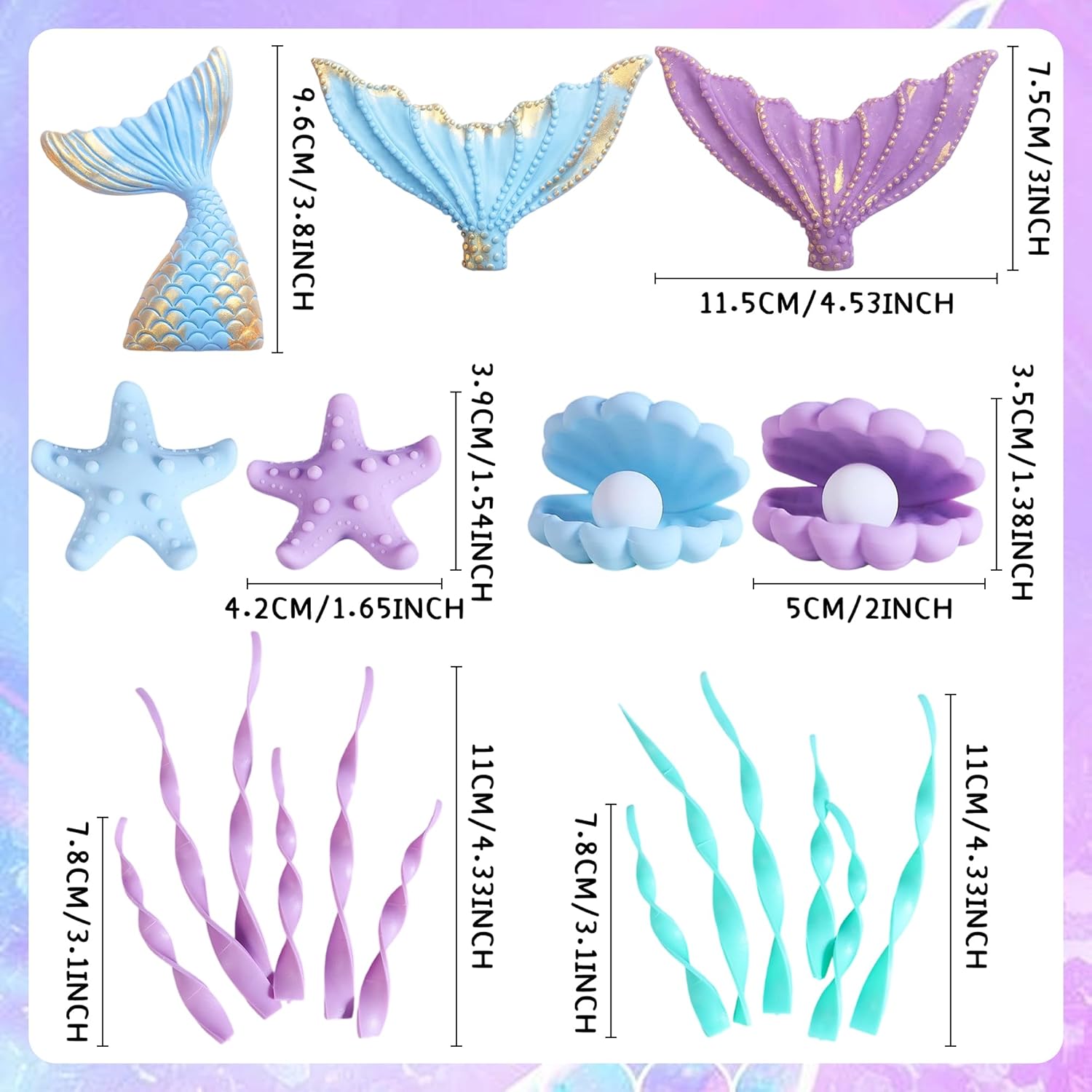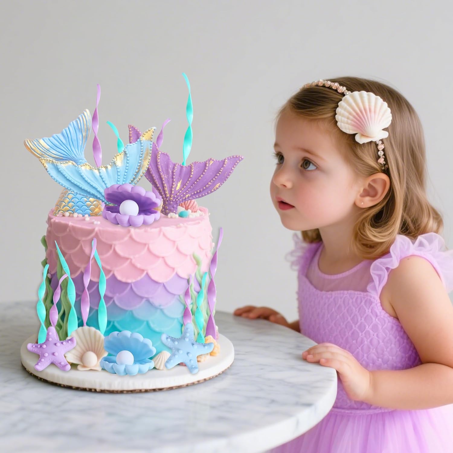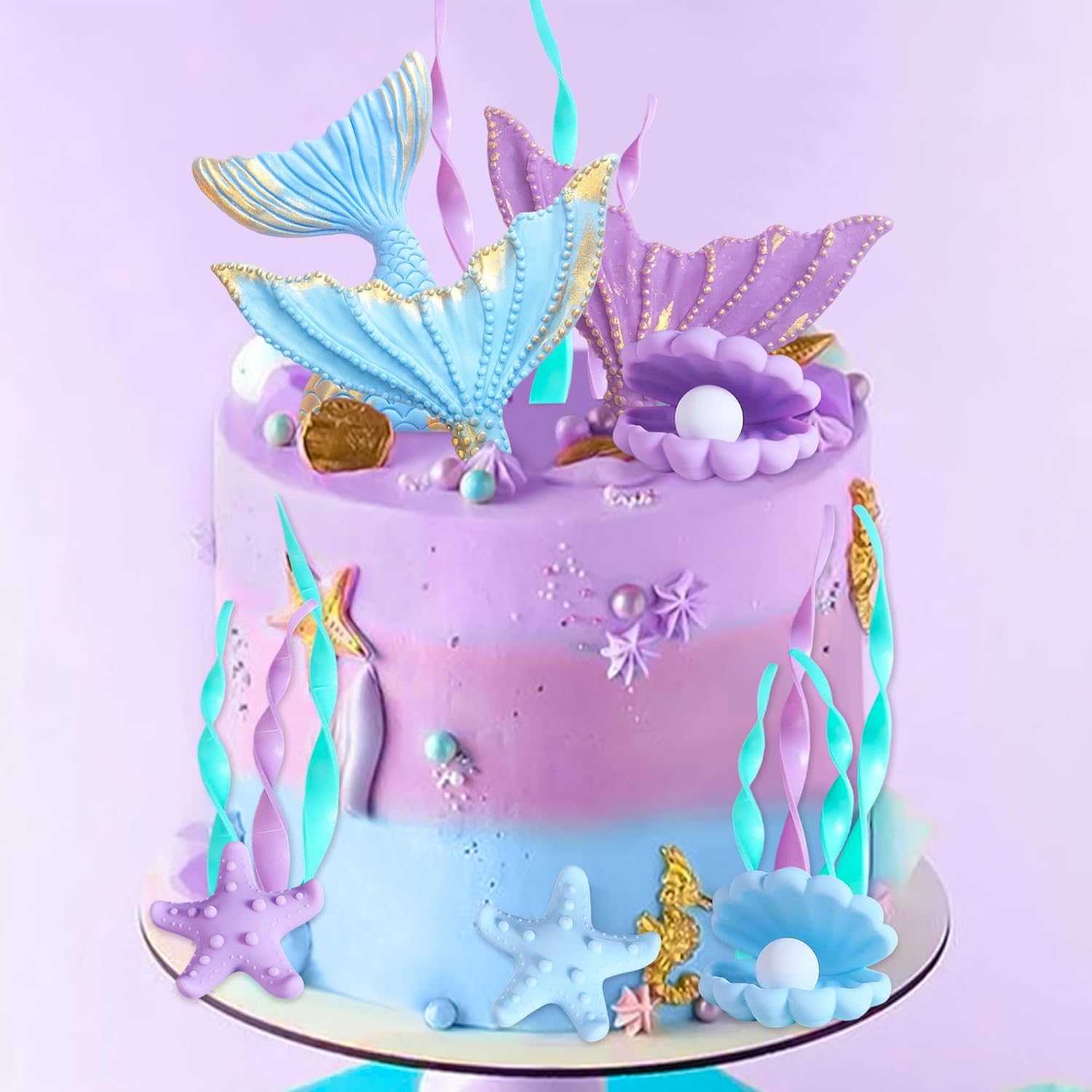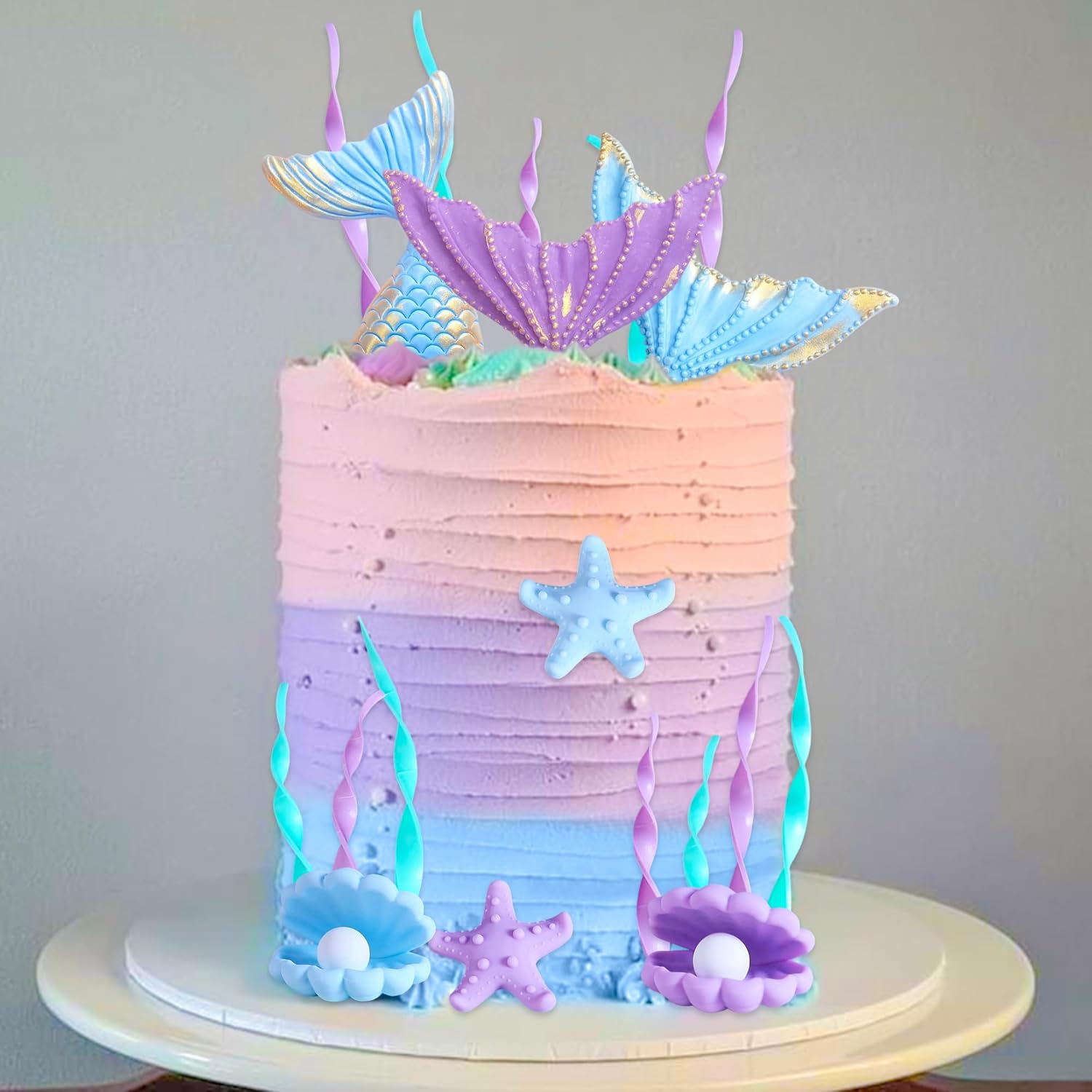 3 x Fischschwanz Tortenaufleger, 2 x Seesterne, 2 x Muscheln, 12 x Seegras La decorazione per torta con conchiglie presenta vari stili di decorazione adatti a diversi temi di festa. La decorazione per torta subacquea utilizza una tavolozza di colori vivaci per stimolare l'immaginazione dei bambini e introdurli al mondo marino. Le bomboniere a sirena sono adatte a qualsiasi decorazione di torte. Questi accessori per feste a sirena decorano compleanni, baby shower, feste con animali, eventi marittimi e celebrazioni festive. Le nostre decorazioni di compleanno a forma di sirena creano un'atmosfera unica e portano gioia al tuo evento
