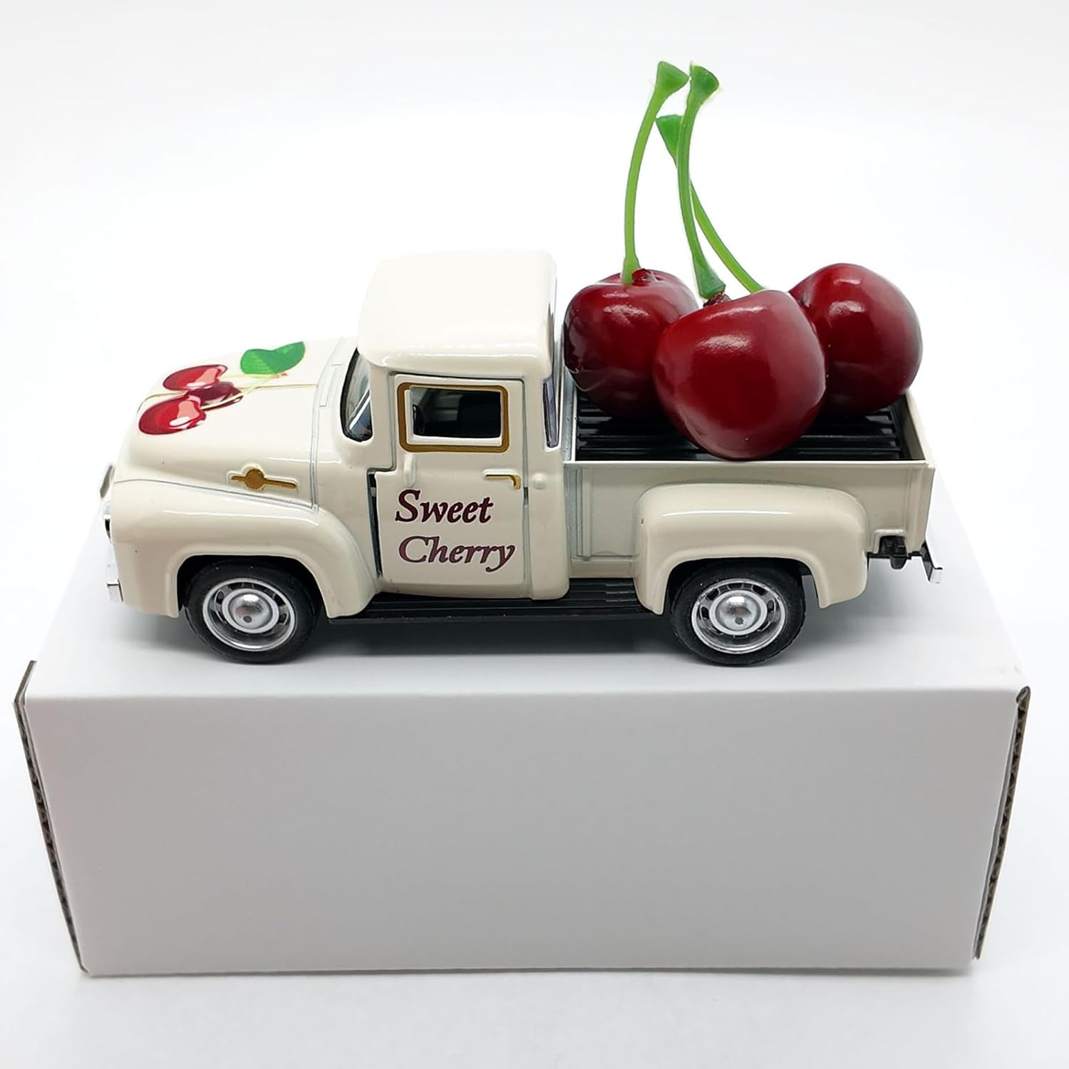 Costruzione : Progettato con lega di zinco e materiali resistenti, previene la ruggine, incorpora componenti antiurto e garantisce un esterno opaco morbido con dettagli fedeli alla realtà Tetto con Frutti Dettagliati: Ottieni un aspetto autentico con dettagli di gambi flessibili che sostengono frutti decorativi in tonalità gradiente rosso, offrendo ottima resistenza e un'estetica giocosa e naturale Fascino Vintage Senza : Presenta una lucentezza metallizzata opaca e linee curve sinuose, ispirate all'arte automobilistica anni '50. Rifiniture cromate aggiungono un tocco classico intramontabile per collezionisti. Lavorazione pregiata: Ruote a raggi rifiniscono dettagli con componenti stampati precisi, trame porte definite e fari luminosi che esaltano l'estetica del camion modello per collezionisti Utilizzo Versatile: Progettato per adattarsi facilmente in qualsiasi spazio, questo camion modello è per esposizione su scrivanie, aggiunge fascino come centrotavola in vetrine e funge da eccellente accessorio per fotografie creative grazie al design adattabile