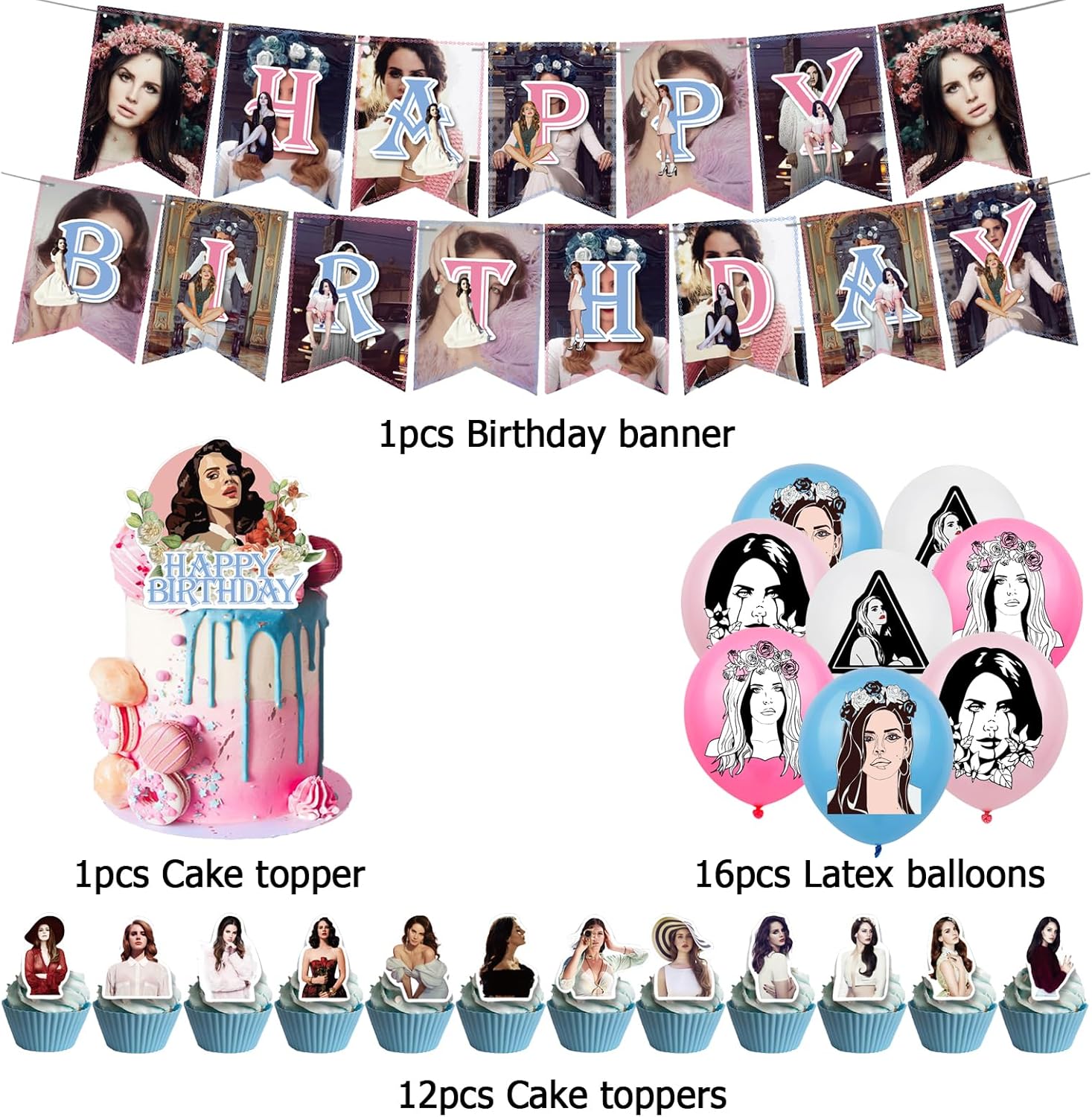 Palloncini per feste Lana Del Rey Questo pacchetto include: 13 toppers per torta Lana Del Rey, 16 palloncini Lana Del Rey, 1 striscione compleanno Lana Del Rey. Decorazione di compleanno di Lana del rey L'articolo è realizzato con materiali durevoli, robusti e leggeri, finemente realizzati, colorati, belli e raffinati e facili da usare. I palloncini di compleanno Lana del Rey ti bastano un po' di tempo per decorarli e diventeranno presto l'ornamento perfetto, perfetto per te. Festa Compleanno Lana Del Rey ideale per tutte le occasioni, come feste a tema, eventi familiari, feste di compleanno, per creare un'atmosfera confortevole per la tua festa. Decorazione compleanno Lana del rey se hai qualche motivo spiacevole, non esitare a contattarci e ti risponderemo il prima possibile.