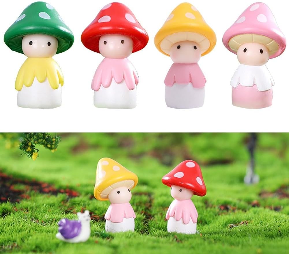 Affascinanti bambole a forma di fungo: crea un'atmosfera stravagante e affascinante nel tuo giardino o paesaggio fai da te con queste bambole a fungo in miniatura. Materiale in resina resistente alle intemperie: realizzati in resina, questi ornamenti sono costruiti per resistere agli elementi esterni, bellezza duratura nel tuo display. Dettagli intricati e colori vivaci: i dettagli intricati e i colori vivaci di queste bambole a fungo le rendono accattivanti e un delizioso punto focale in qualsiasi giardino in miniatura o paesaggio muschio. Migliora la tua creatività: utilizza queste bambole a fungo come materiale fai da te per migliorare la tua creatività e dare vita ai tuoi progetti. Perfetto per giardini fatati, terrari o qualsiasi altra scena in miniatura. Unica e adorabile: ogni bambola a forma di fungo presenta un design unico, aggiungendo un tocco di fantasia e fascino al tuo arredamento. Questi adorabili ornamenti faranno sicuramente una dichiarazione e cattureranno l'attenzione dei tuoi ospiti.